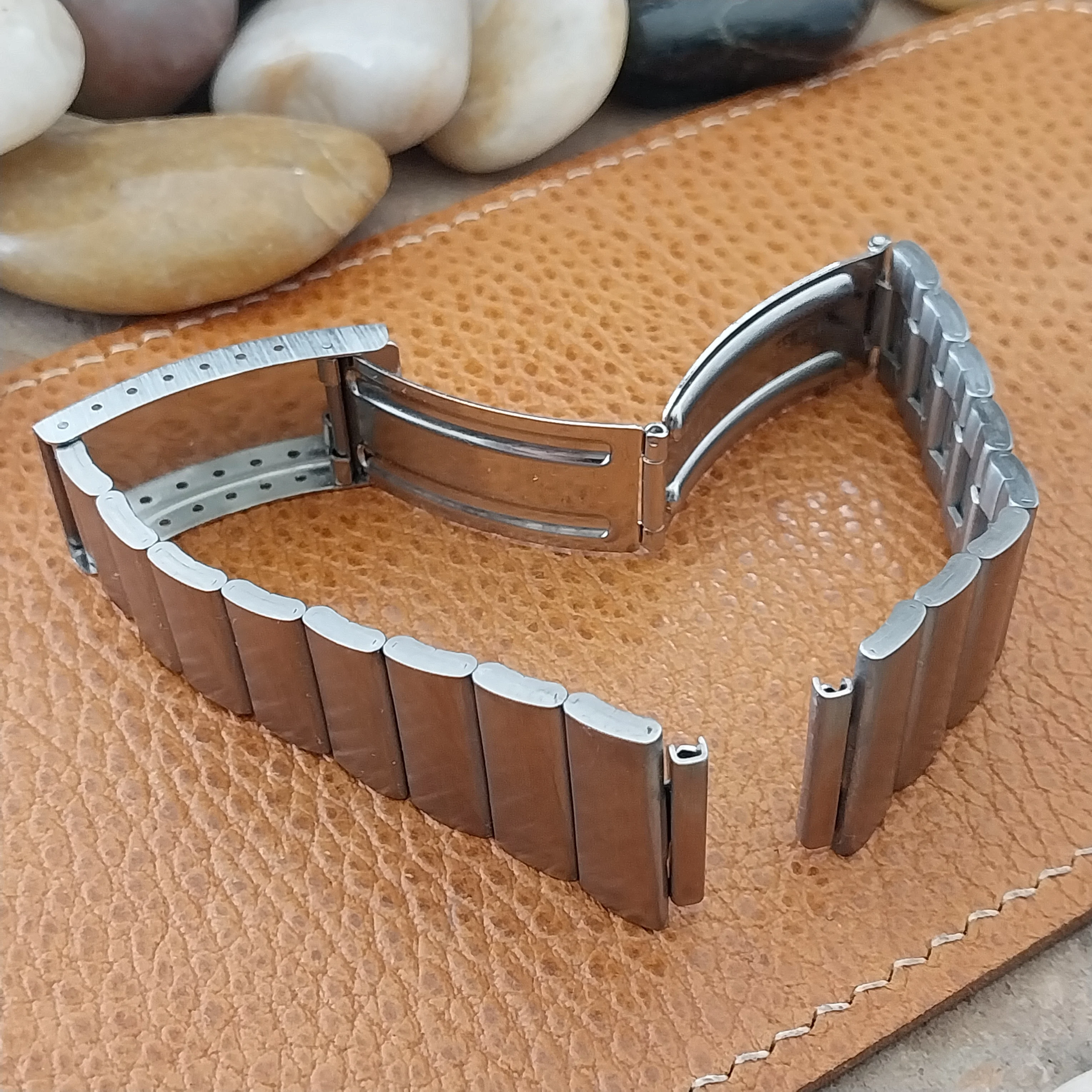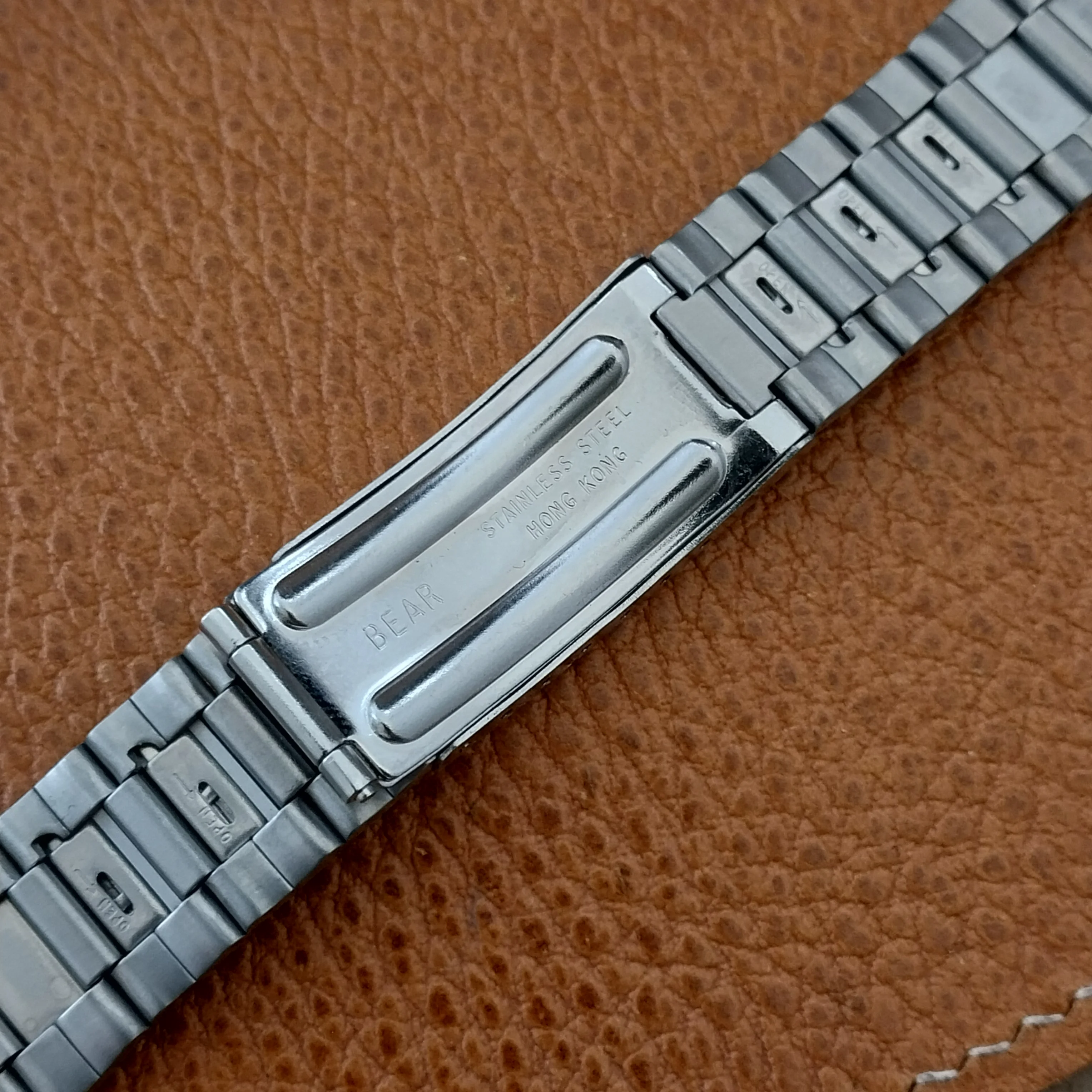 ·NOS unused 1970s old-stock Bear stainless steel watch bracelet.