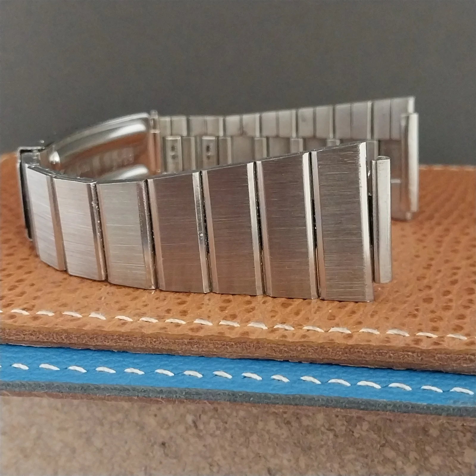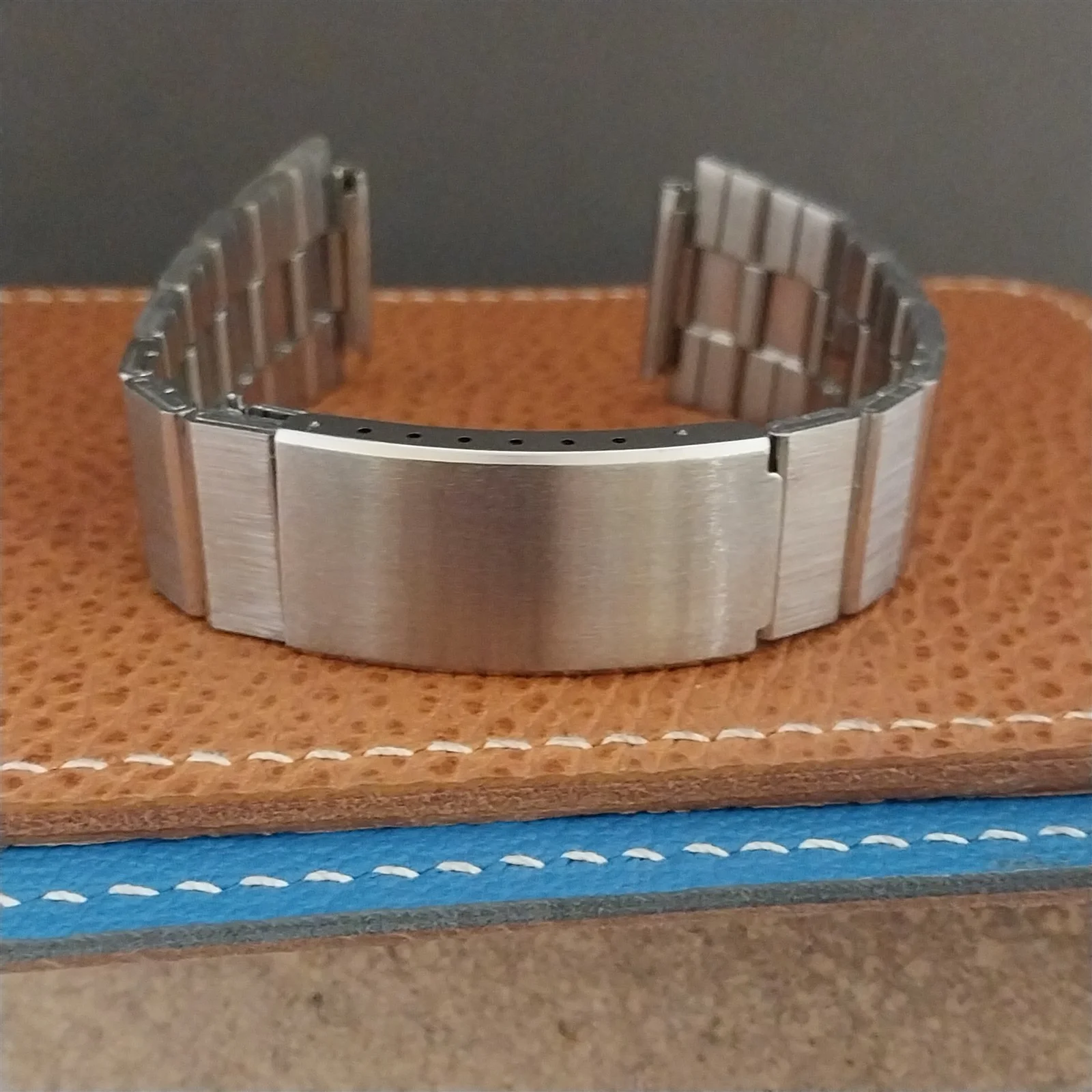 ·NOS unused 1970s old-stock Bear stainless steel bar-link deployment watch bracelet.