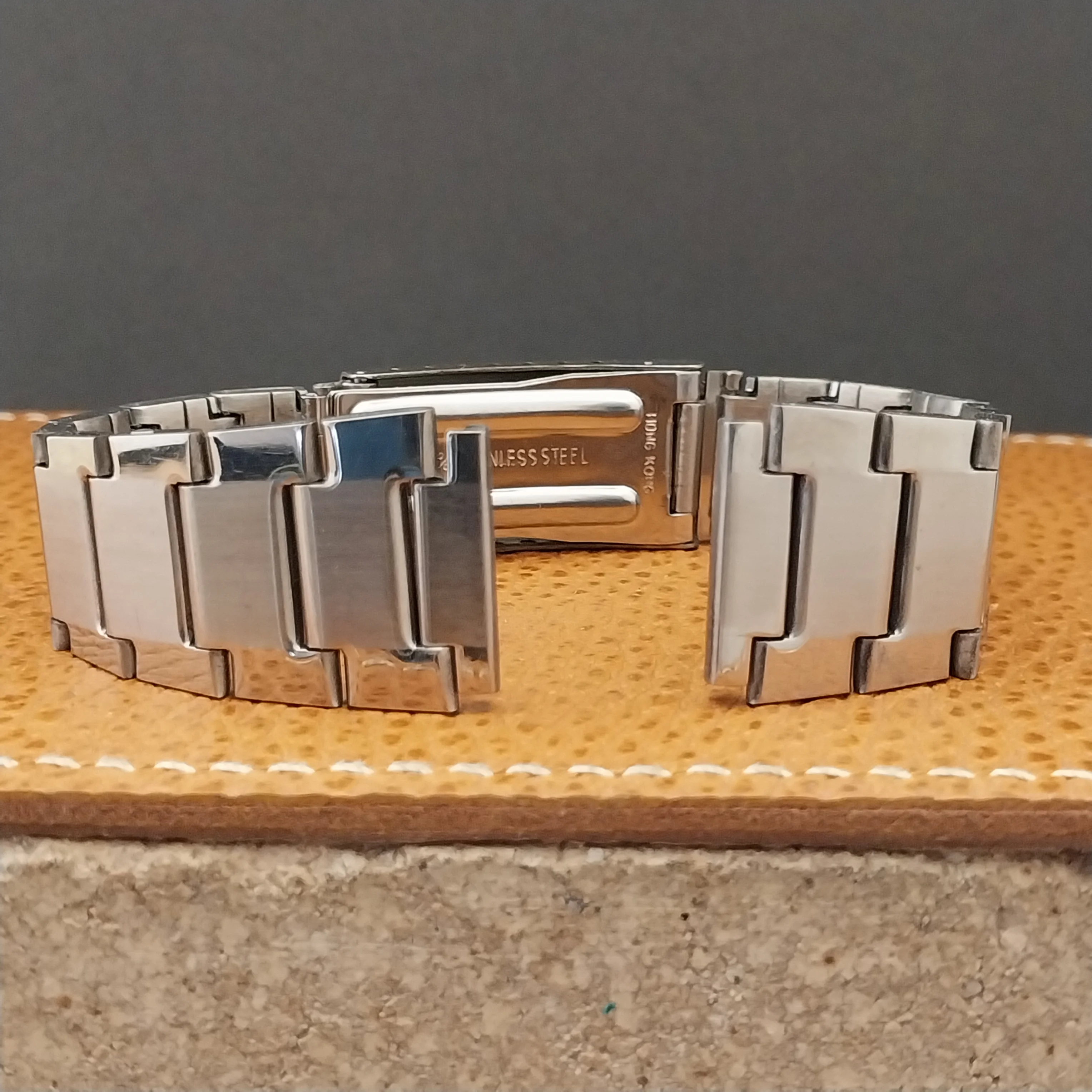 ·NOS unused 1970s old-stock stainless steel deployment watch bracelet.