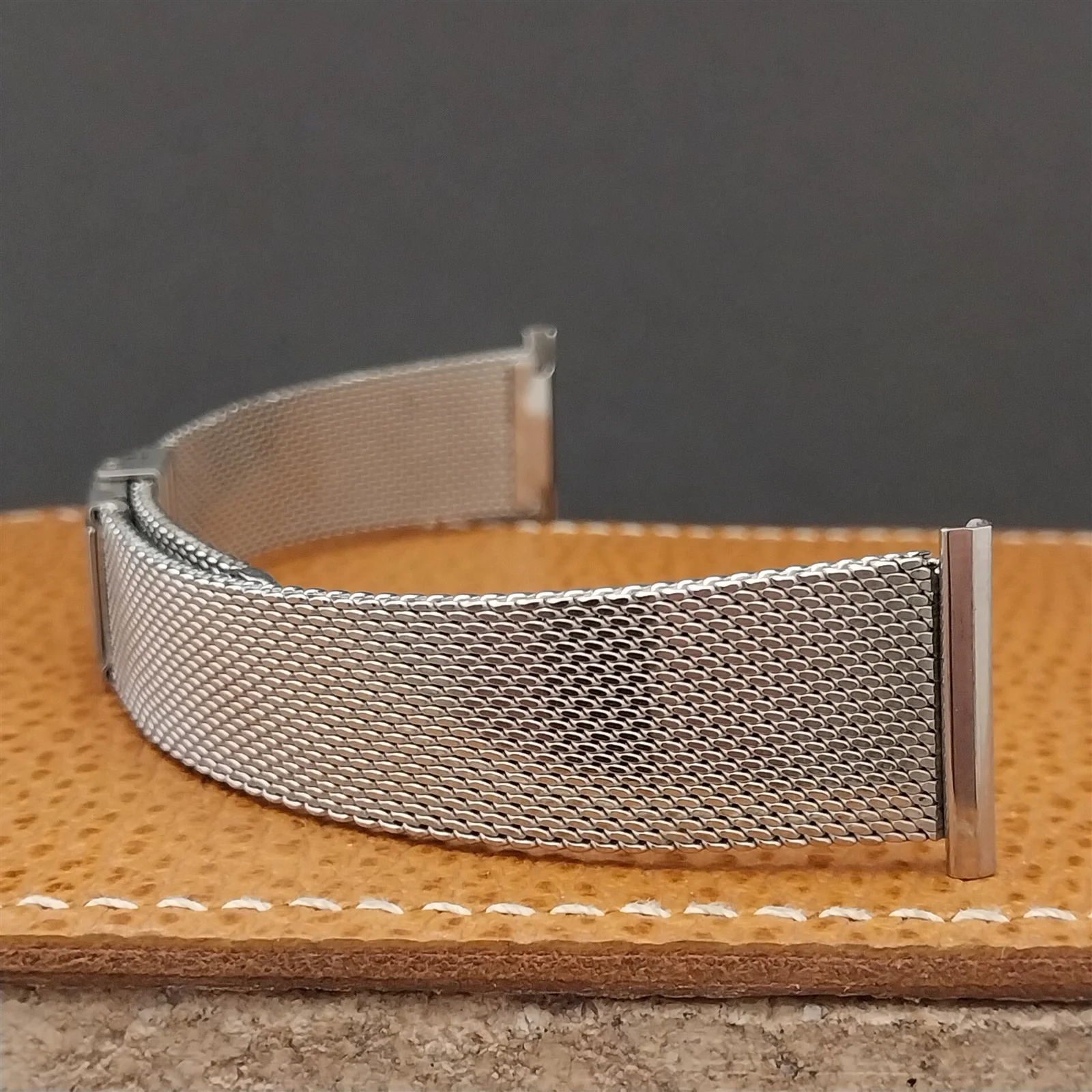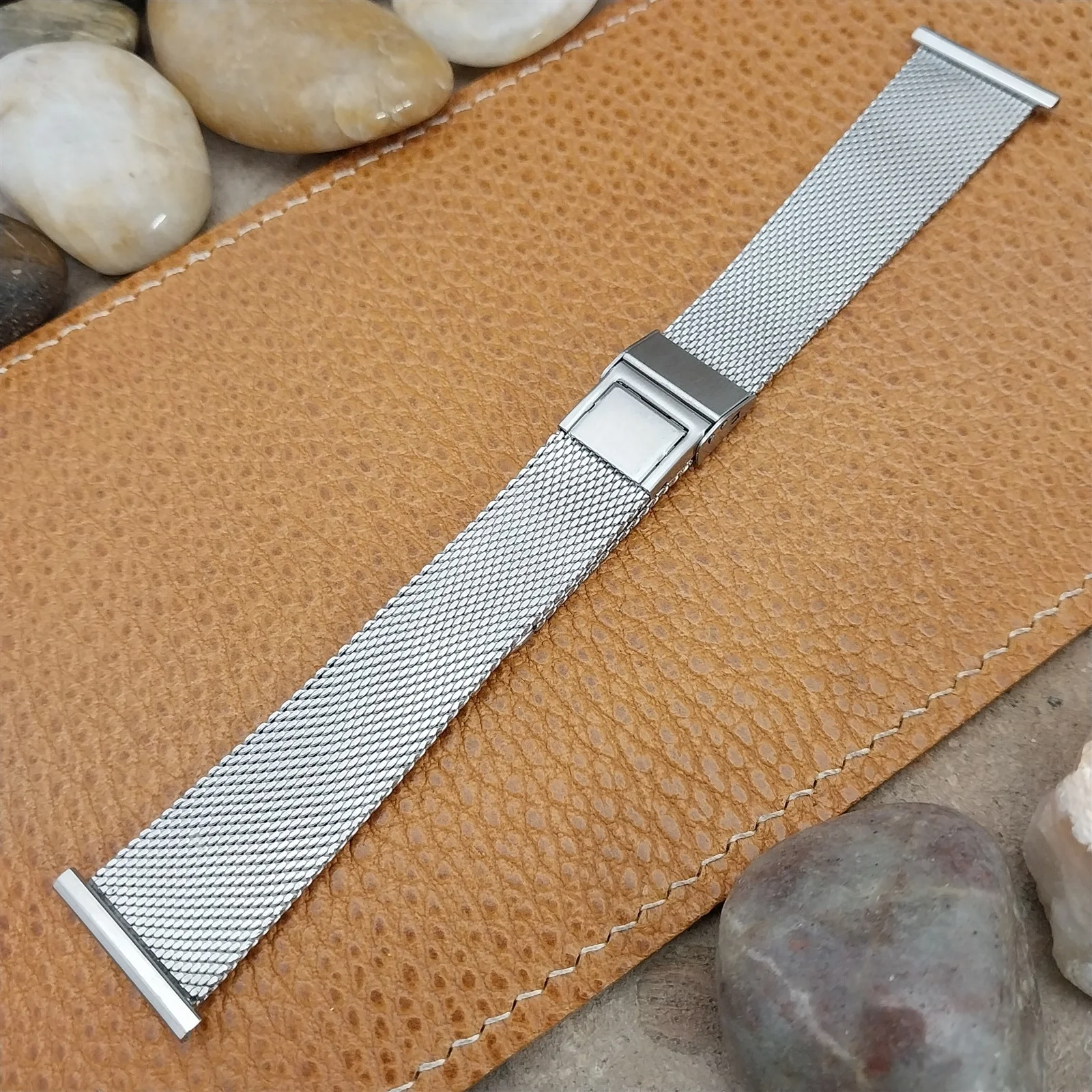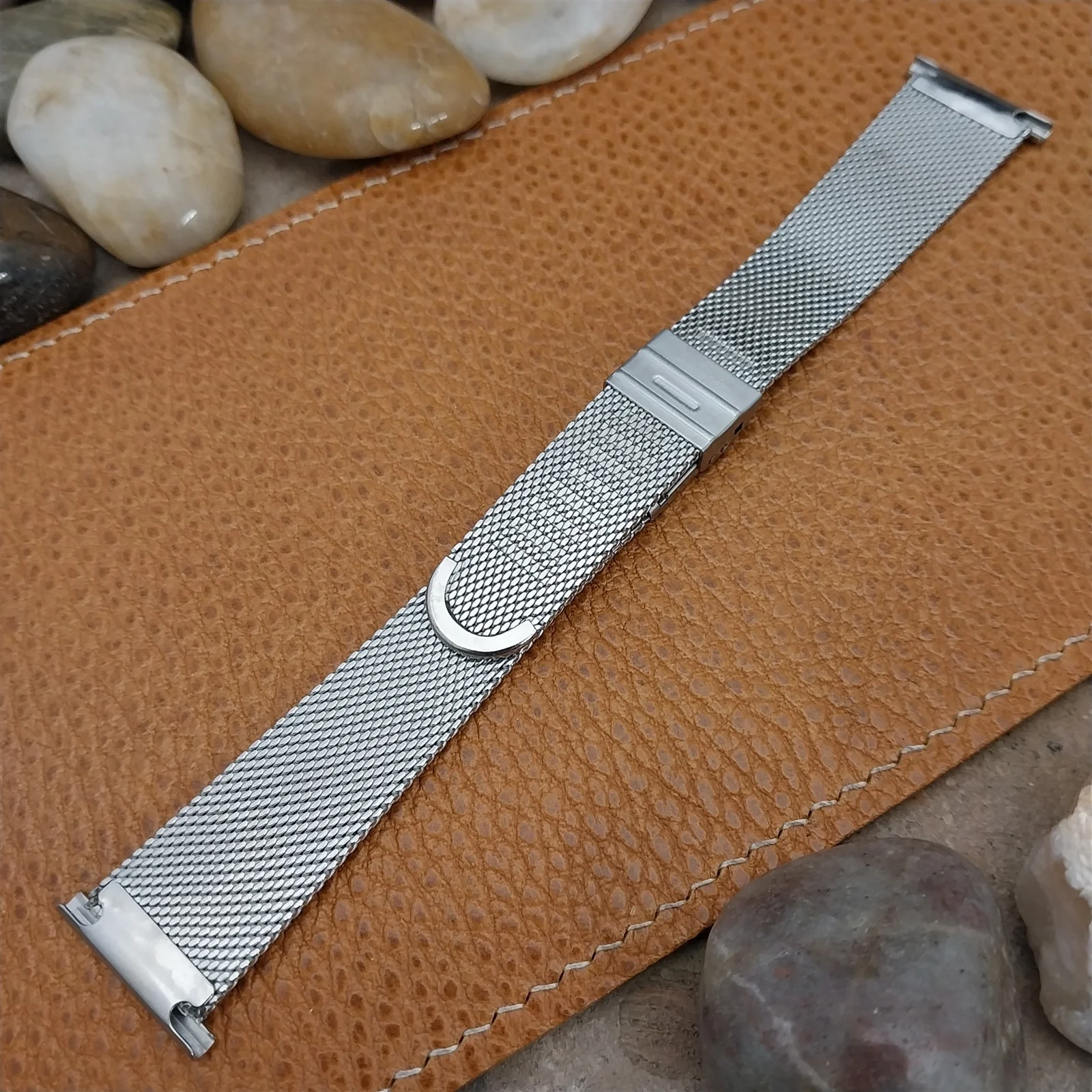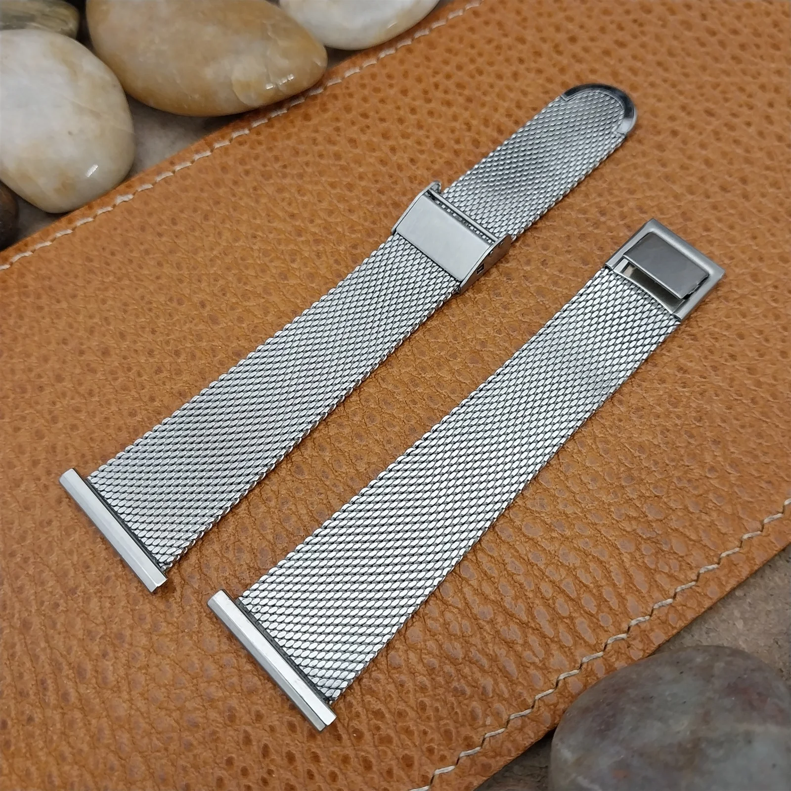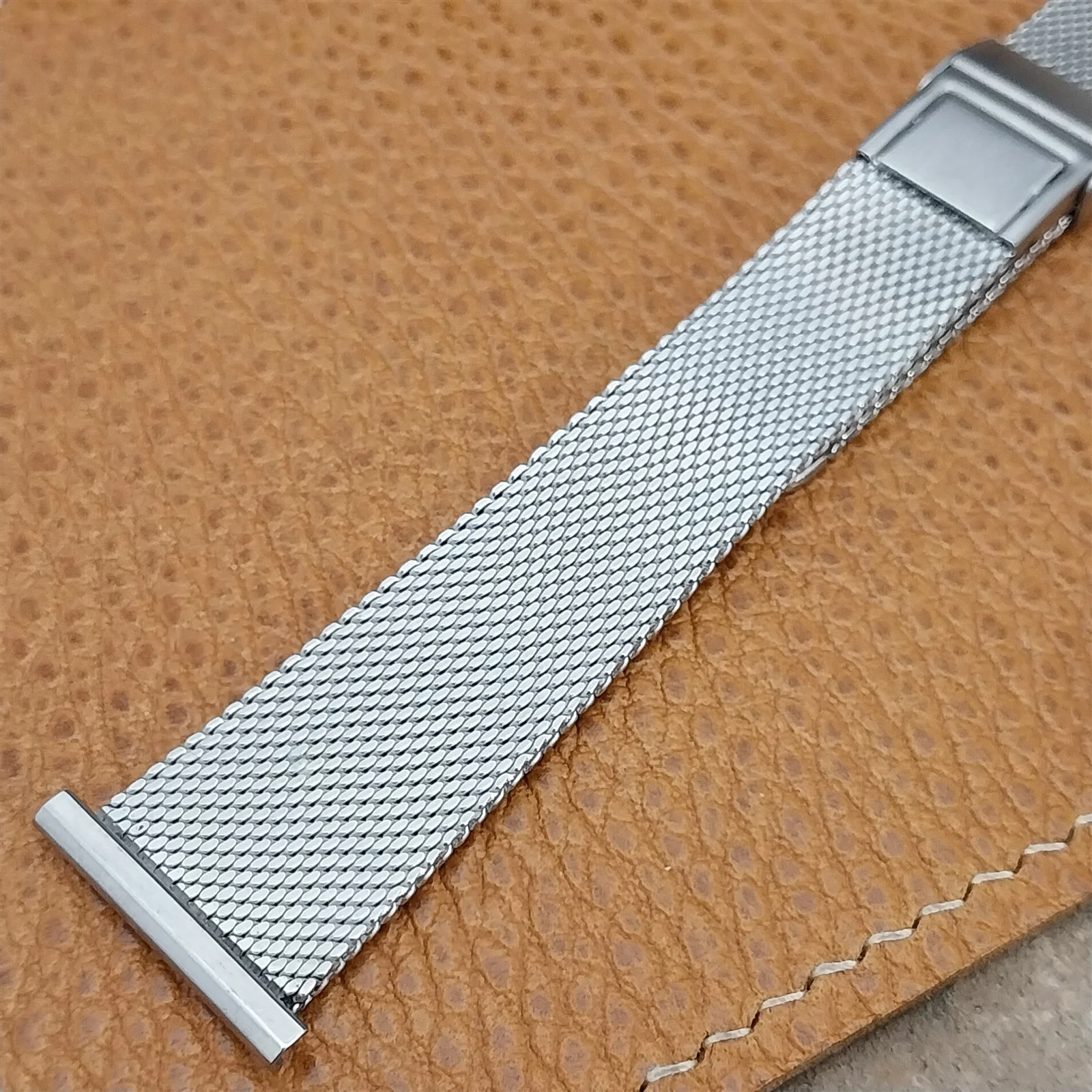 ·NOS unused 1960s old-stock JB Champion stainless steel 2 piece 1.6mm thick mesh watch bracelet.