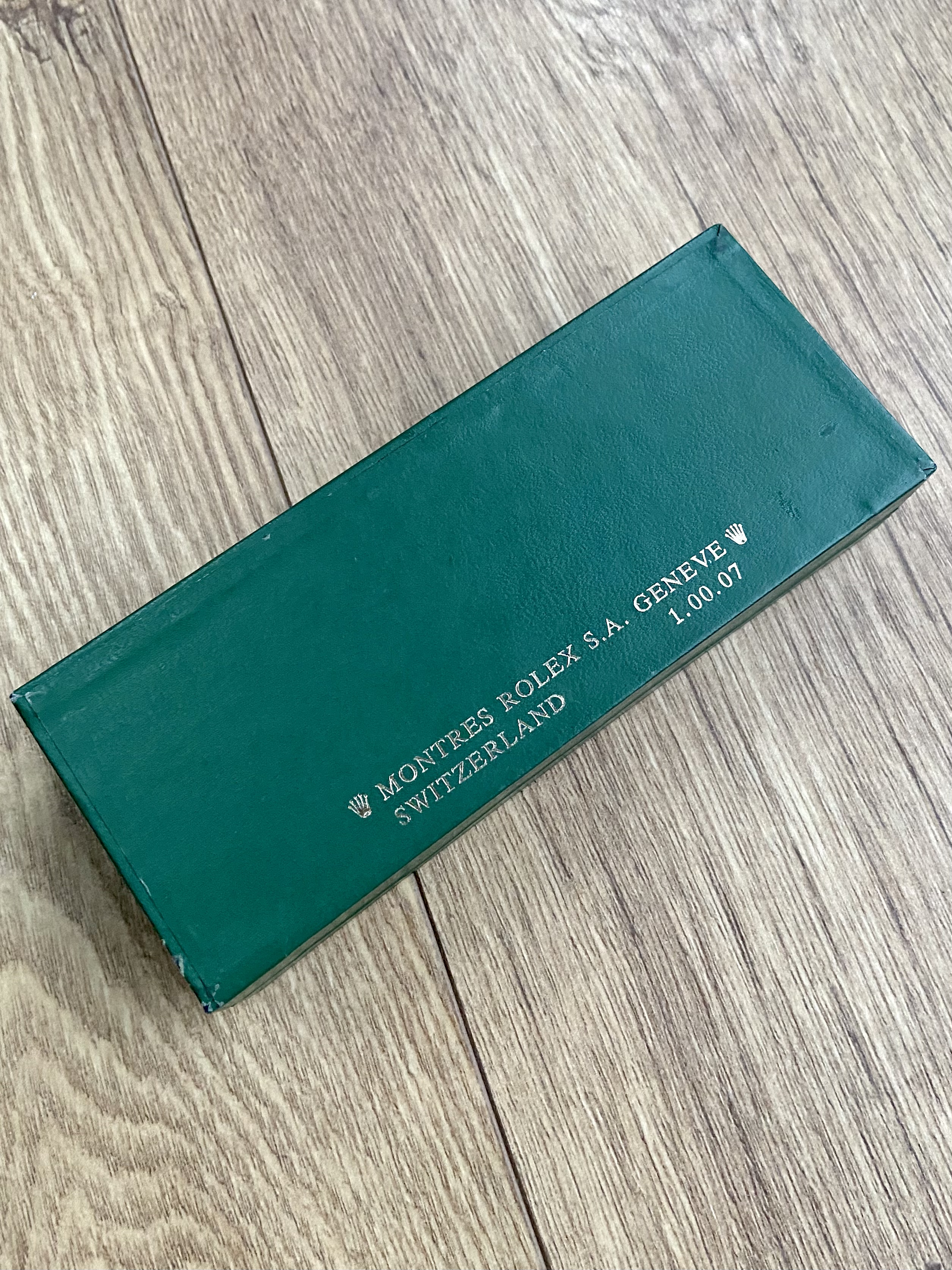 6. SOLD Vintage Rolex green coffin box, ref 1.00.07. I believe this is c.1970’s/80’s.