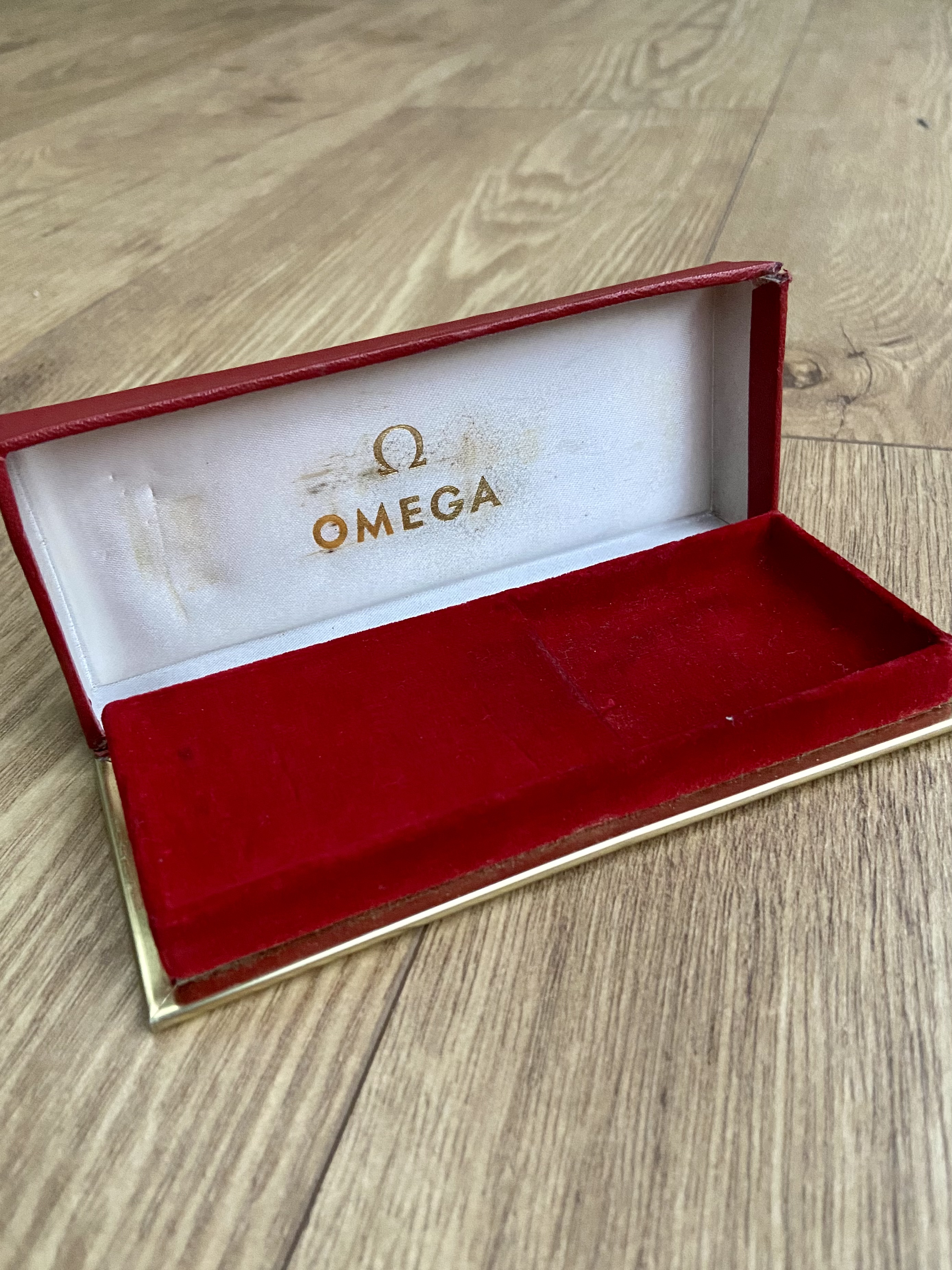 3. SOLD Vintage Omega Red box without reference number, c.1960’s. Exact same dimensions as box 1501 so is also suitable for vintage Speedmasters etc.