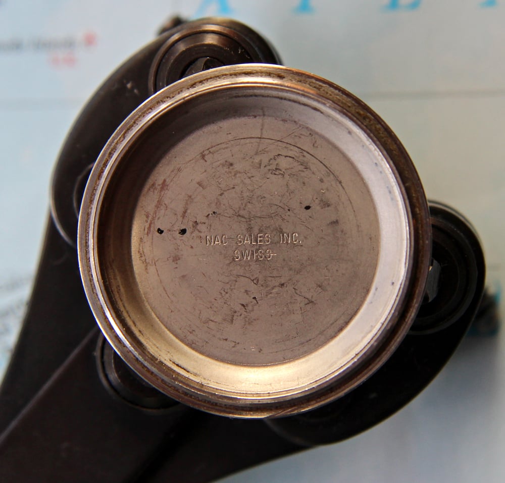 CASE & BACK: Robust 38mm wide (not including crown) x 41.5mm solid stainless three-piece tonneau case. Case looks to have never been polished with original chamfers and has some dings, scratches and marks from the years, Very Good vintage condition overall. Screwed notched back has a few scratches externally but all correct nomenclature is present and crisp, Excellent cosmetic condition and again probably never polished in the past. The inner back is corrosion-free with all correct "NAC Sales" text and screws into the case smoothly and tightly.