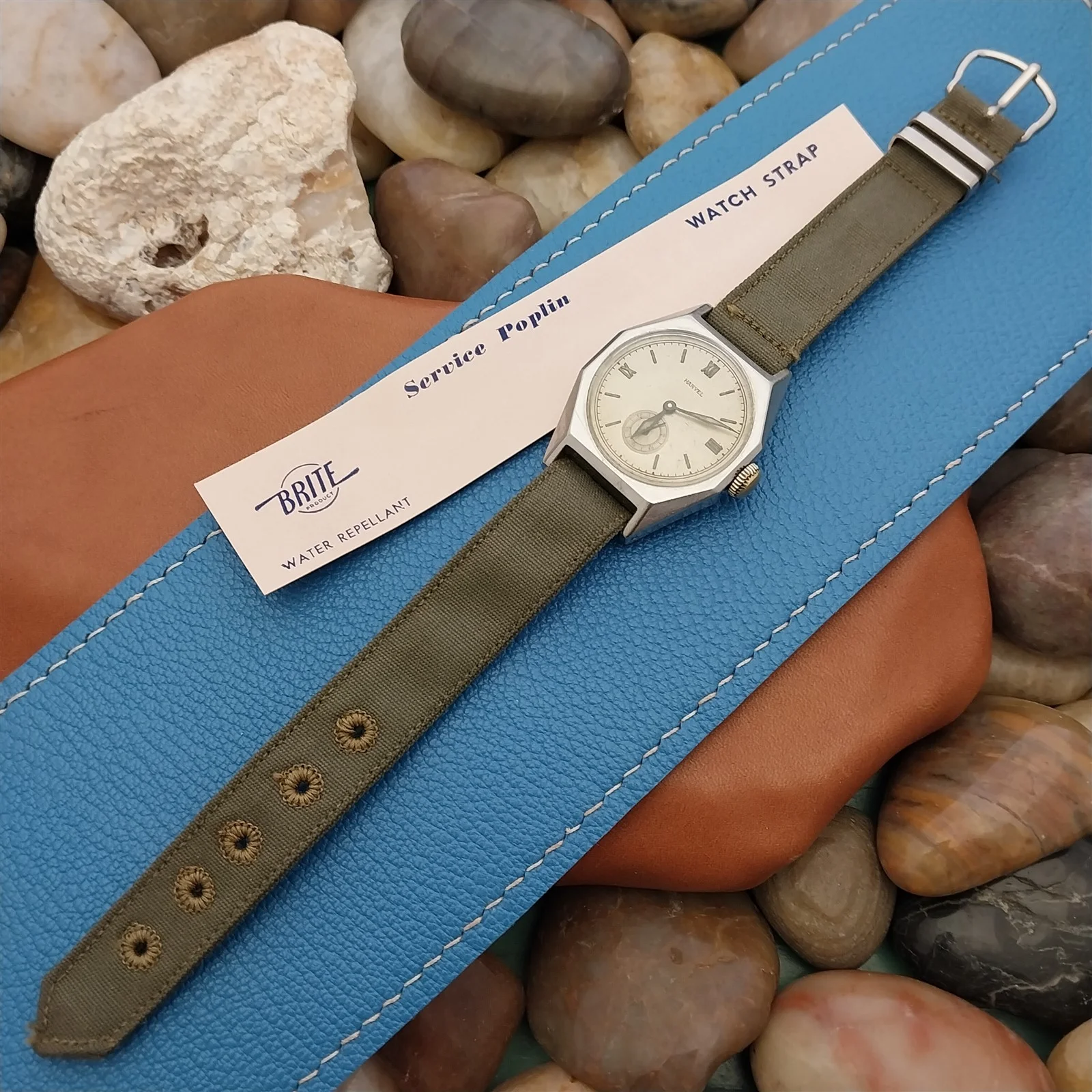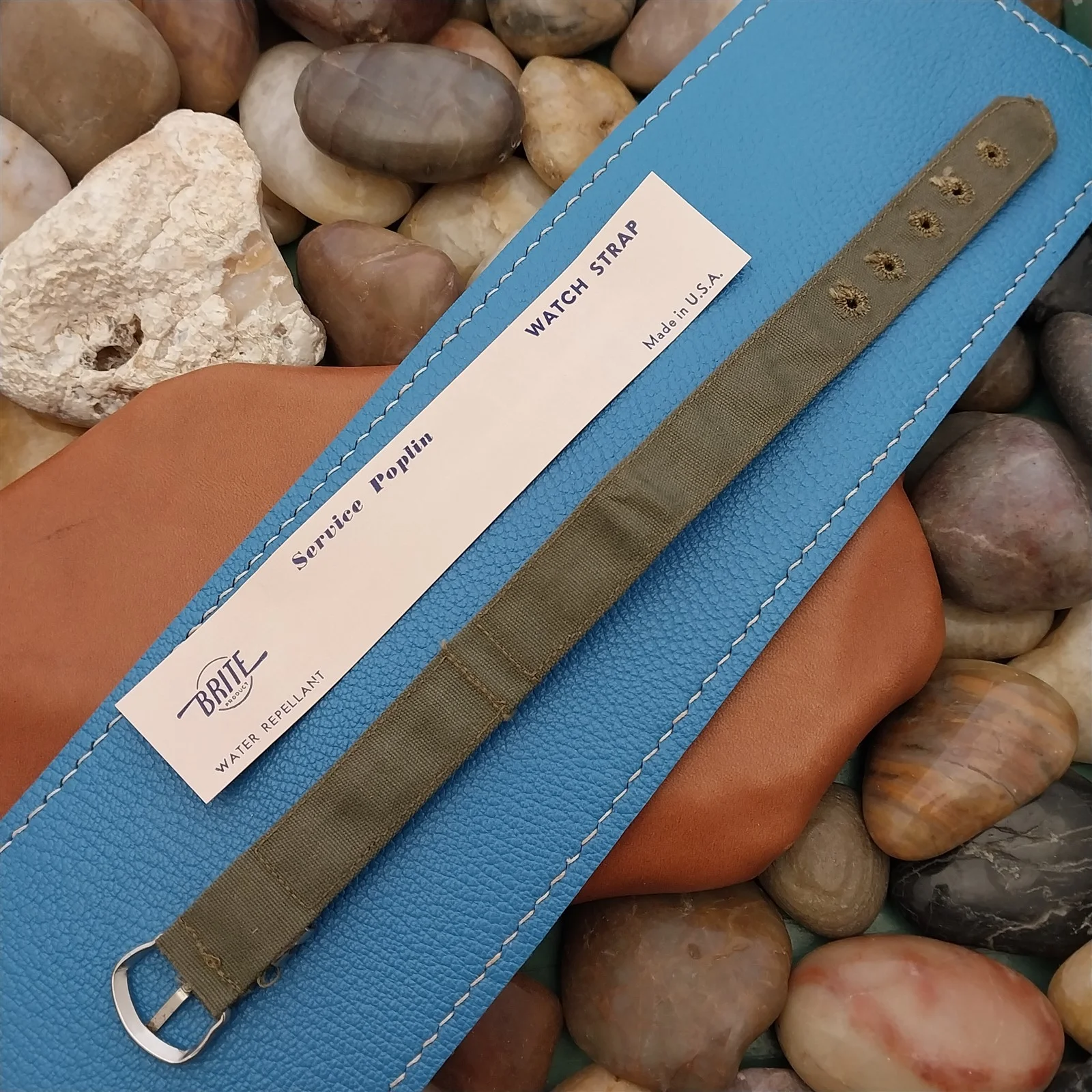·NOS 1940s unused old-stock OD green service poplin canvas 1 piece watch strap.
