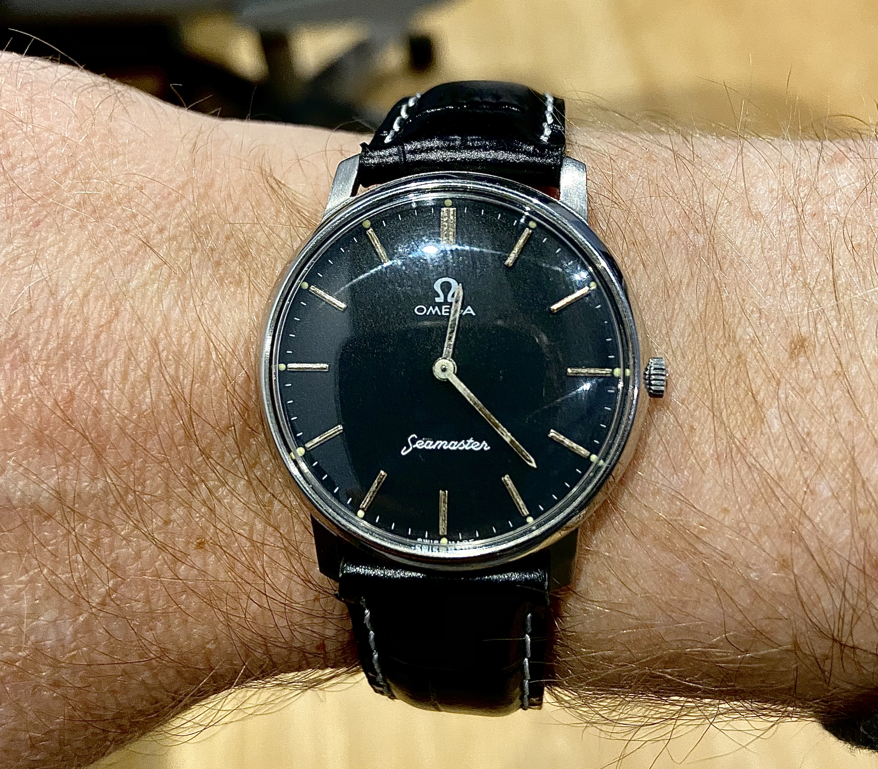 I purchased this watch from Daniel @donkii here on this forum a while back and I still absolutely love it, really a stunning black dial. Here are a few of his photos for your enjoyment! 😀