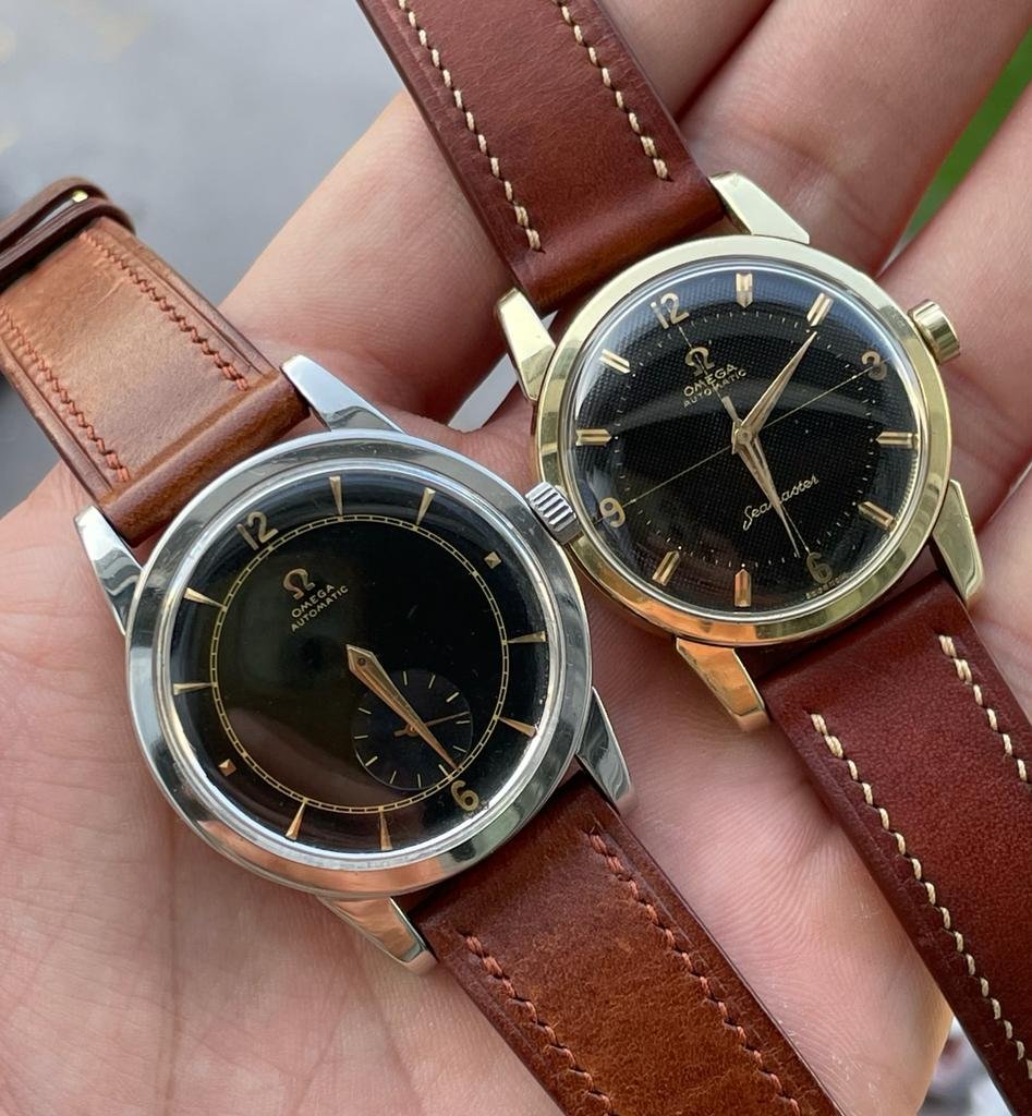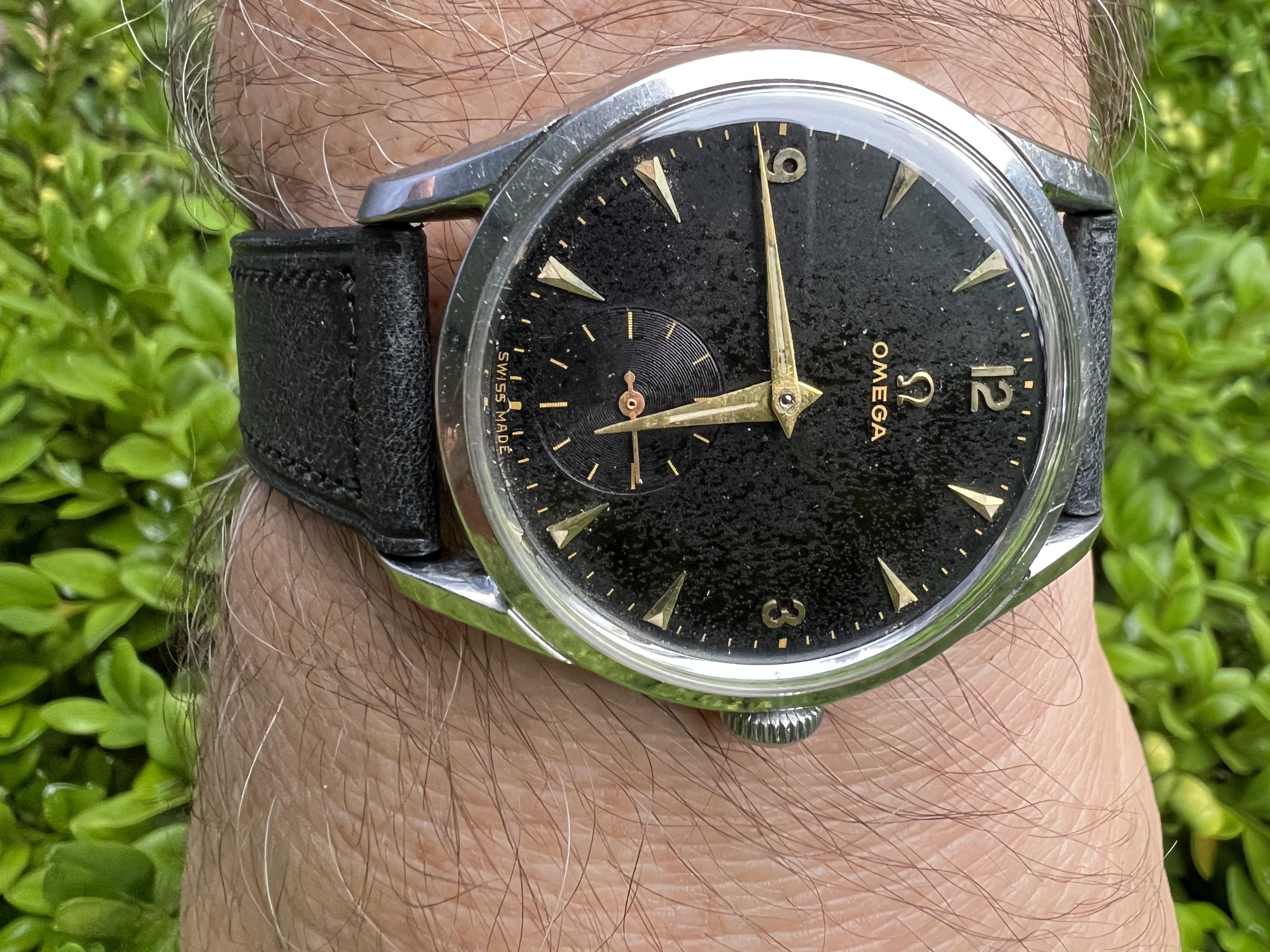 Second, the dials of quite a few of the Omegas from the fifties/sixties seem to deteriorate (or patinate, if you prefer) in a way that doesn’t seem to affect dials on some other brand dials (black or silver) of that sort of age. I’m thinking primarily of Longines and Certina, but there obviously others.