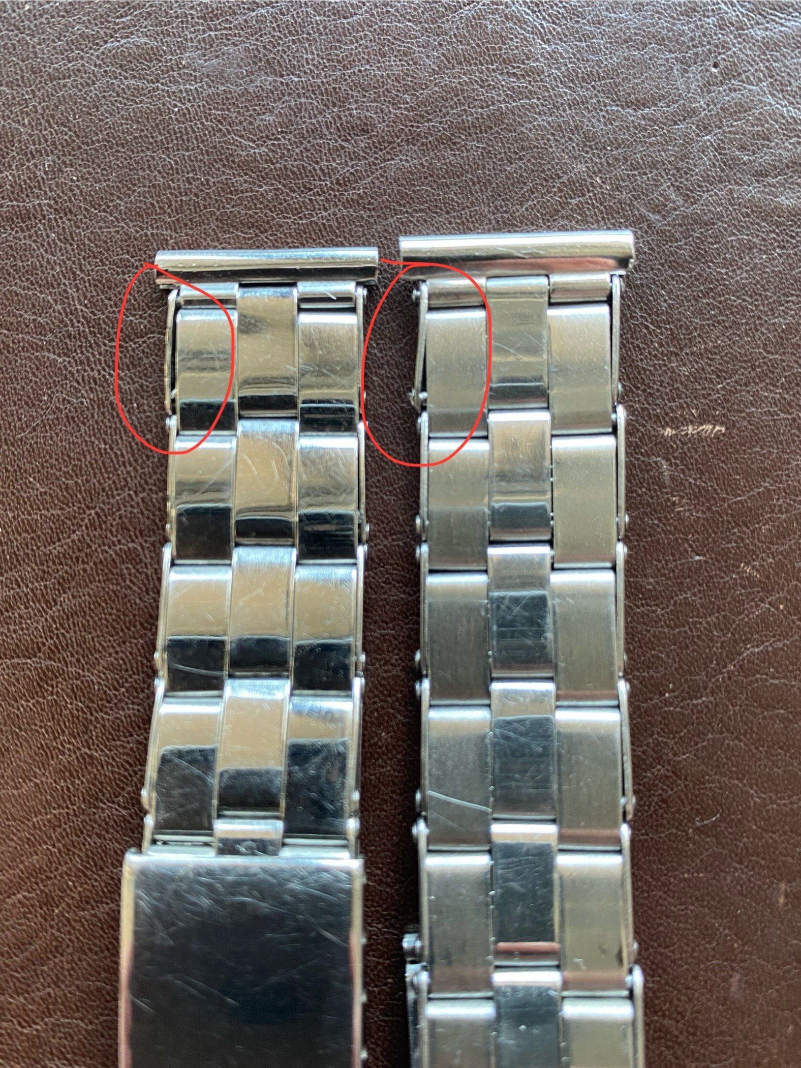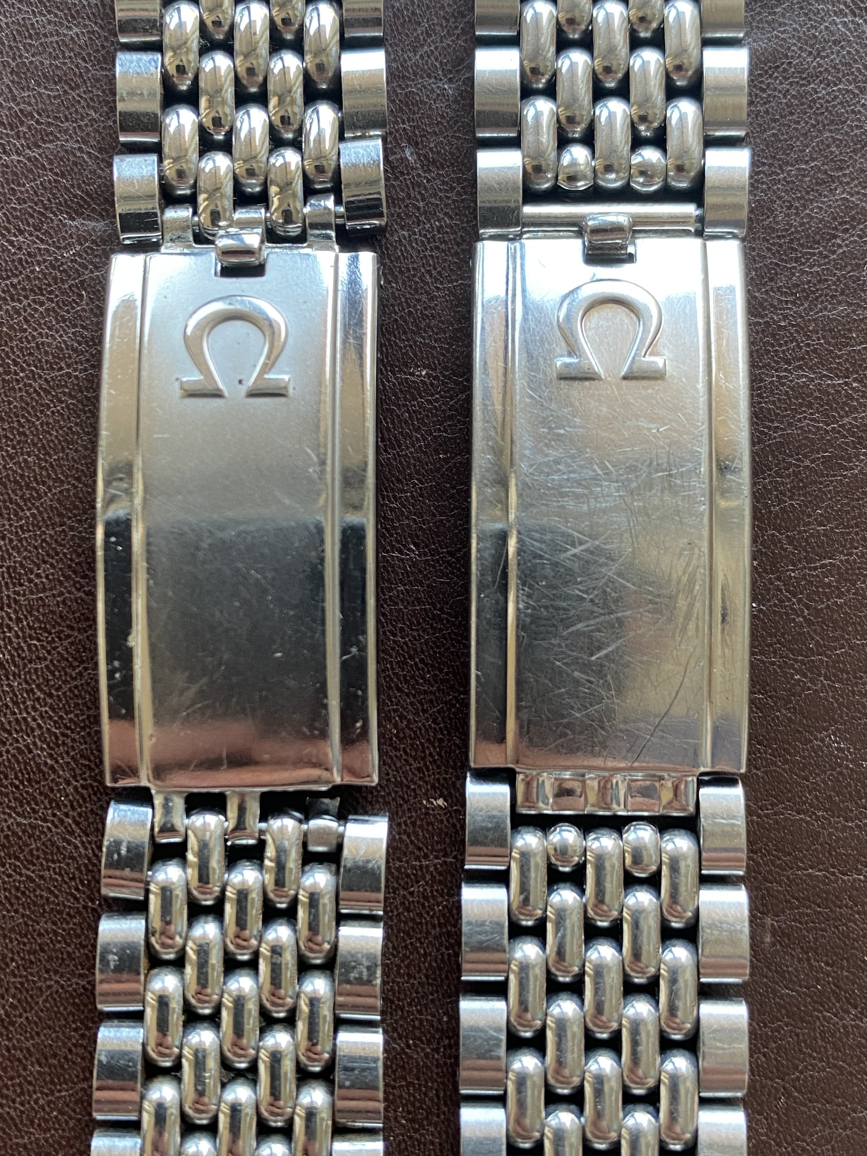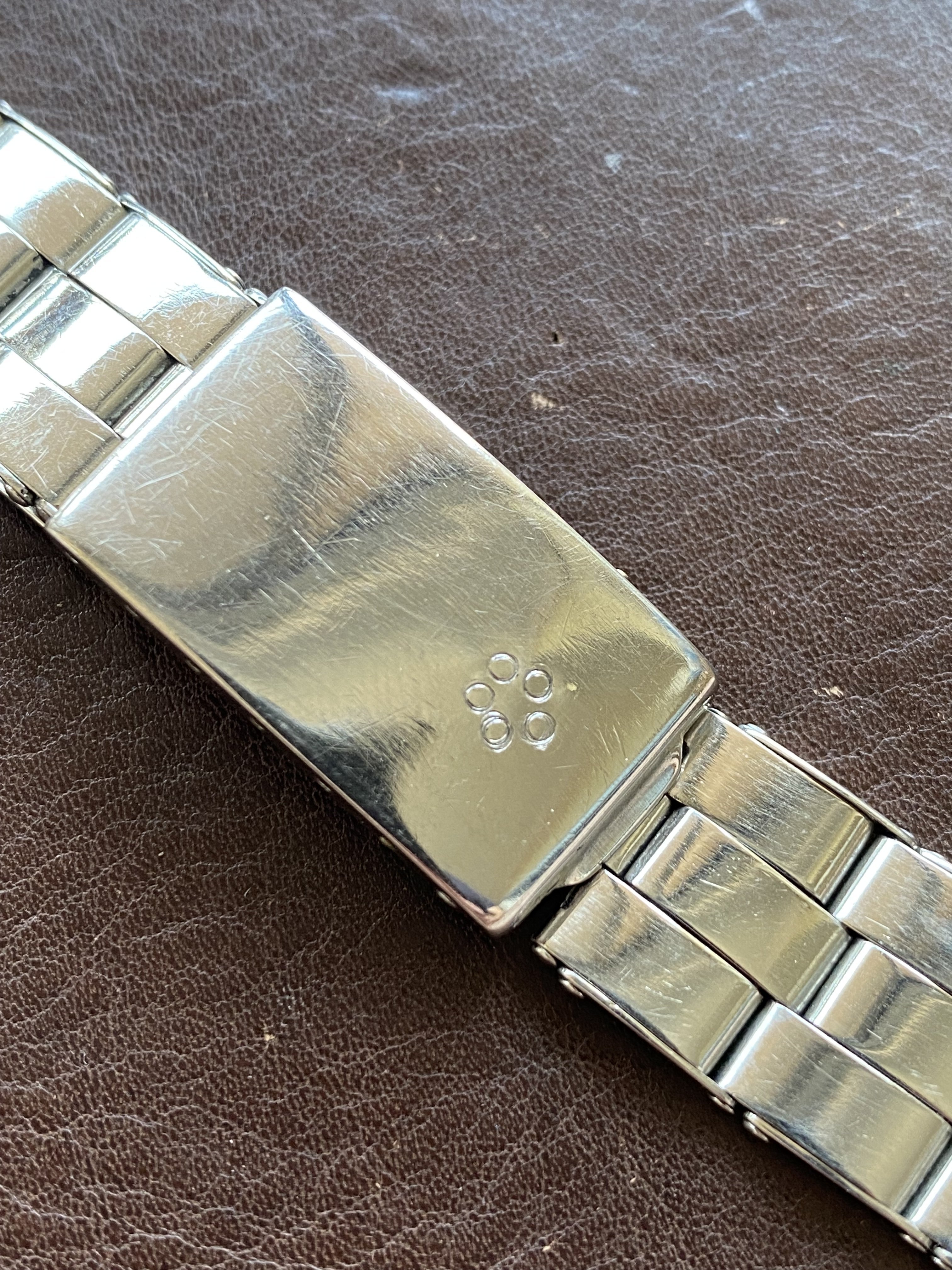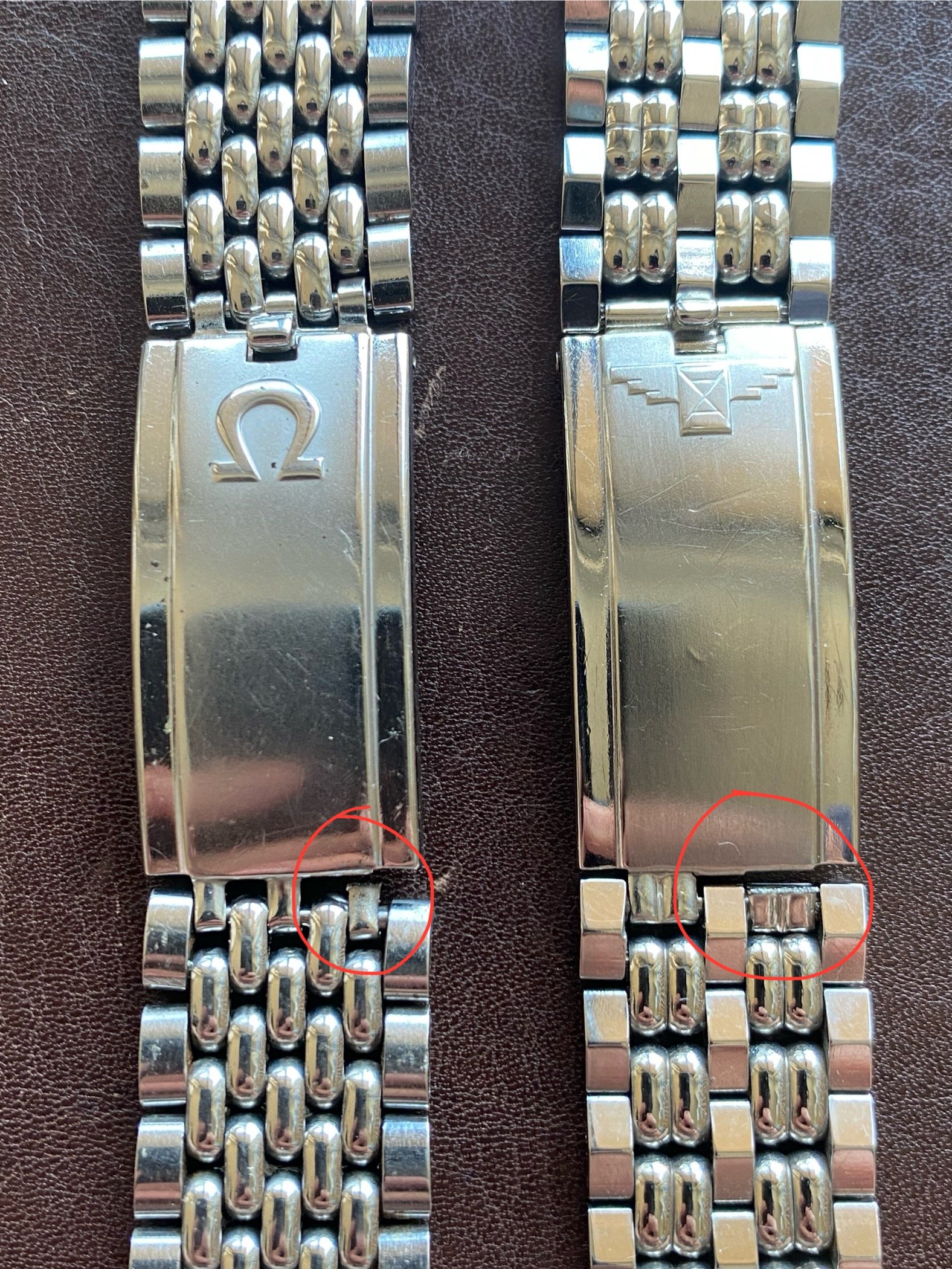 Third, I have a couple of these ‘50s sliding clasp bracelets (one Omega, one a Longines Nautilus bracelet) that are broken. All the parts are there but one of the pieces of metal that attach the bracelet links to the clasp are snapped.