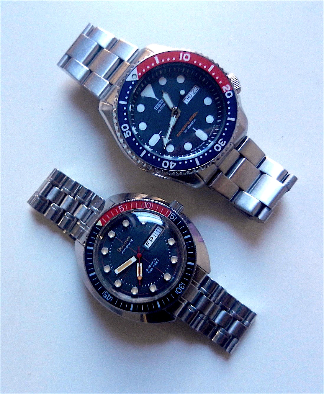Oh- and a note on the “stretch” on these bracelets- on most bracelets like the Rolex oysters, it’s the pins that are worn down that cause the gaps in the links. I’m sure these do suffer from pin wear but these actually do “stretch”- as in the folded center links that hold each link to the next start to pull apart and unfold! One I got was so horribly stretched, some of the center links were barely hanging on and were almost flat (like uncurling a spring). I used a pair of needle nosed pliers wrapped in electrical tape and went link by link and re-folded them. The links aren’t factory fresh, but I got about 1/4” back in total length and it really tightened up the bracelet.