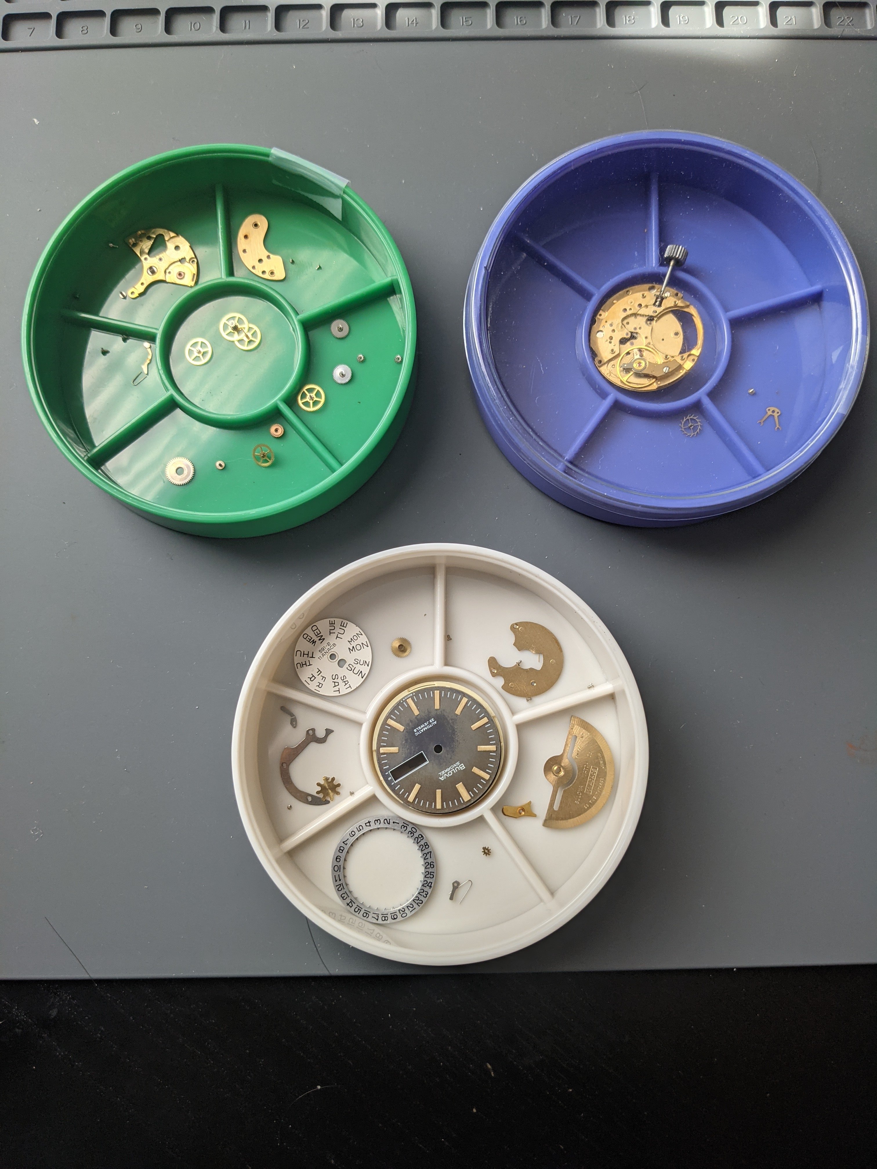 Seeing as this will be my 200th post, I figured I'd post a picture of something special I've been working on these past few months since taking my Grandfather's Bulova out of it's box (pictured far left below).