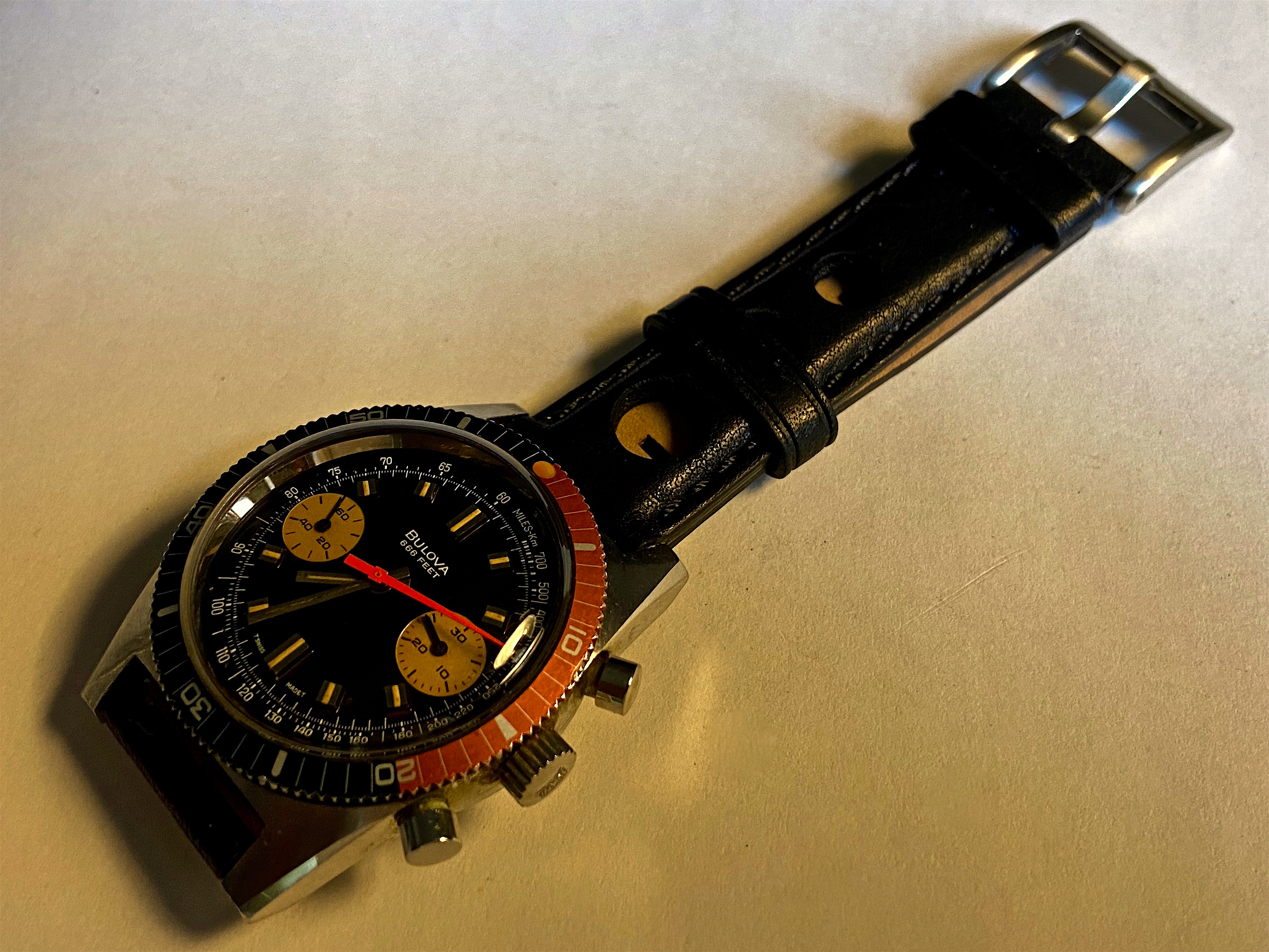 I jumped on a buy-it-now Bulova 666 chrono a few weeks ago on US eBay and it just landed here in Germany. It was clear from the sellers pics it was going to be problematical, but I think it isn't as bad as it could have been and it was only €100 so it didn't break the bank.