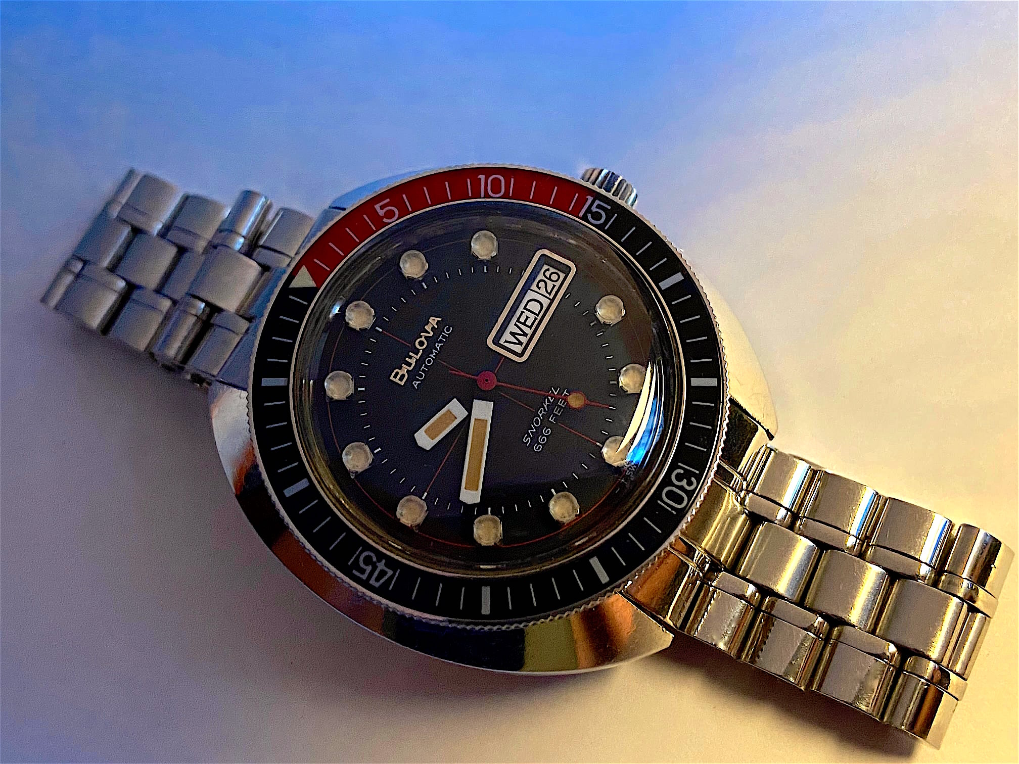 The period details like the drilled through 16mm lugs, the blasted case finishing (like a modern day parkerizing), the bubble dome, the cathedral hands- they knocked it out of the park. At the used market price it can’t beat.