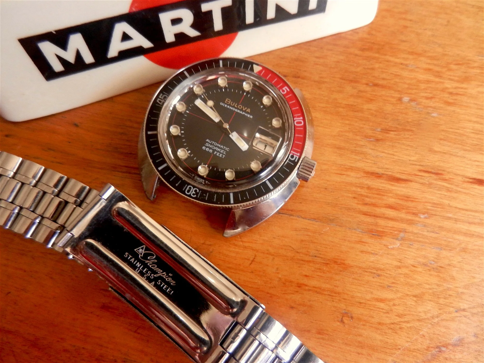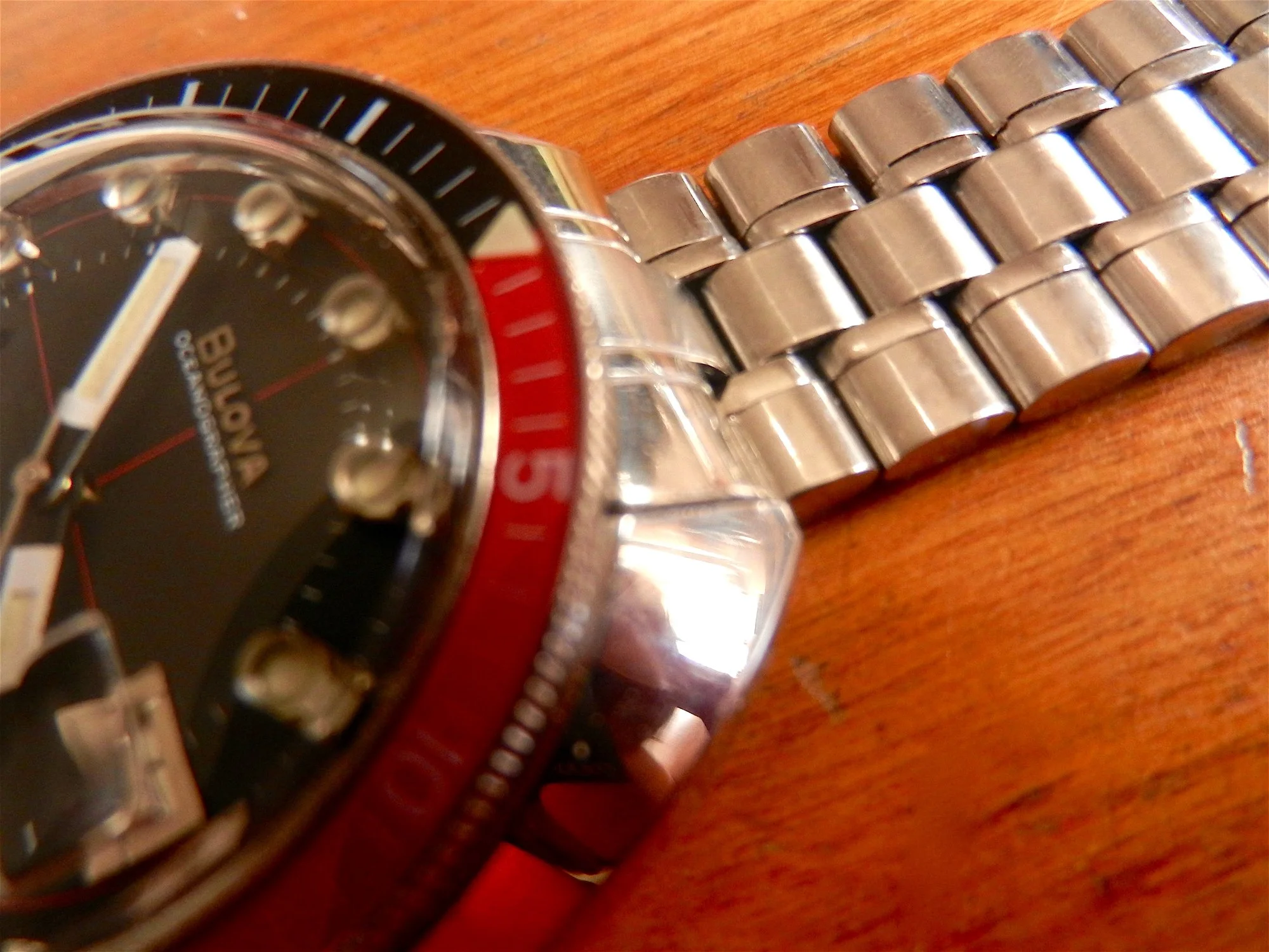 Here are some of my observations. The watch is from 1970, it has an incorrect crown (Caravelle), and an incorrect end link on what I presume to be an original bracelet. It has at least one service mark on the case back, which if I were to guess is when the crown replacement happened and maybe a new case back gasket installed. I say this because from what I’ve seen so far, the original rubber gaskets broke down into their old petroleum form and virtually melted onto the movement ring and case back.