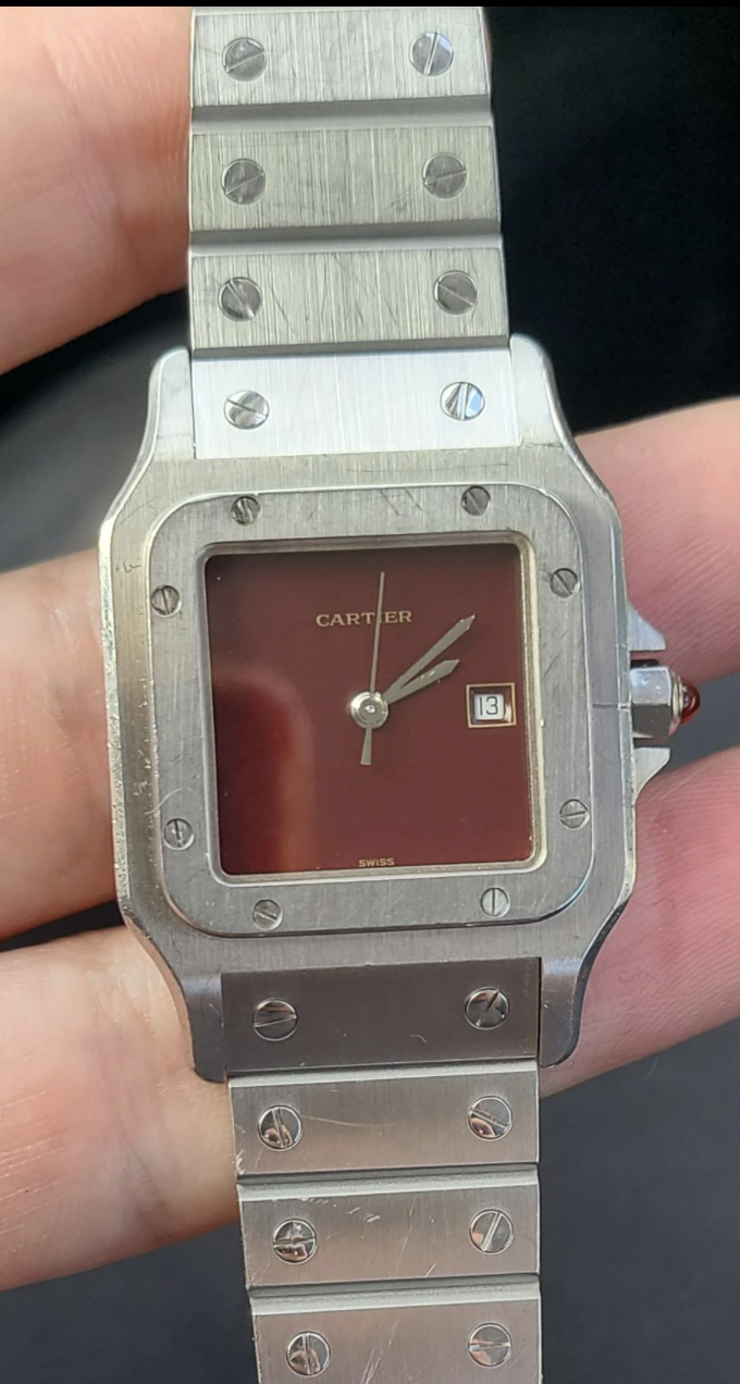 I recently saw online (link below) this beautiful red dial Cartier Santos Burgundy (ref. 2960) and got fascinated by it.
