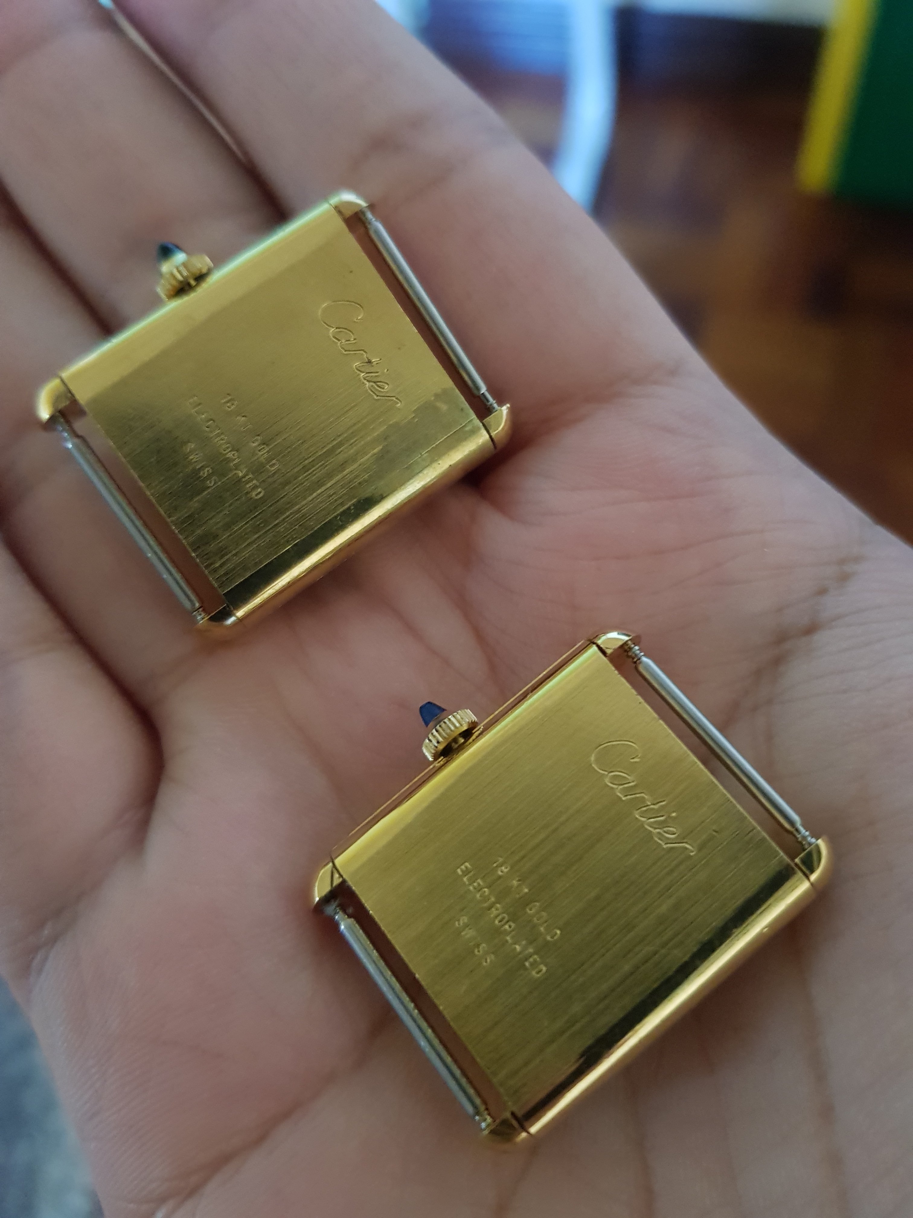 These are often market Argent, Plaque d’Or. Silver, gold electroplated. Many jurisdictions would not accept the 18 karat gold electroplated marking on the backs of these cases. Check with a Cartier dealer would be my suggestion. The questions pertaining to these, regularly show up on the MB. If you search the archives using the magnifying glass above this page, you can find numerous previous threads discussing these.