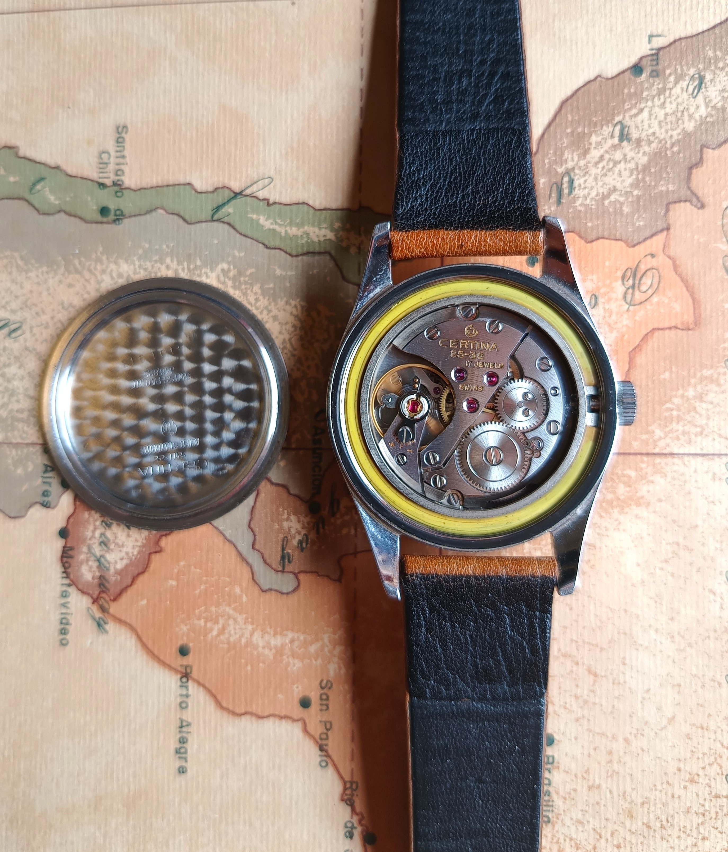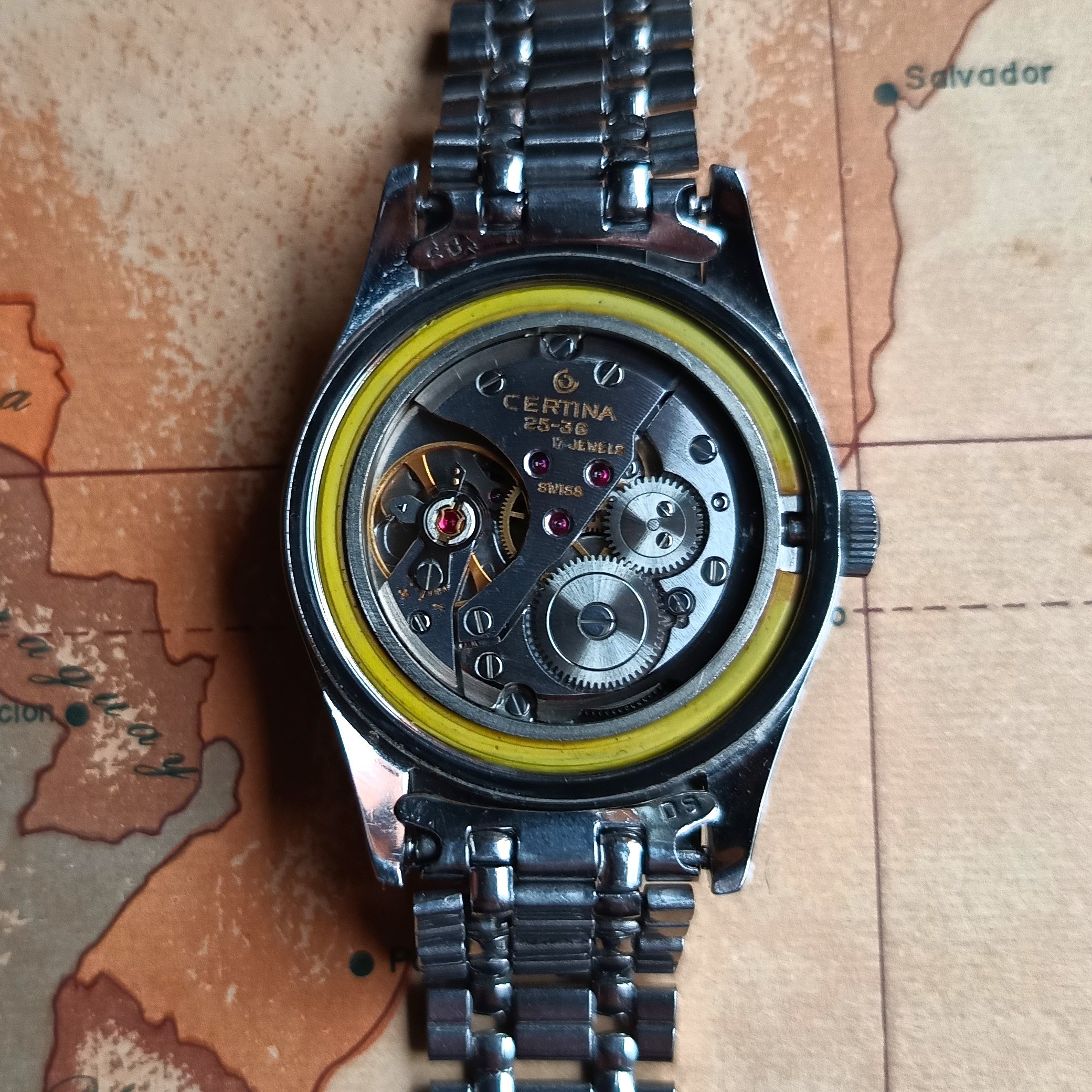 The caliber is the manual winding Certina 25-36, not recently serviced but in fine working conditions.