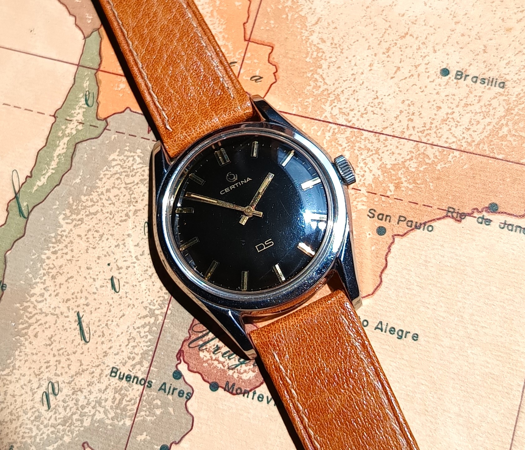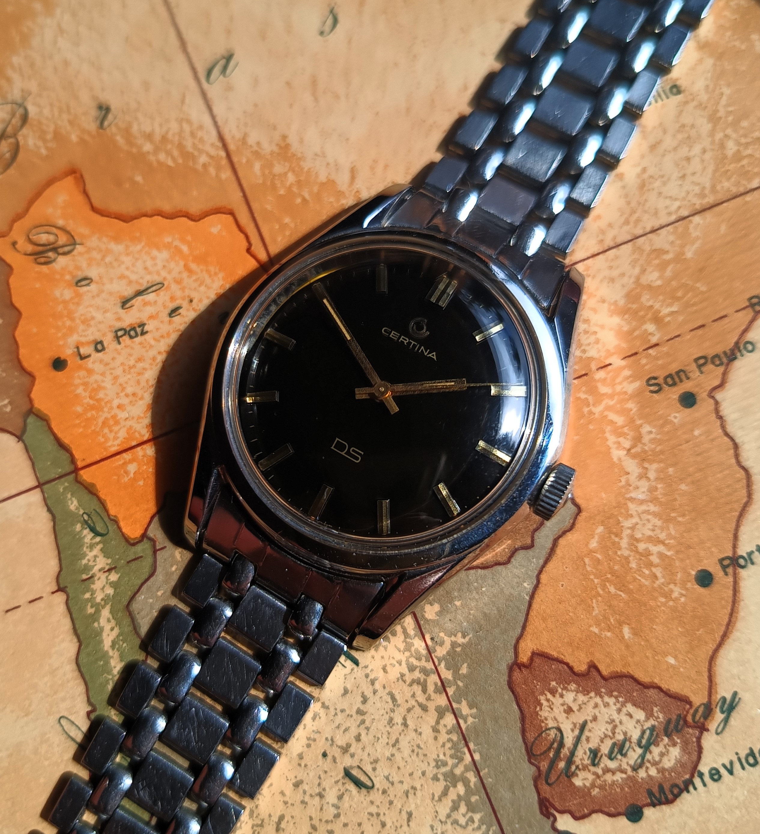 ·Up for sale from my personal collection is a truly excellent condition Certina DS1 with black-gilt dial and original GF bracelet.
