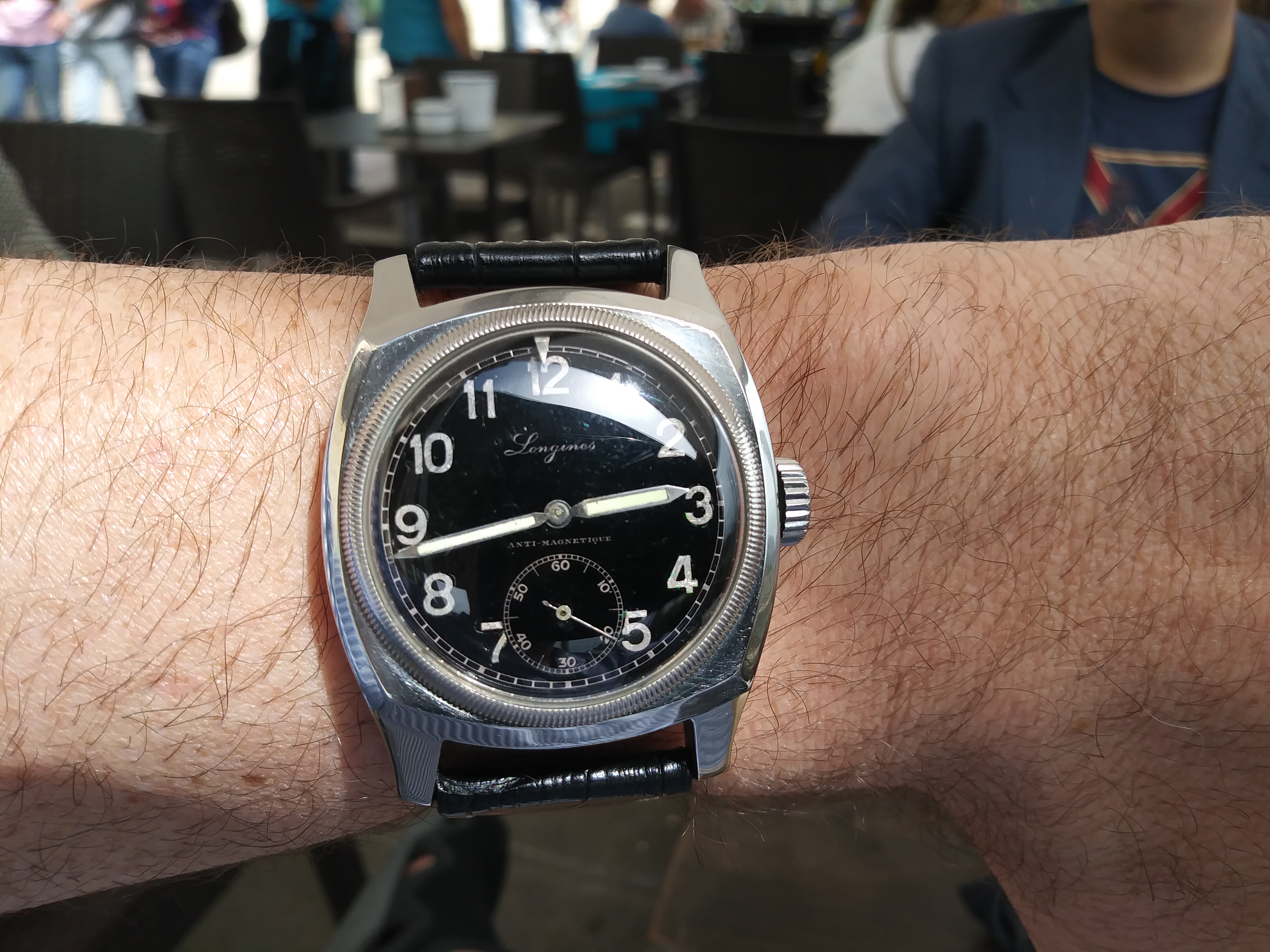 I have this vintage Longines Ref. 3582 Civilian Czech Pilot from 1943 for sale. This watch belongs to the Second Series, with the 15.26 reference pocket watch caliber, rare pencil hands (most Longines Czech watches have cathedral style hands) and porcelain dial. This matching numbers watch is the Civilian version and comes with the Extract of the Archives provided by Longines. There´s plenty of information about these watches out there but do not hesitate to ask any questions about mine.