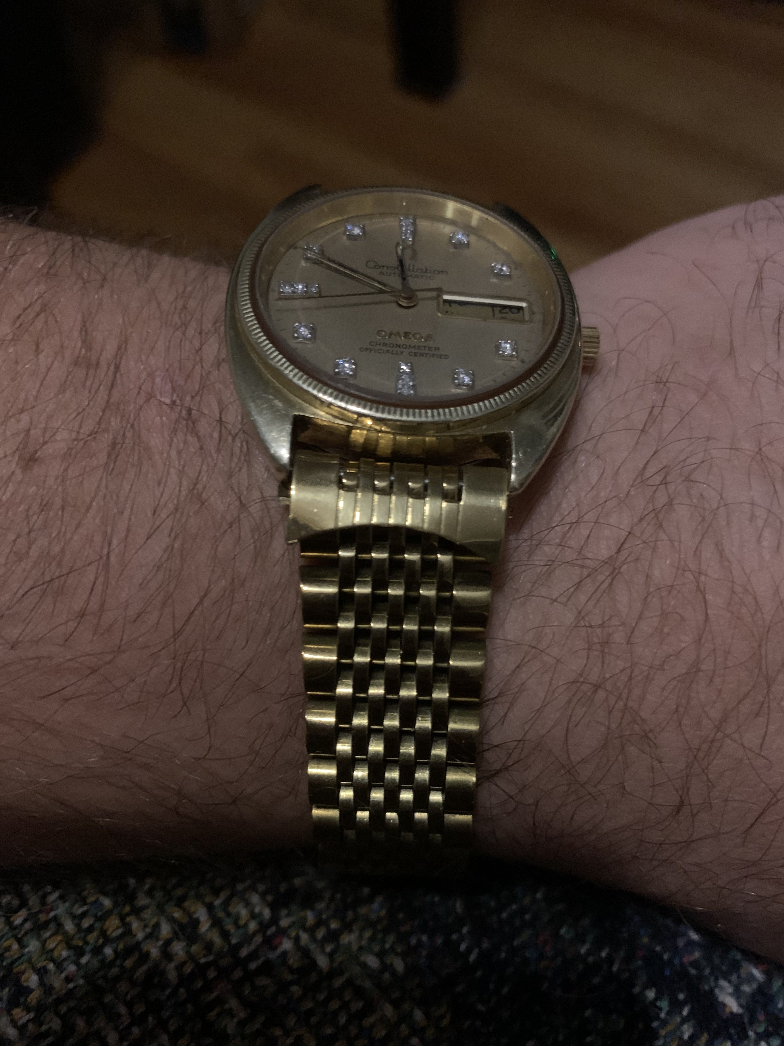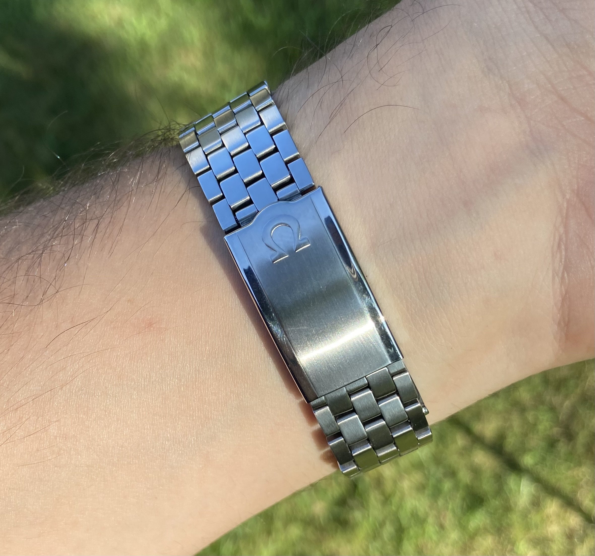 and the 2nd photo is of a 19mm faux band I purchased, the end links were too big. Or wrong style for this watch. And wouldn’t fit. So I flipped them around… to make it fit. just because I wanted a band on it.