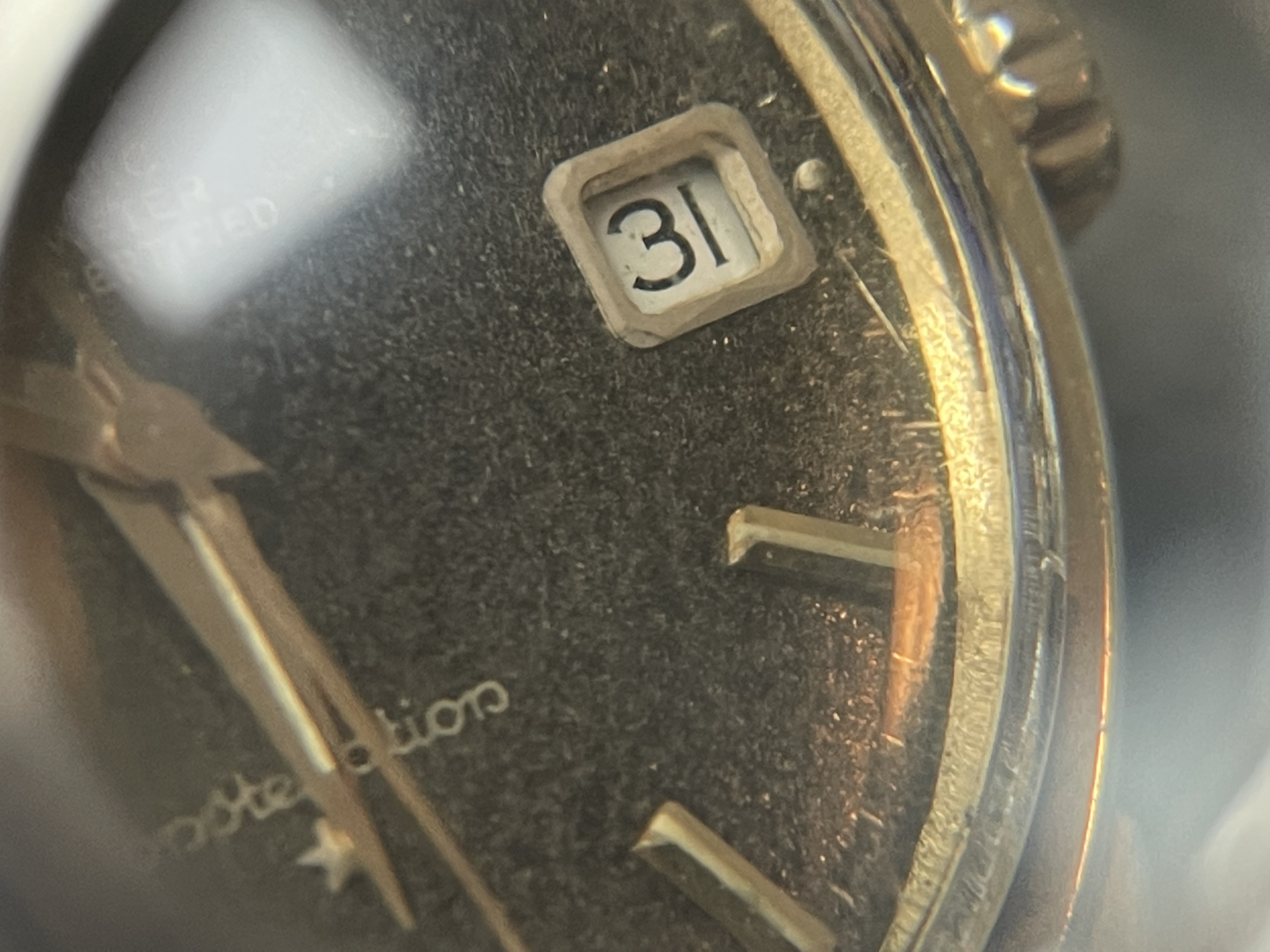 It's a gilt dial destroyed from radiation - when it's uniform, it's appealing and in my opinion the value is around 70% of a pristine one, when it's not uniform it's more like 30%