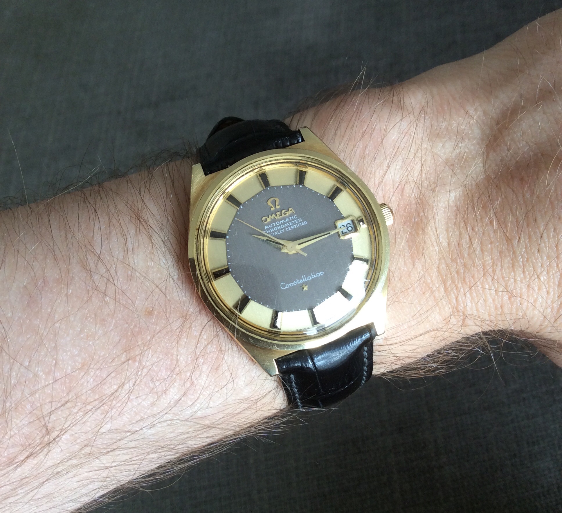 168.025 arrived yesterday after a nervous month-long wait for the zero-feedback to post it. Here is a first wrist shot on the only strap I had lying around.