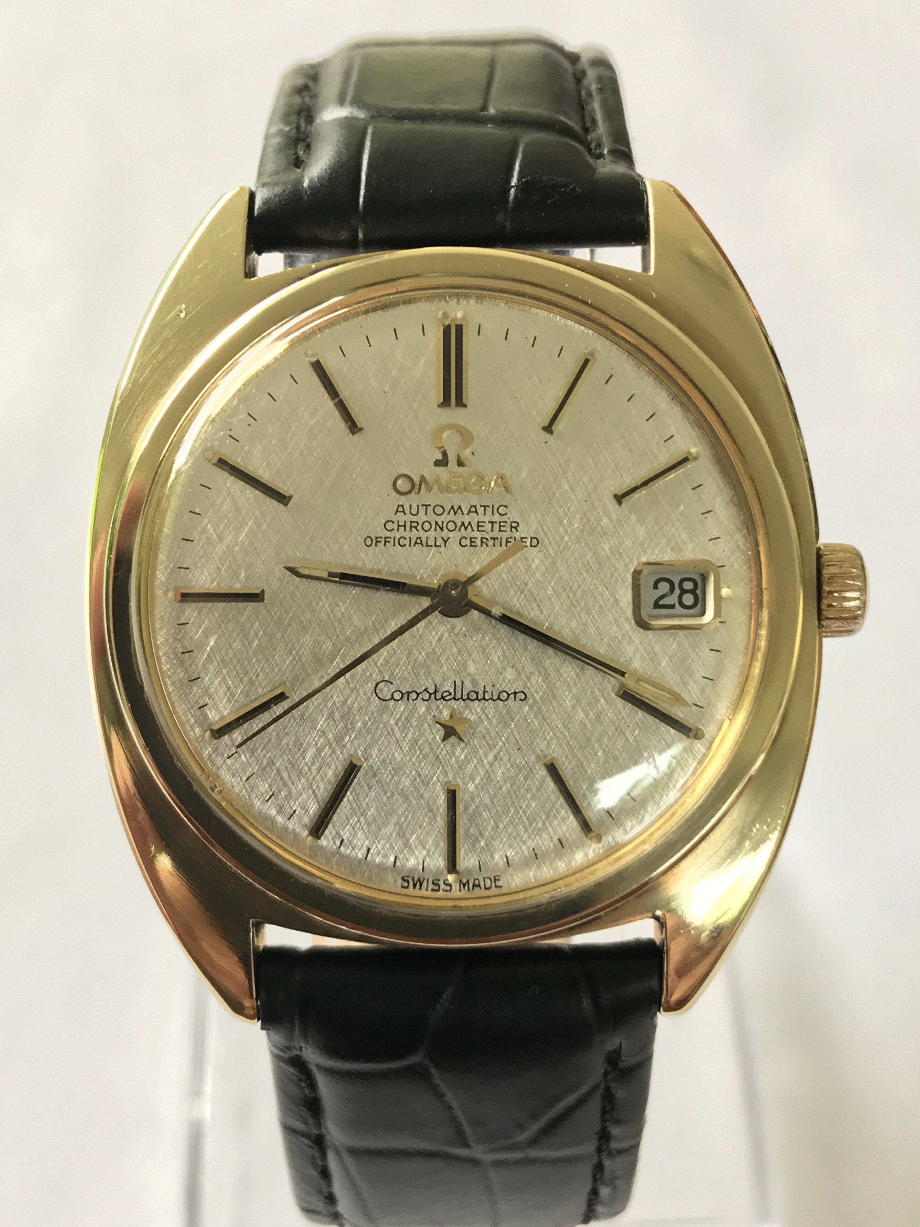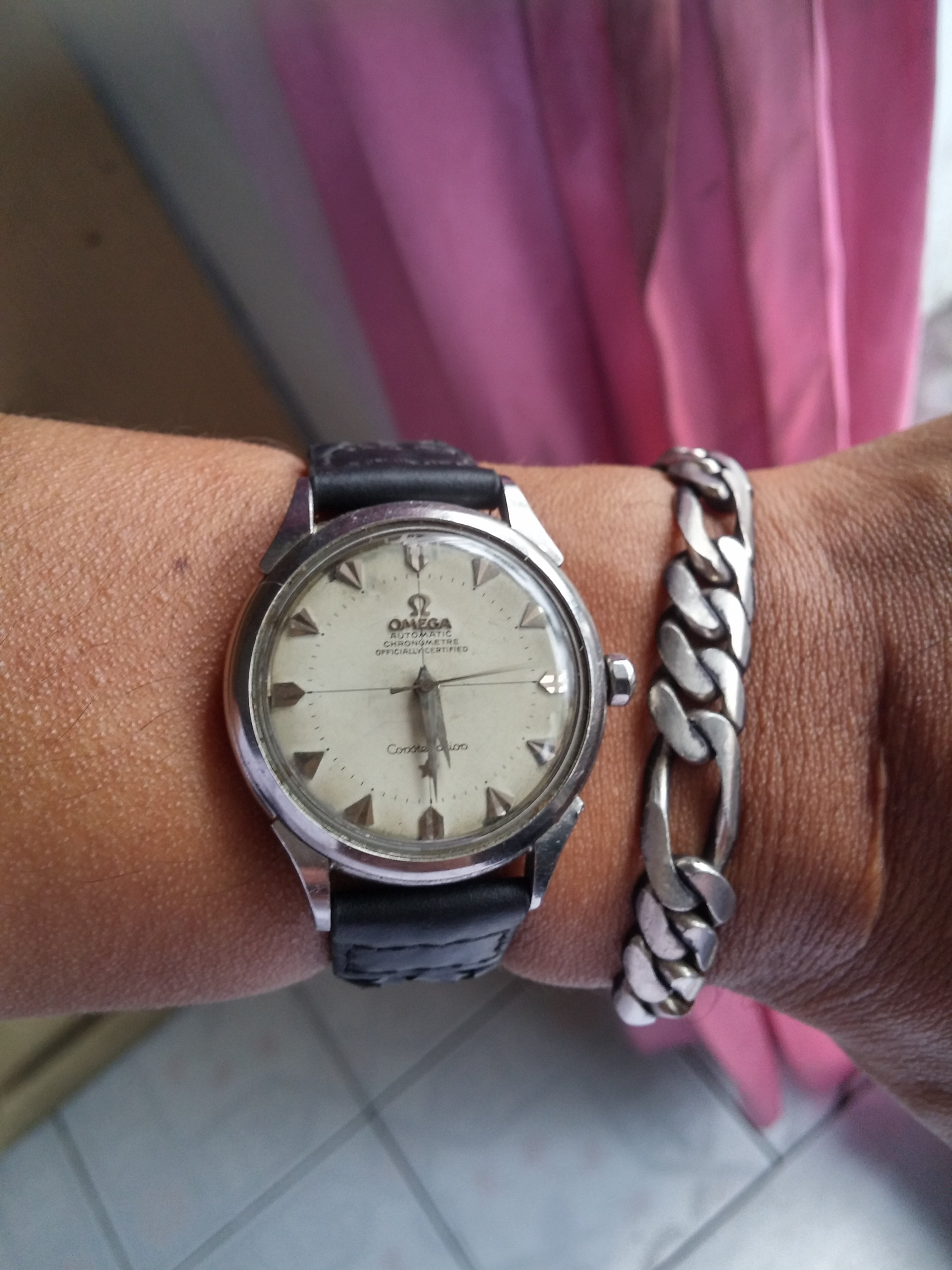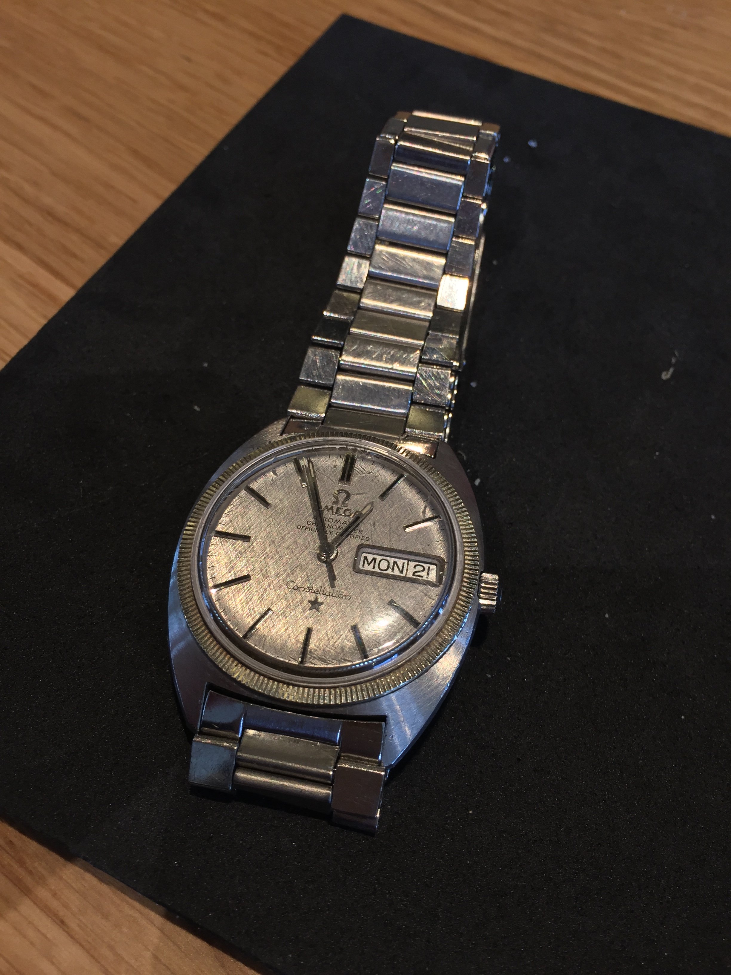 路Here's mine, I consider myself very lucky with the price paid for it. She looks better in person, and is currently at service. I can't wait to get her back!! I believe she's a 1968 model. Does anyone know what size bands/ straps they take? I've heard conflicting stories between 18/19mm.