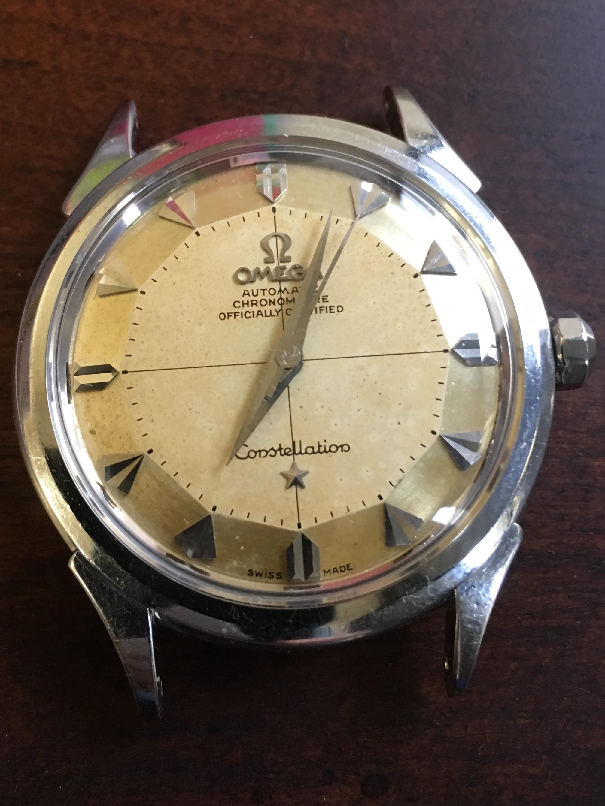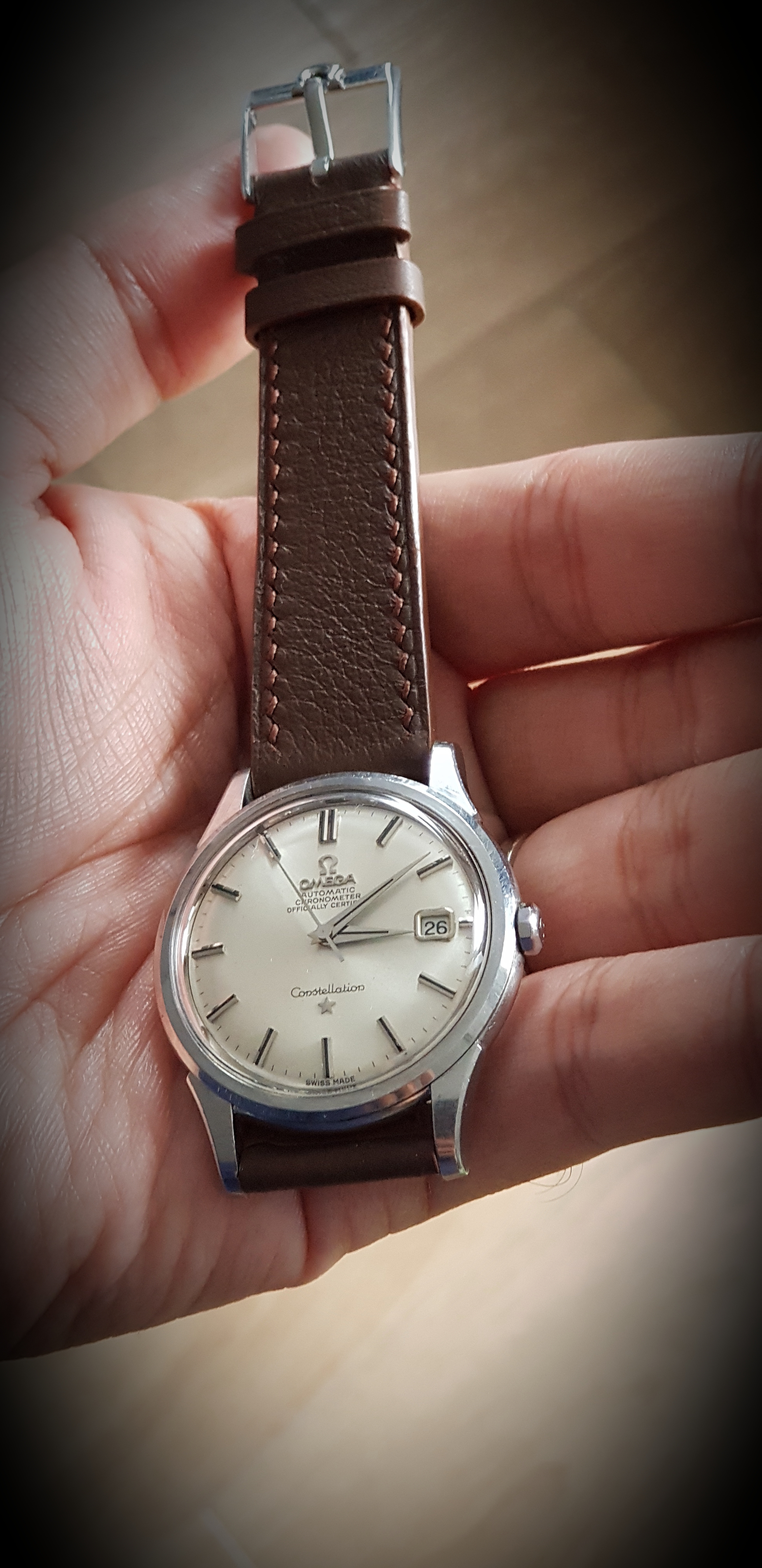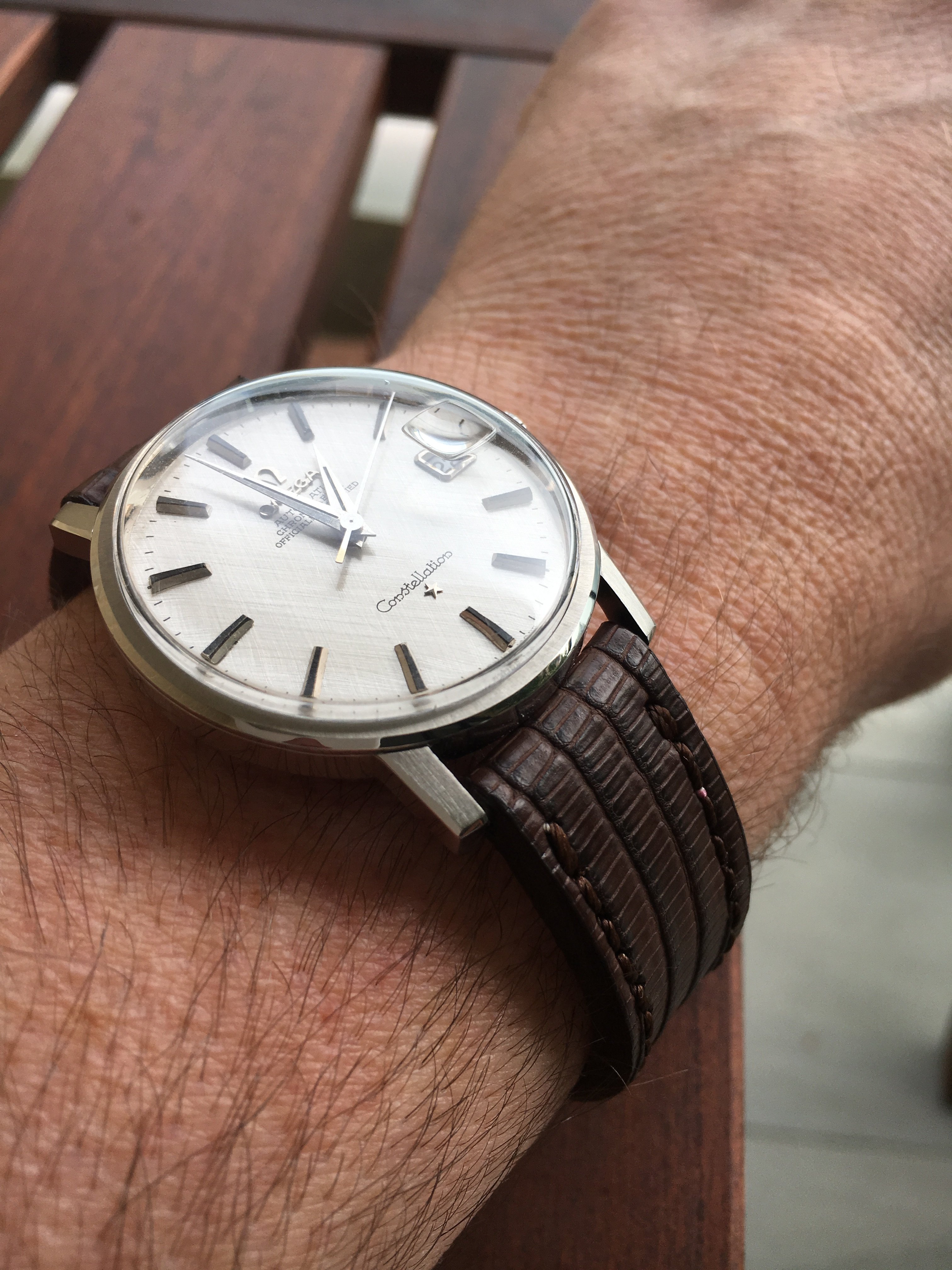 Another cocktails and eBay misadventure here: got this old Connie for $300 but the dial was a disaster. Though I know many will think it’s a sacrilege, I got her a facelift! As far as I know, the rest is all original. After a nice service, she runs like nobody’s business. Lots of compliments and the satisfaction of bringing something back that was left for dead! Lizard strap from Mansarea, recommended on OF.