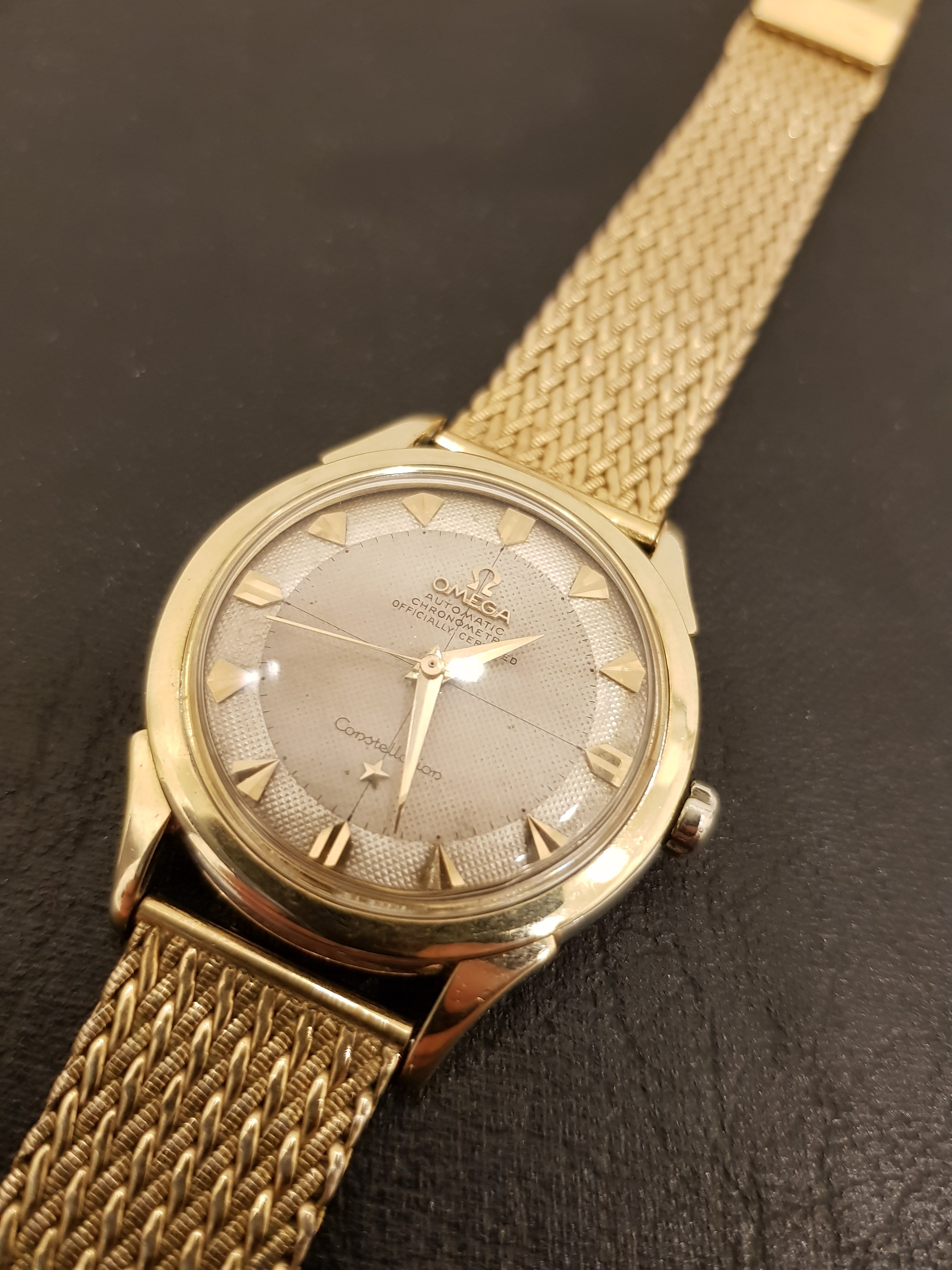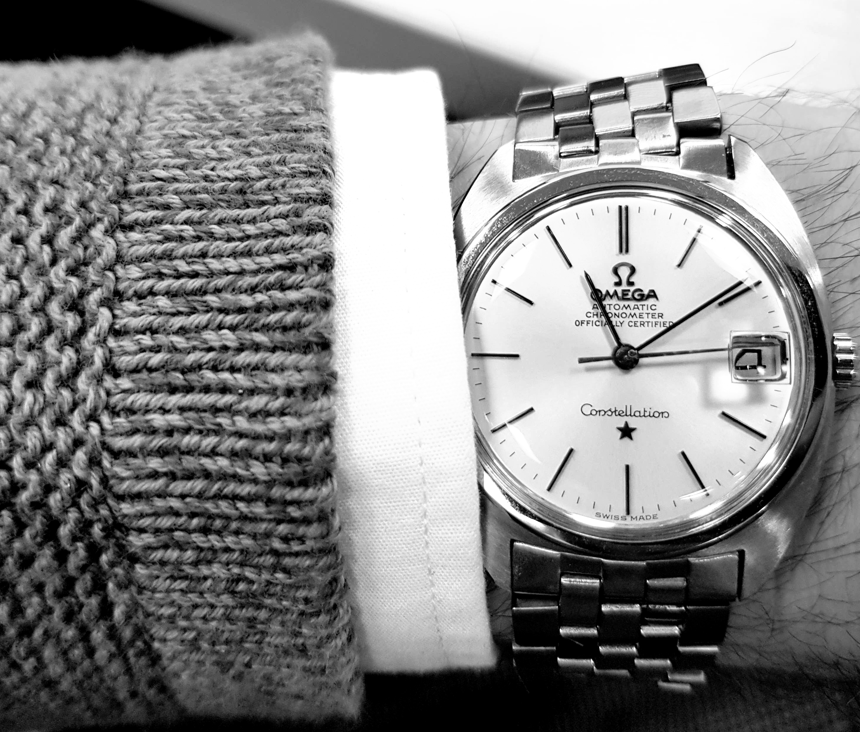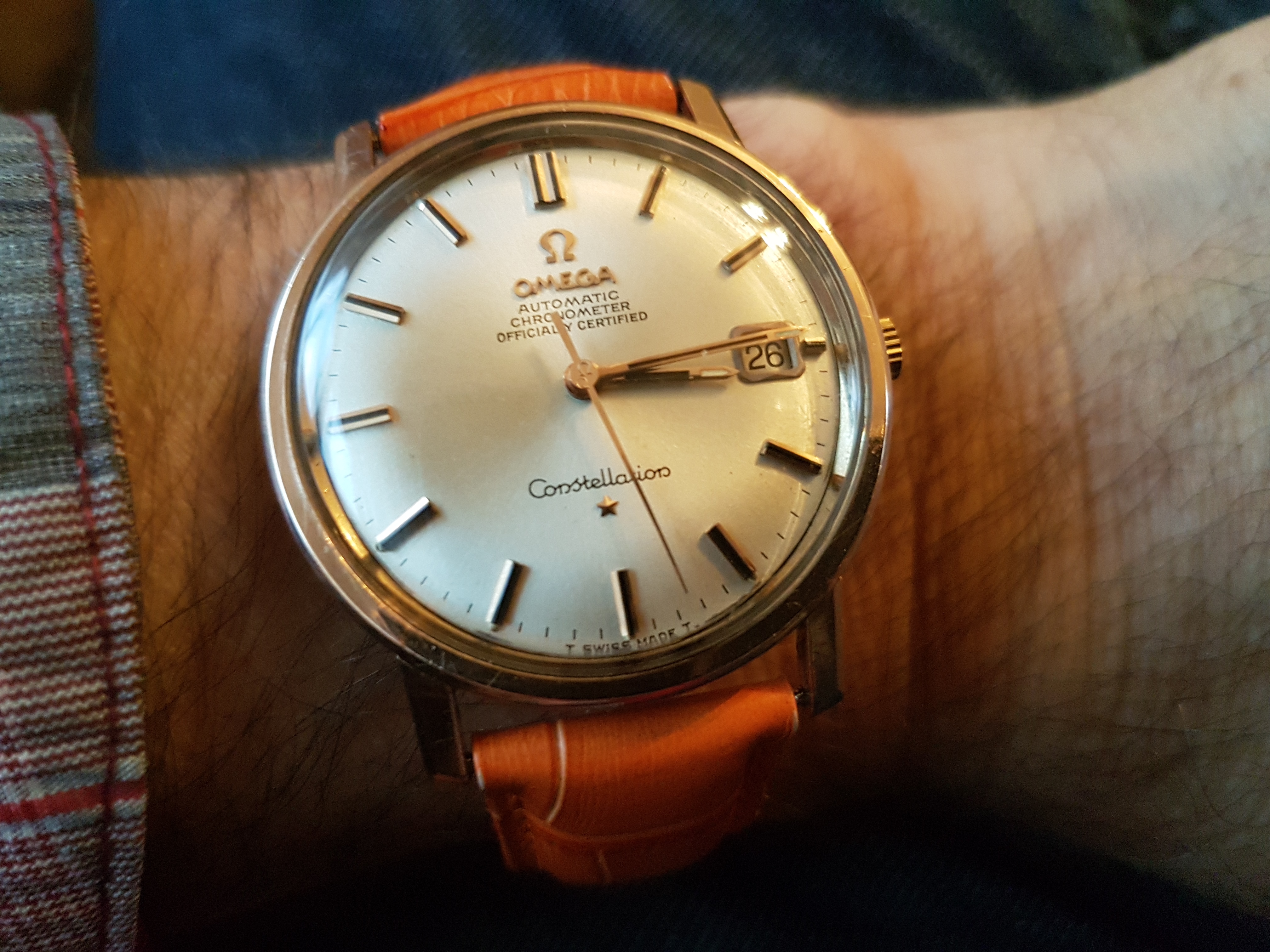 Another cocktails and eBay misadventure here: got this old Connie for $300 but the dial was a disaster. Though I know many will think it’s a sacrilege, I got her a facelift! As far as I know, the rest is all original. After a nice service, she runs like nobody’s business. Lots of compliments and the satisfaction of bringing something back that was left for dead! Lizard strap from Mansarea, recommended on OF.