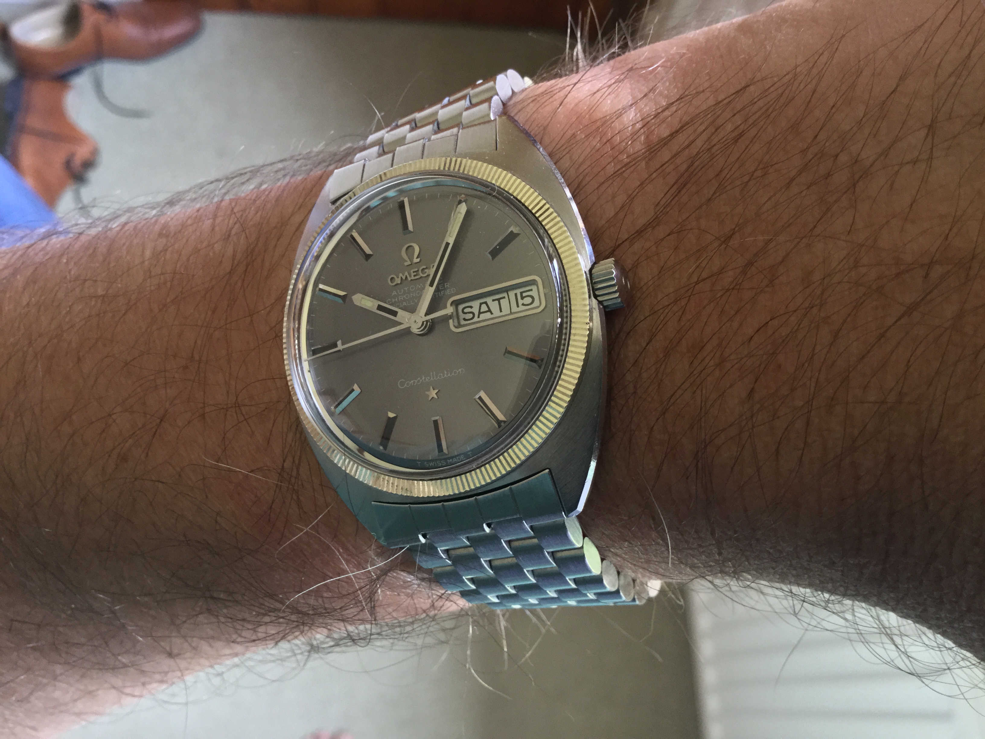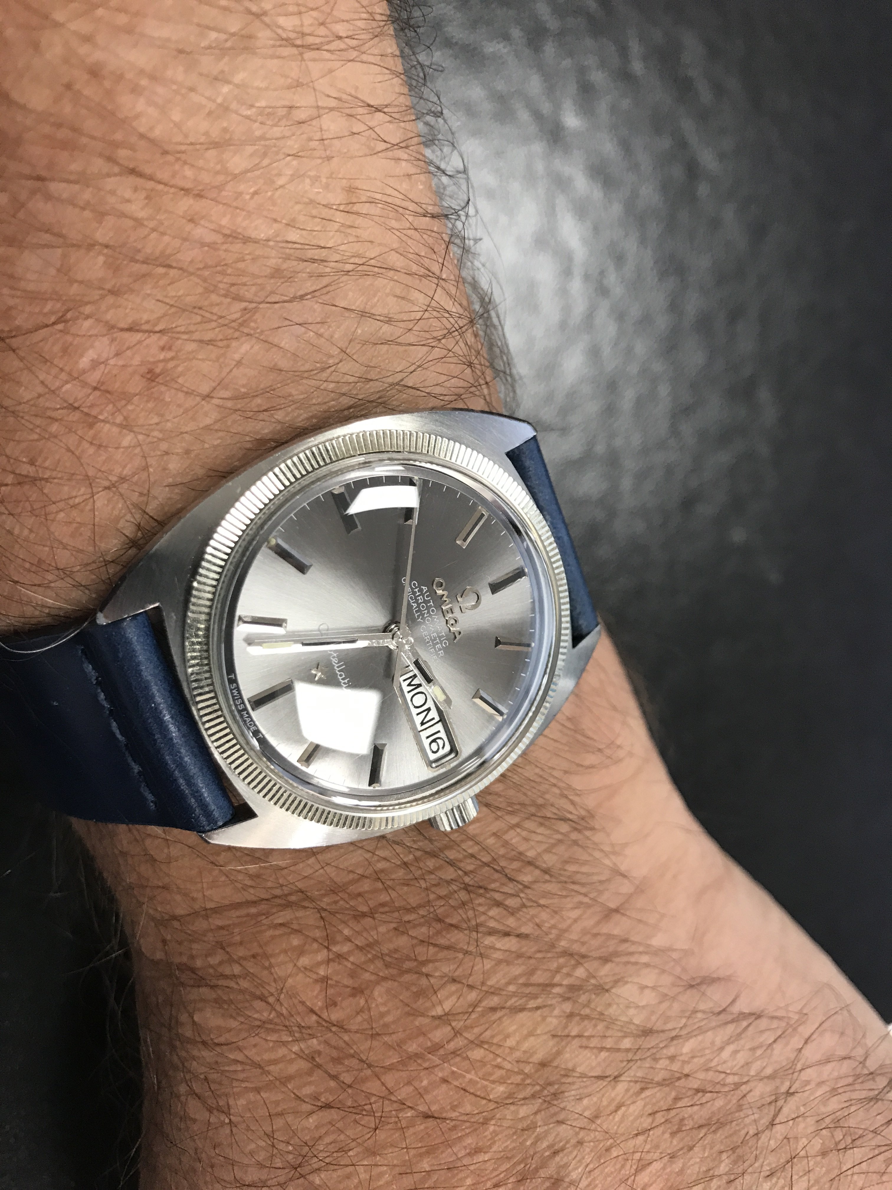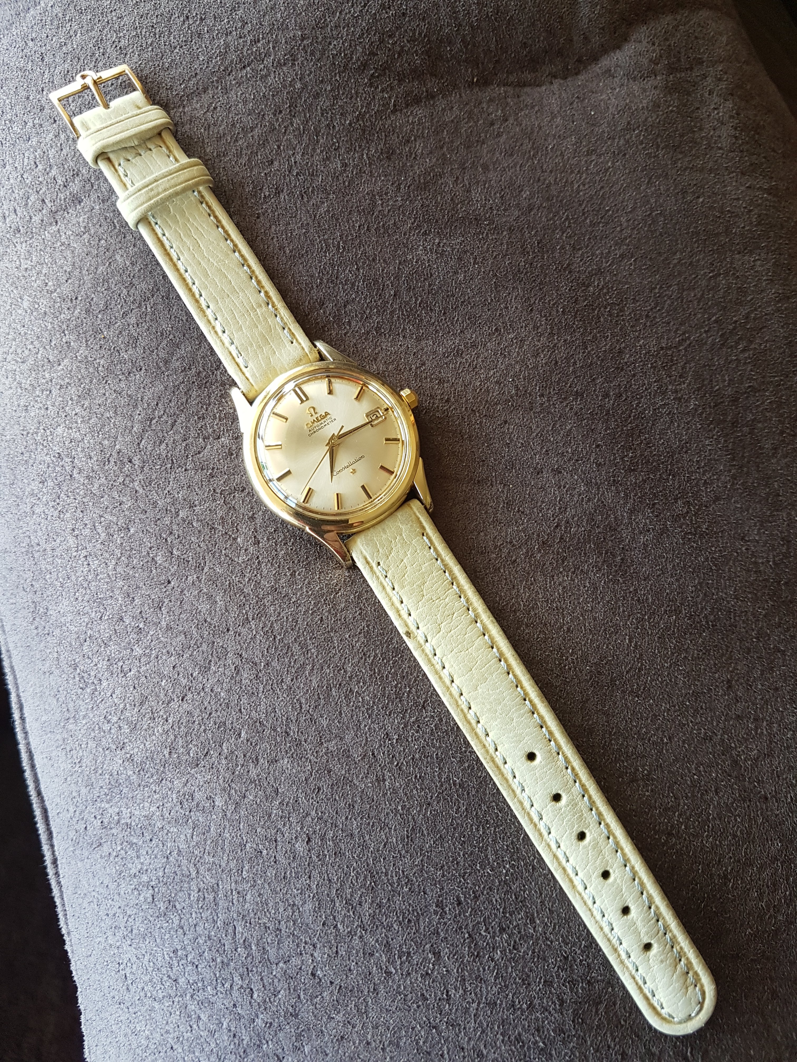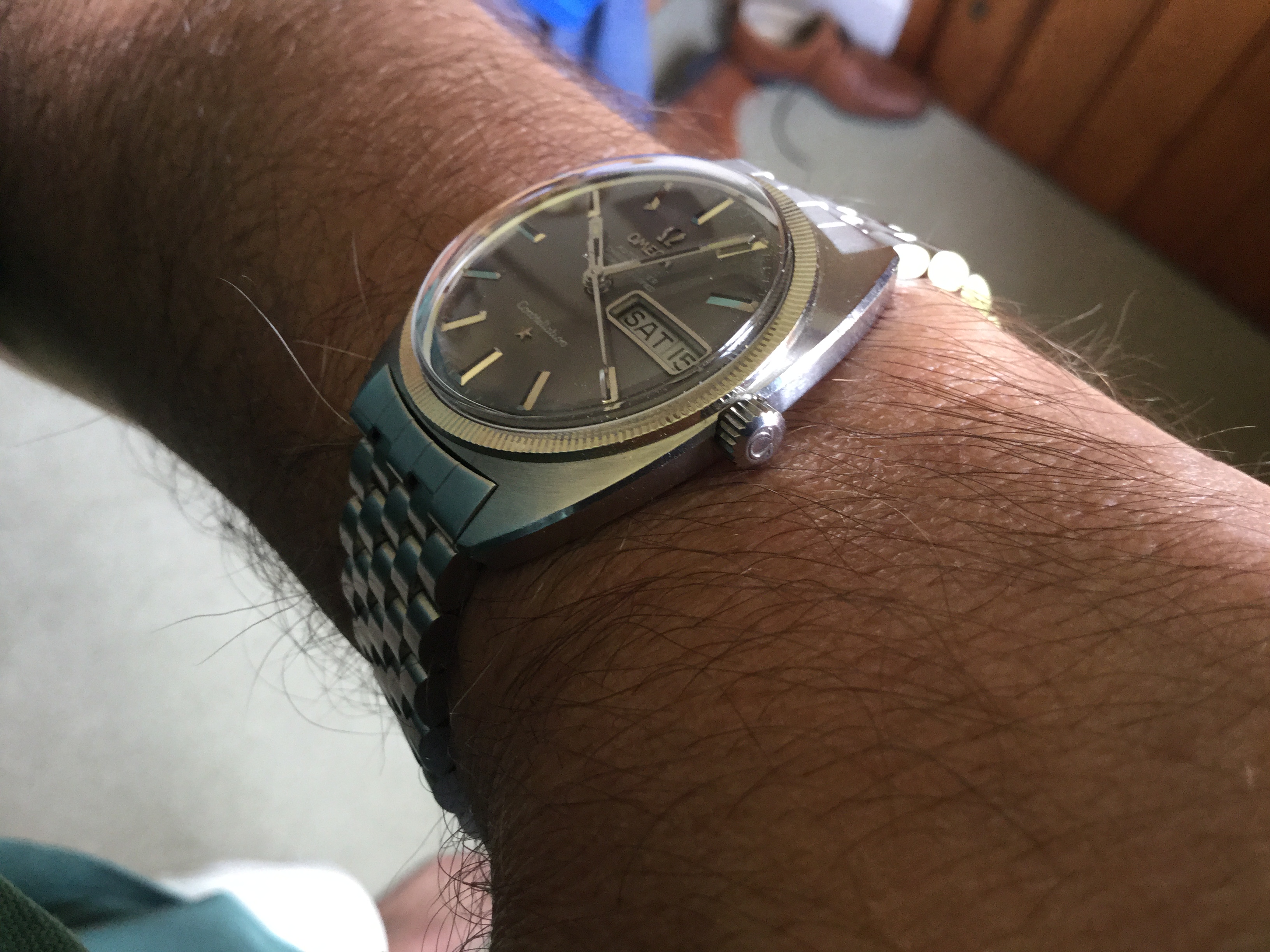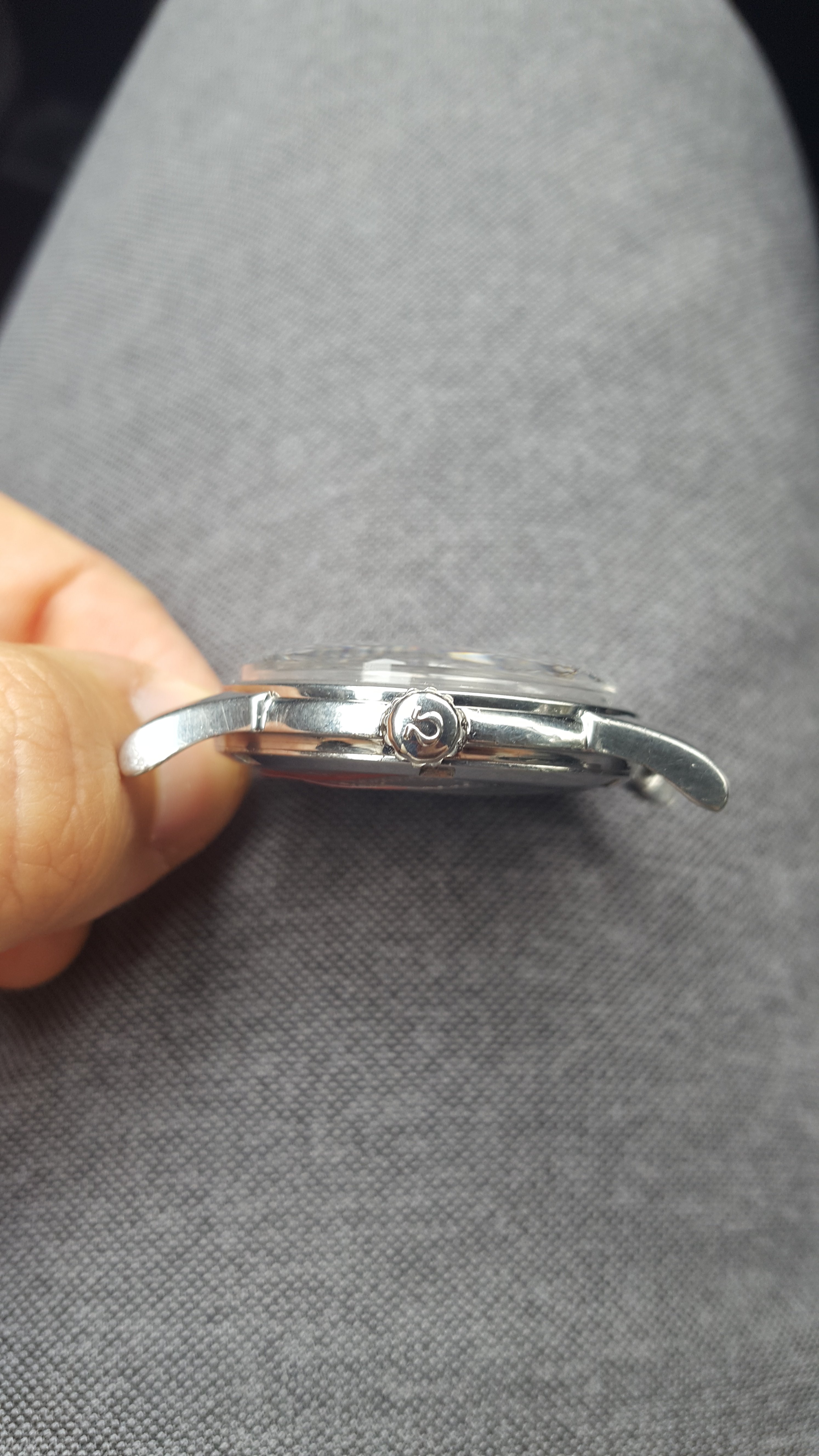 I literally had to cut off the bracelet as the springs were impossible to get through from the end links. Good riddance. Next started my hunt for an original, period correct crown. After a bit, I located one and off to my watchmaker it went. Had an OEM Omega crystal fitted as well and here is the watch now:
