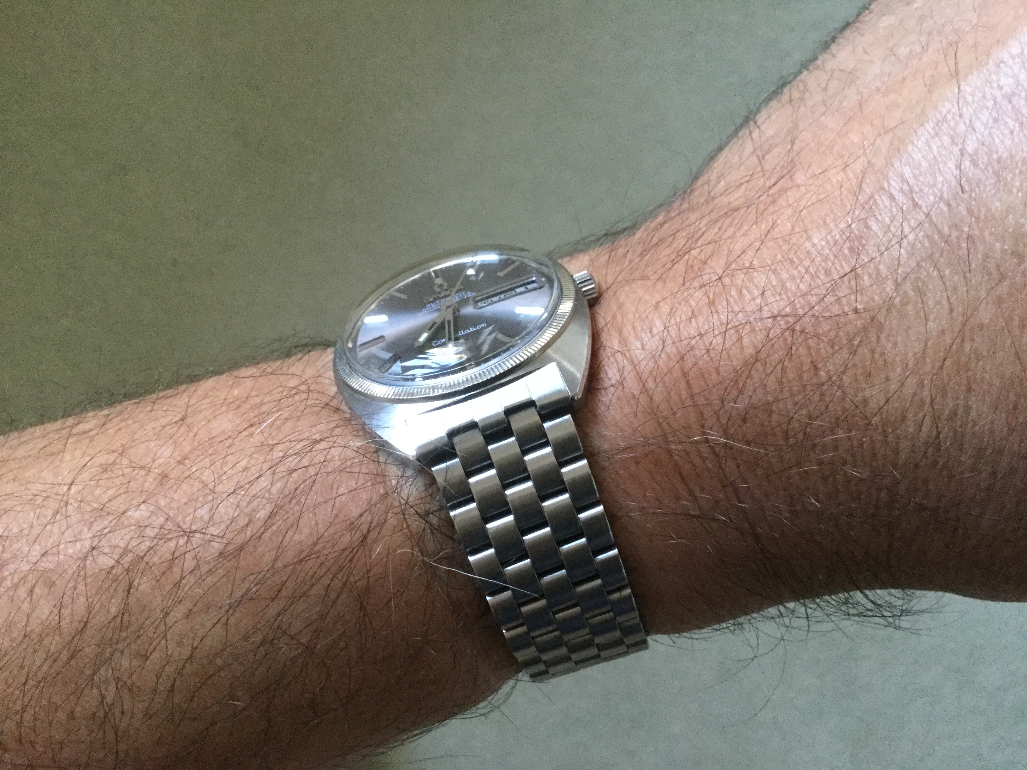 After some unpleasant experiences with supposedly reputable dealers, to brighten up my week, I’m wearing my first vintage watch which I bought from an excellent dealer and to remind myself that there are good dealers around still.