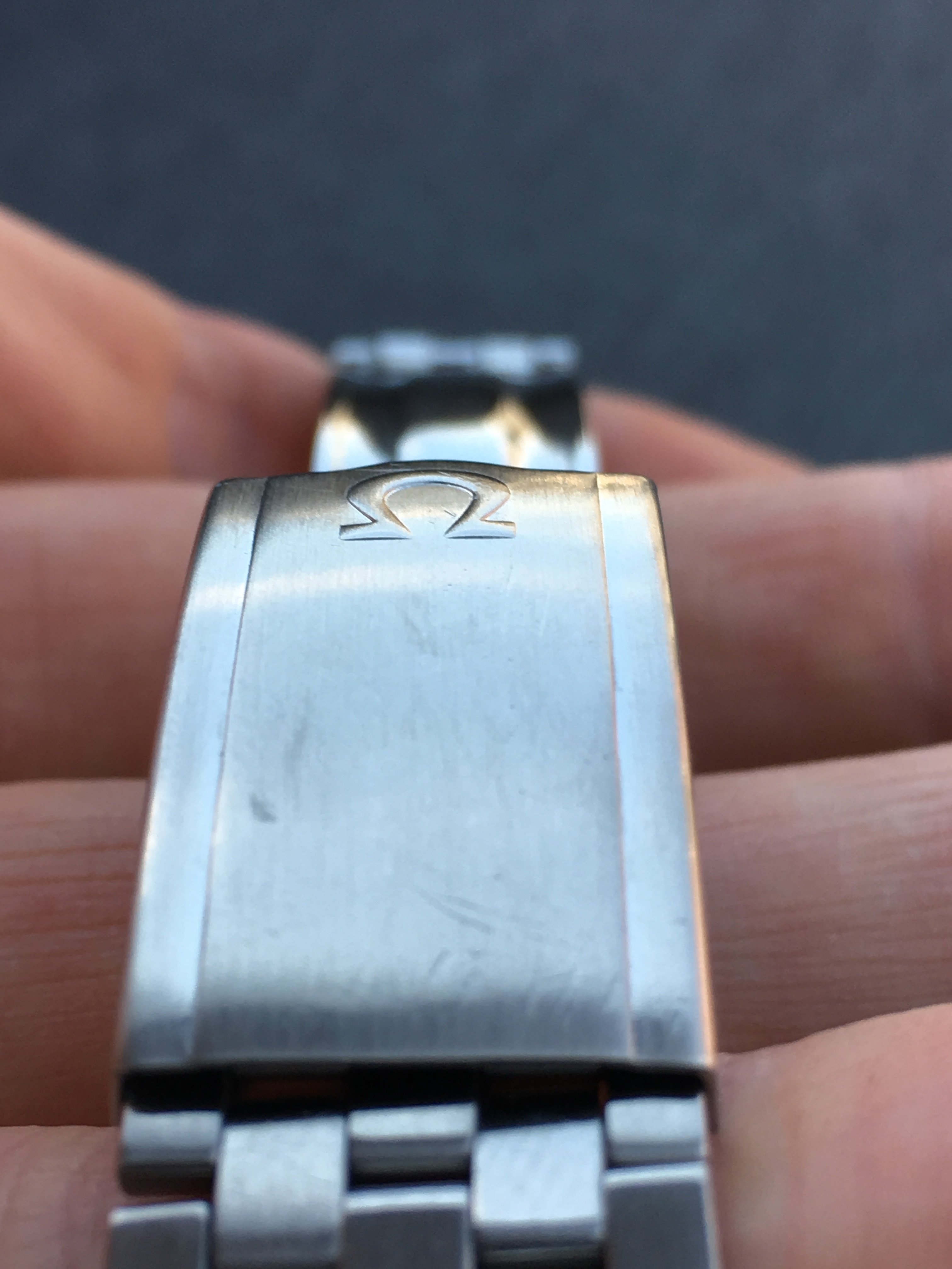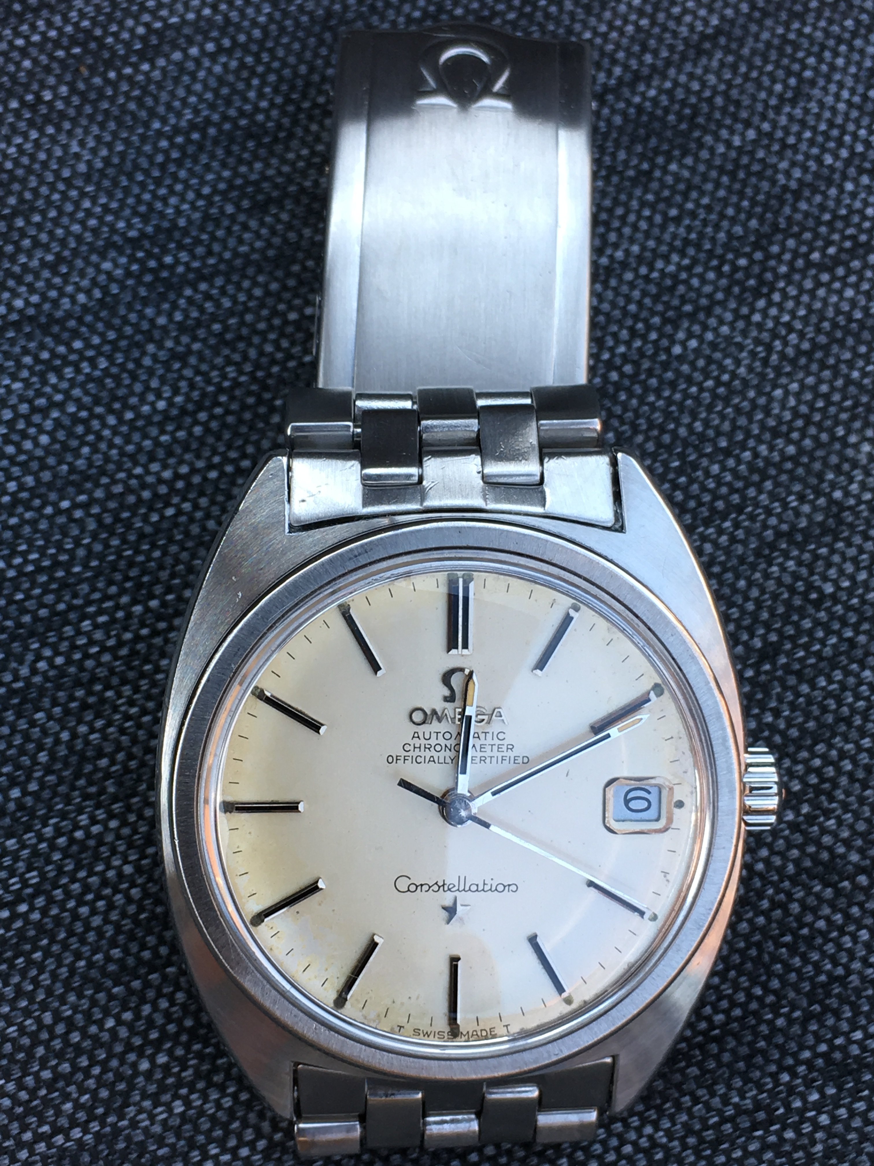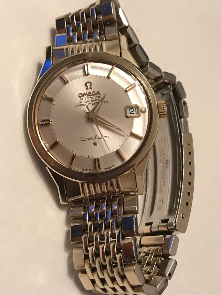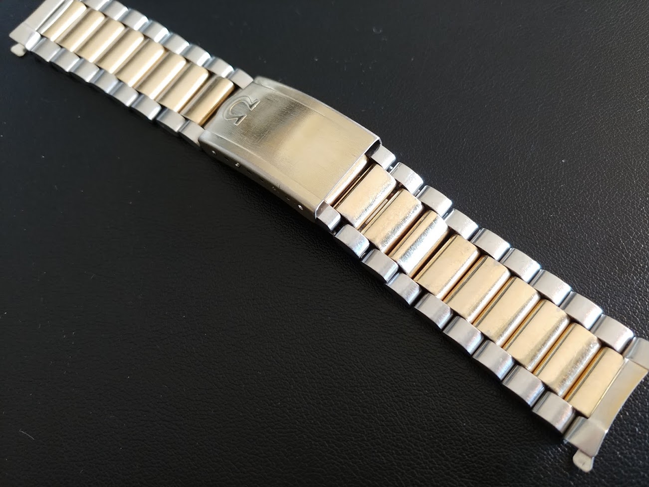 It initially was sold to me with a different bracelet which had gold plated center links. But I can't really identify it. It is signed Omega, doesn't have a part number on the clasp, and has "77" stamped on the endlinks. I know most Constellations from this era came from Omega with leather straps. But the person who sold this to me said that his grandfather purchased it with a bracelet. I have since replaced it with a 1040 bracelet, which I bought here on OF. Here it is.