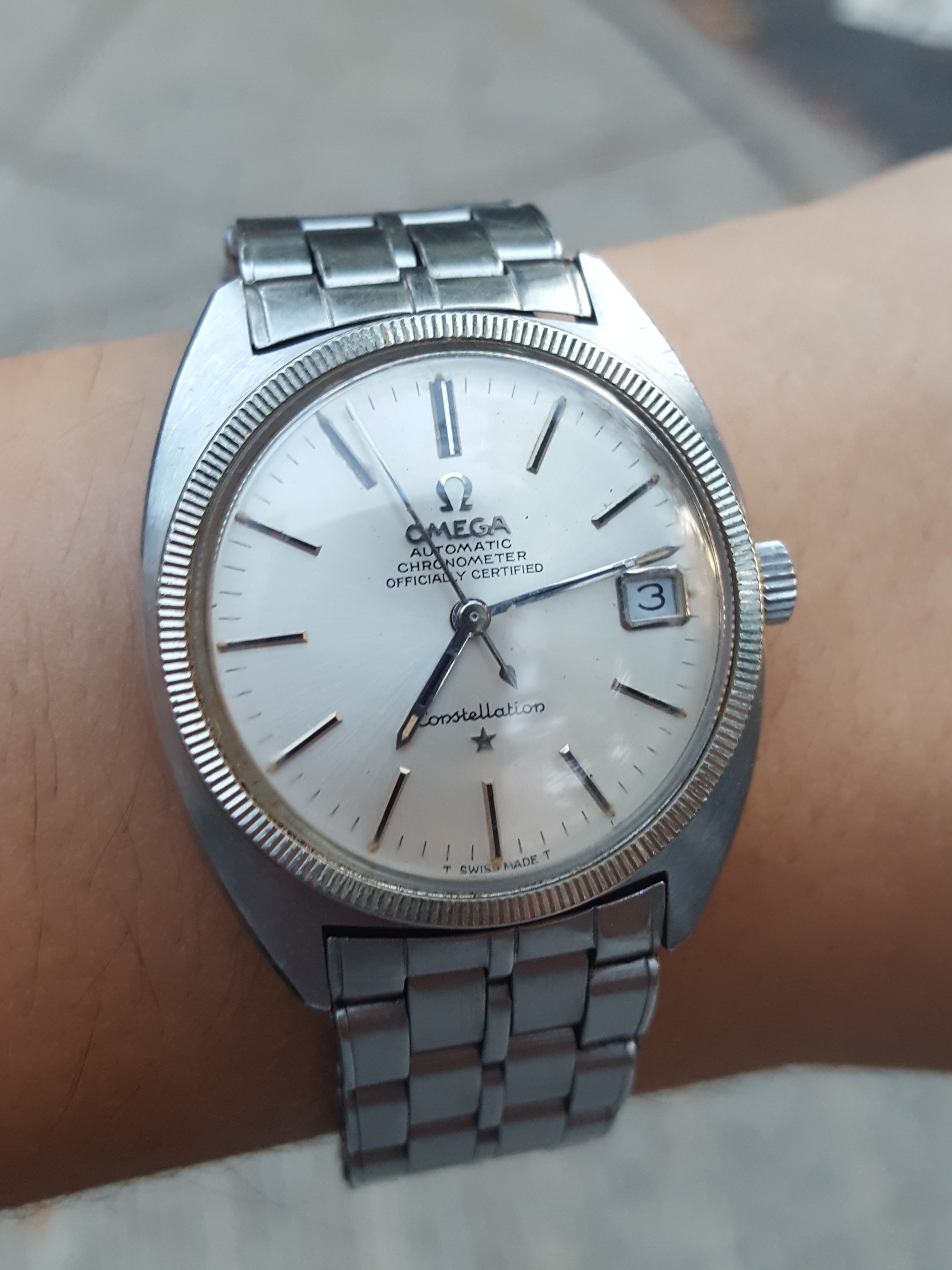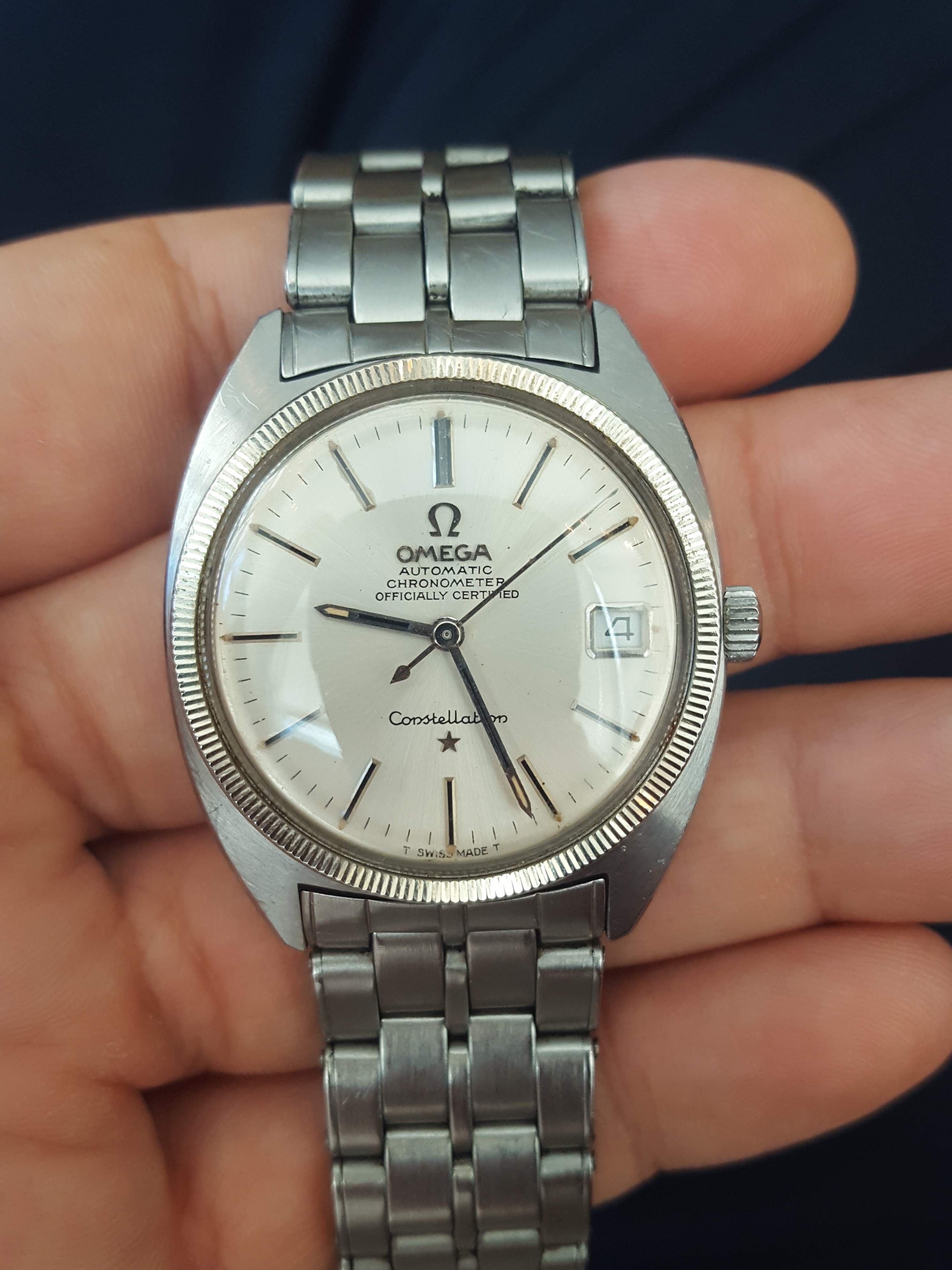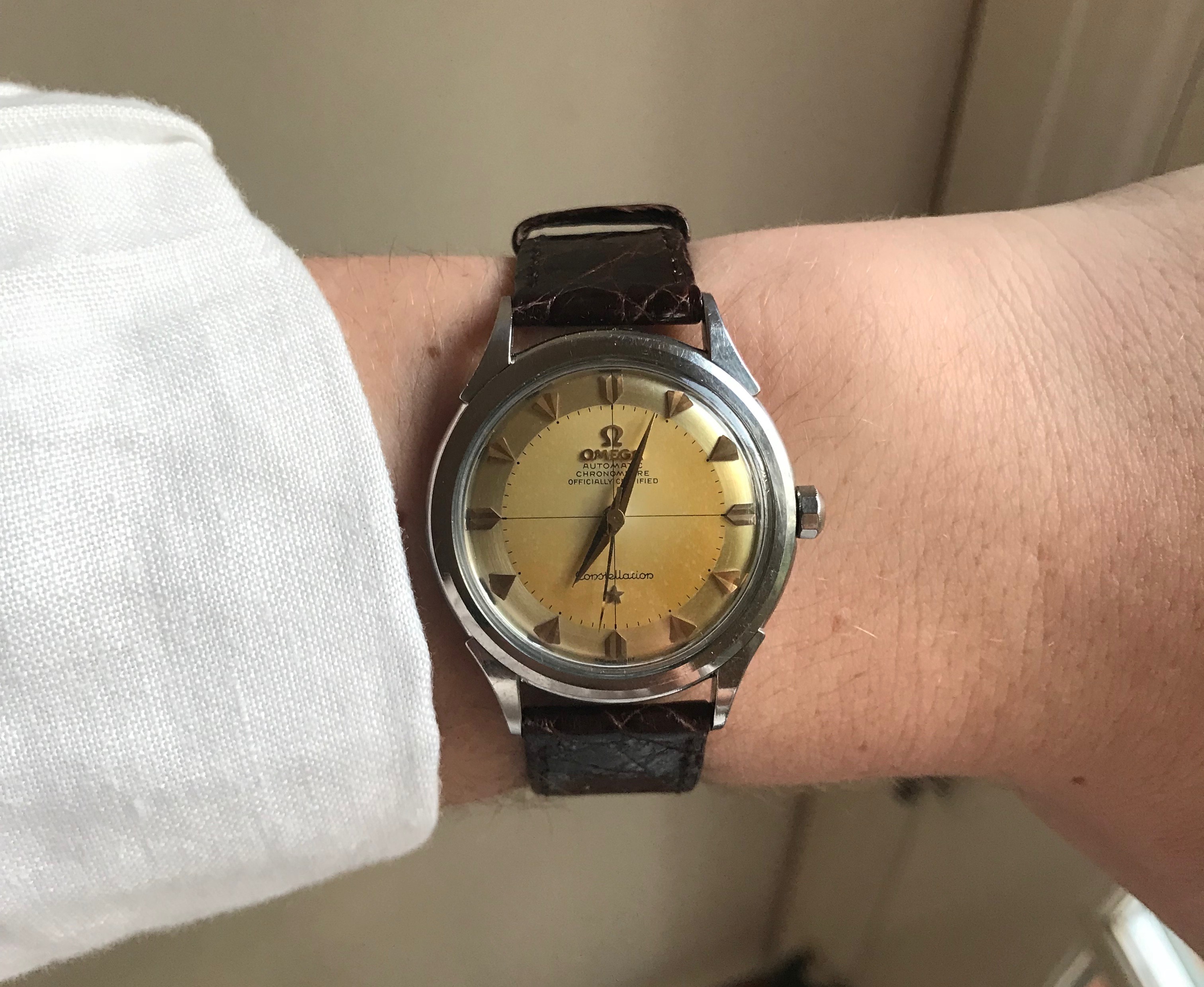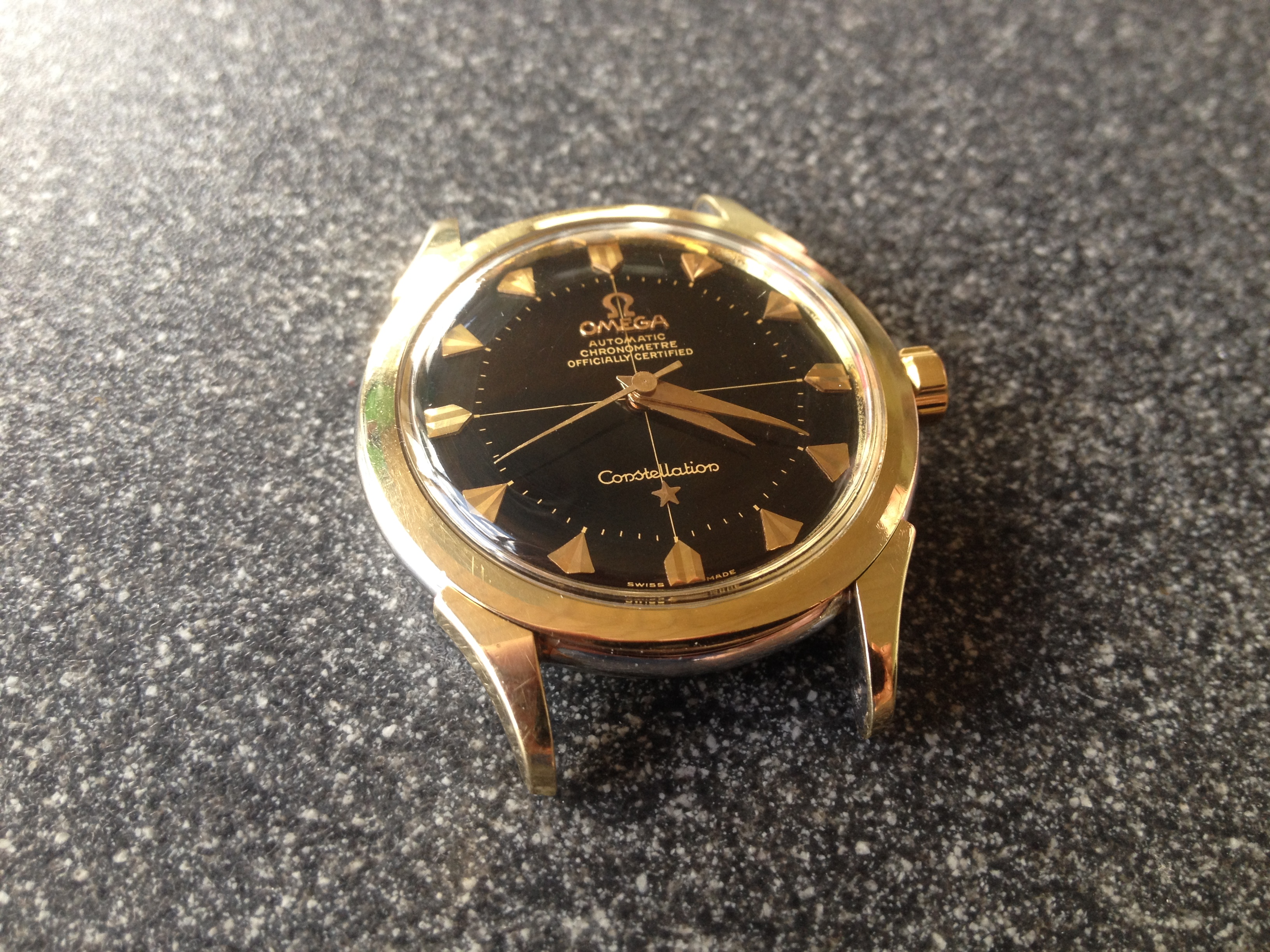 I can't say much based on that picture except that it looks like a 1950's Constellation. Is it a snap or screw back? The dial has been redone and it has the applied "Omega" which would make me more likely to suspect a gold capped ref 2852 from around 1957/58