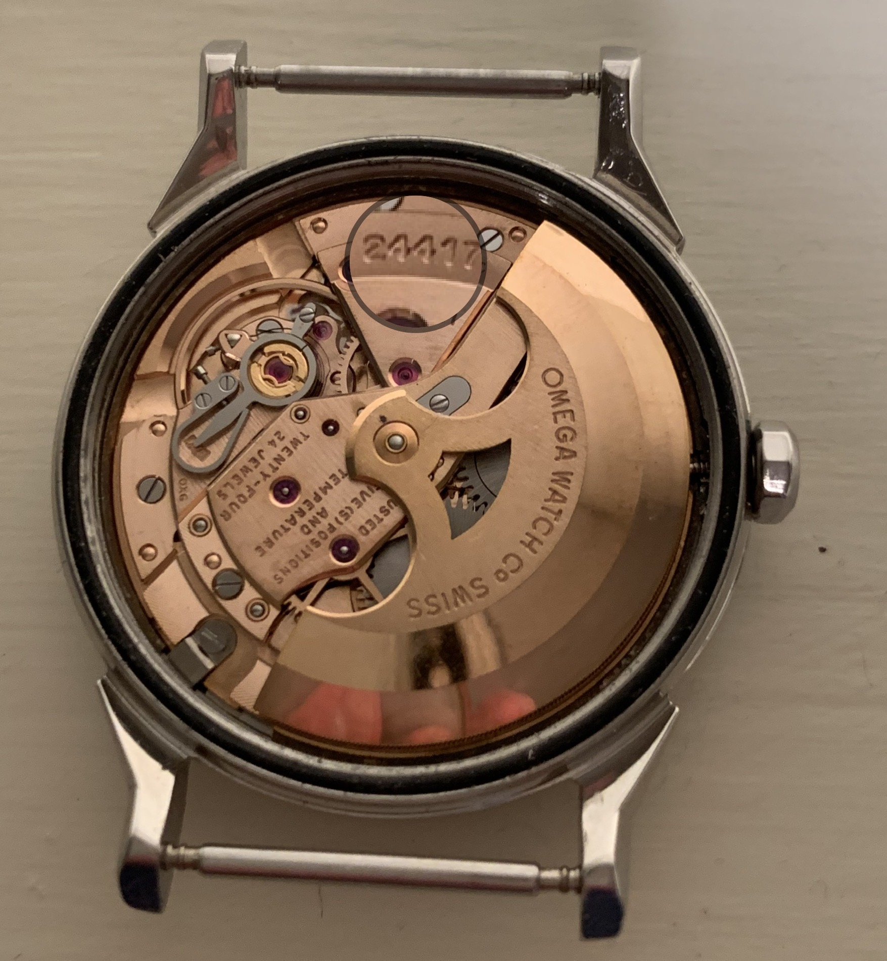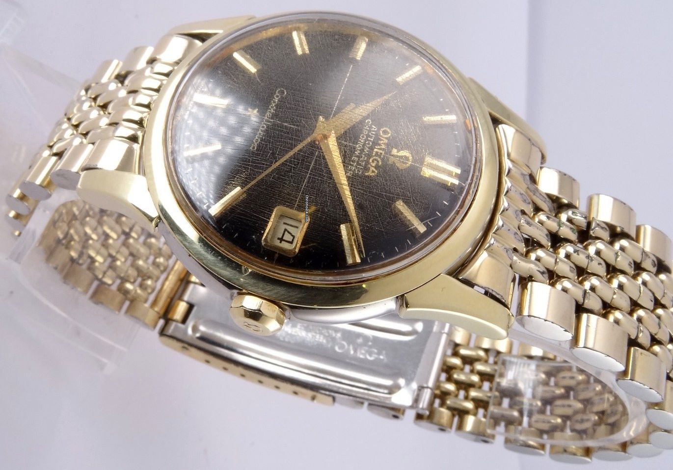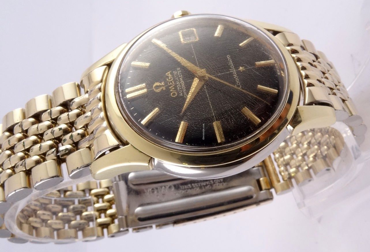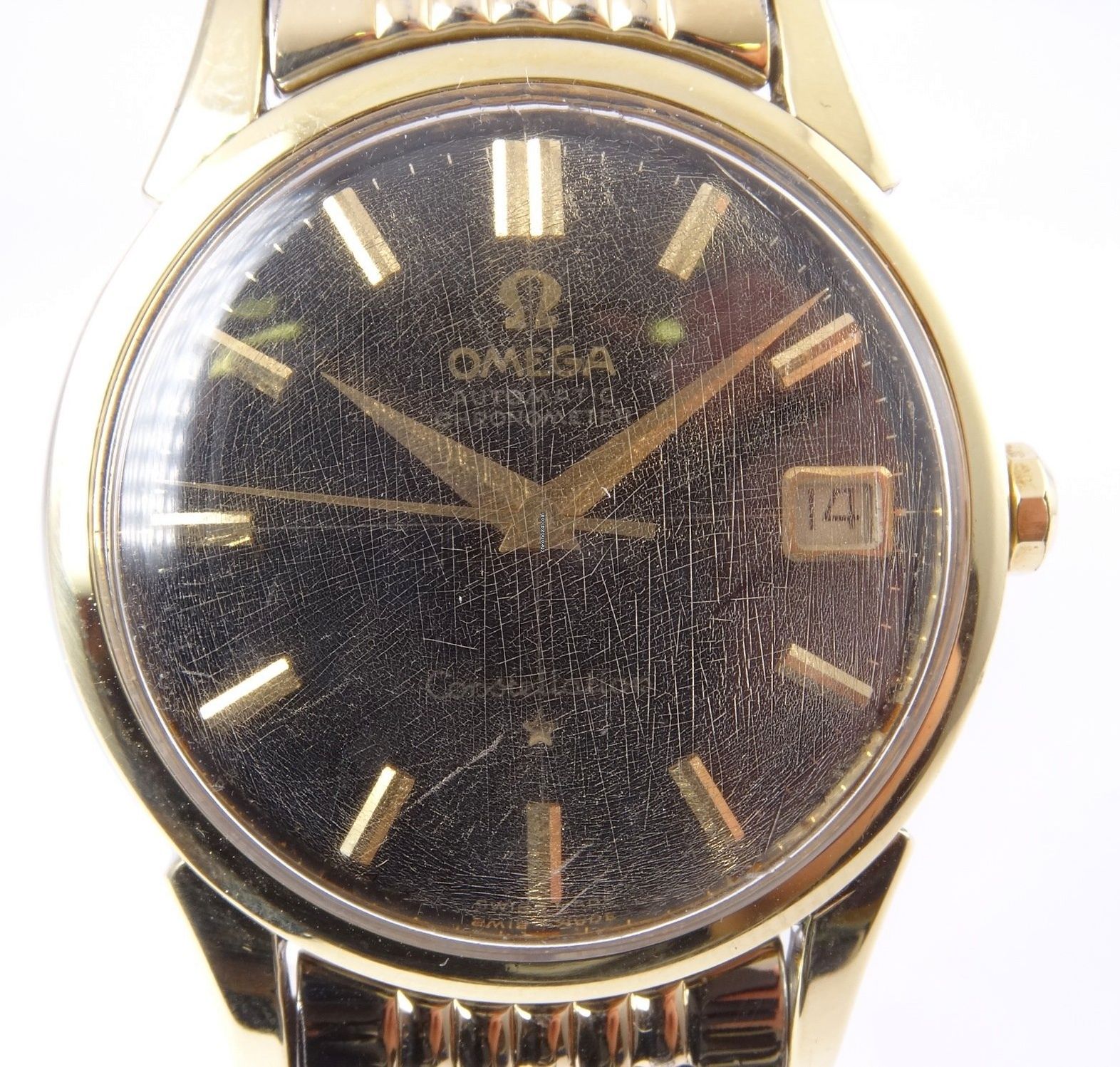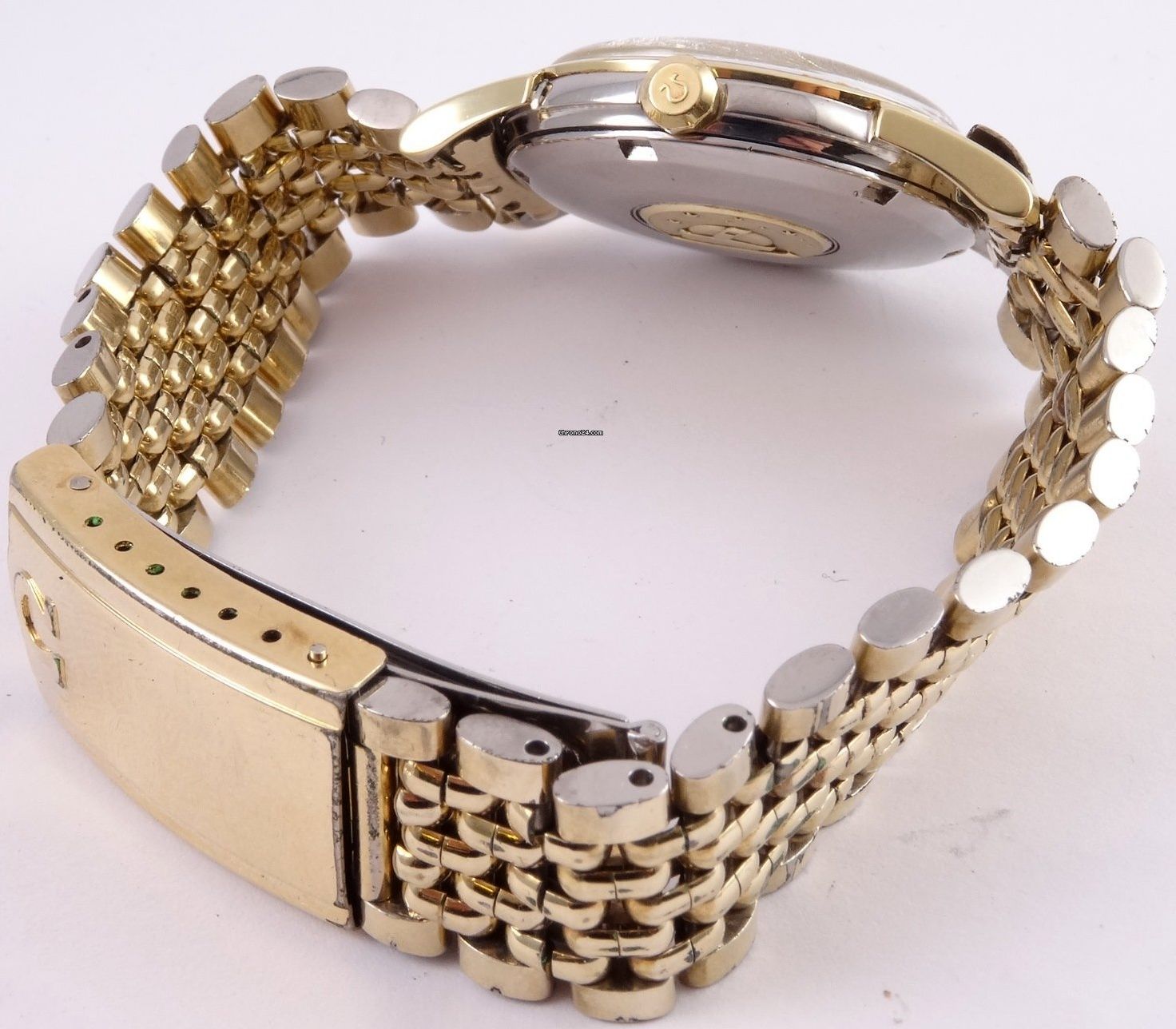 ·I bought this in 2002 off ebay from a shop in Melbourne (Watchco, I think). It is a 168.018 gold capped model (looks to be unpolished) originally purchased in Singapore 1968 (a duty free purchase no doubt). I had it serviced and it came back with the correct hands, band (cross hatched leather as in catalogue pictures) and crown. A couple of the hour markers dropped off during use (you can see one varnish flake at the 10 o'clock marker because of this), but all seems to be in a stable condition now. I do love it and wear it occasionally, but 35mm feels a little small now.
