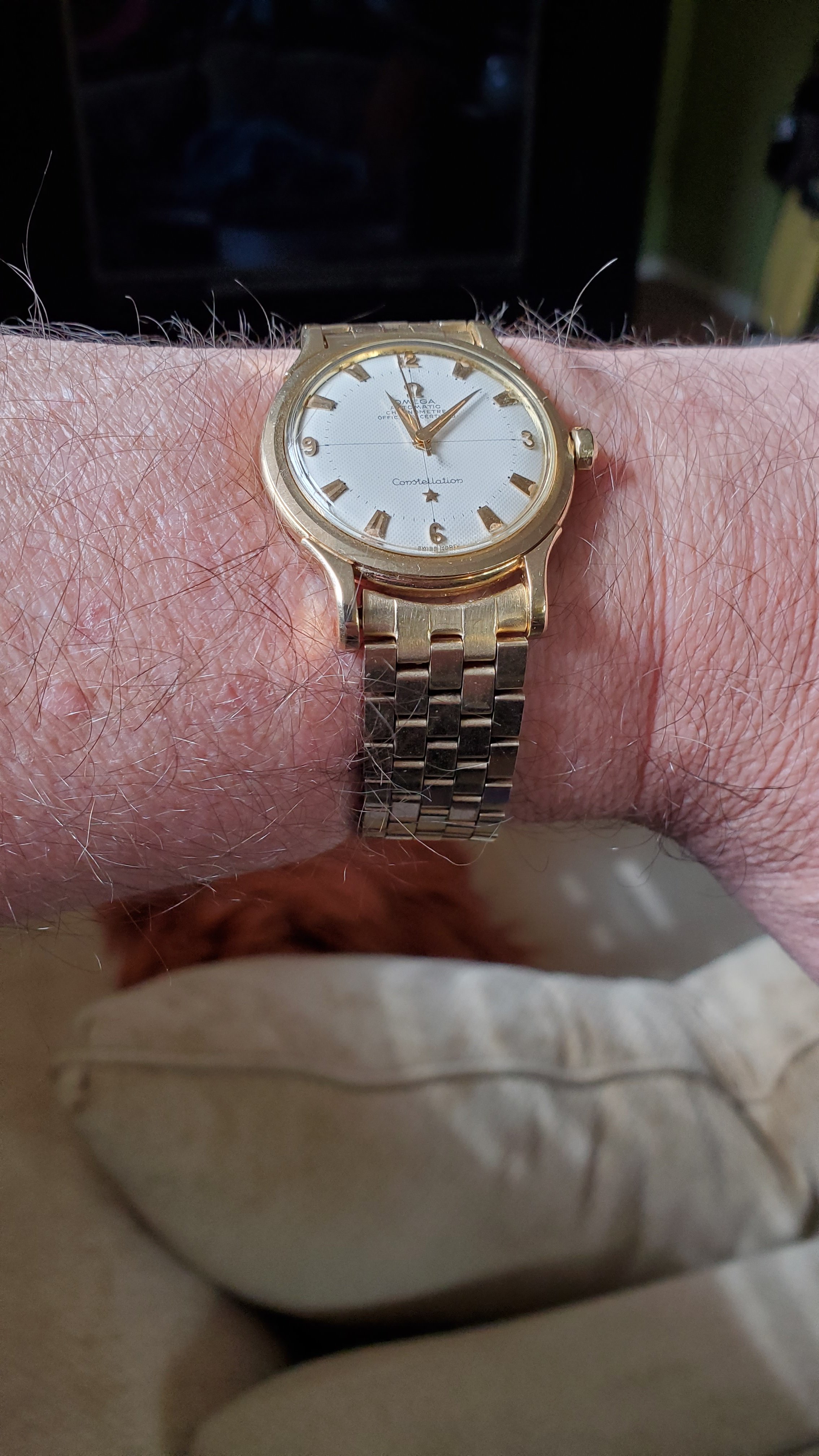 Posts 37 Likes 69 lonegunm4n ·Apr 12, 2023 My mid-70s Constellation. I am probably going to send it in for servicing, it loses about 2 to 3 minutes over the course of a day. I also need to replace the cheap pleather strap on it as well, but I am going to enjoy it for a bit first.