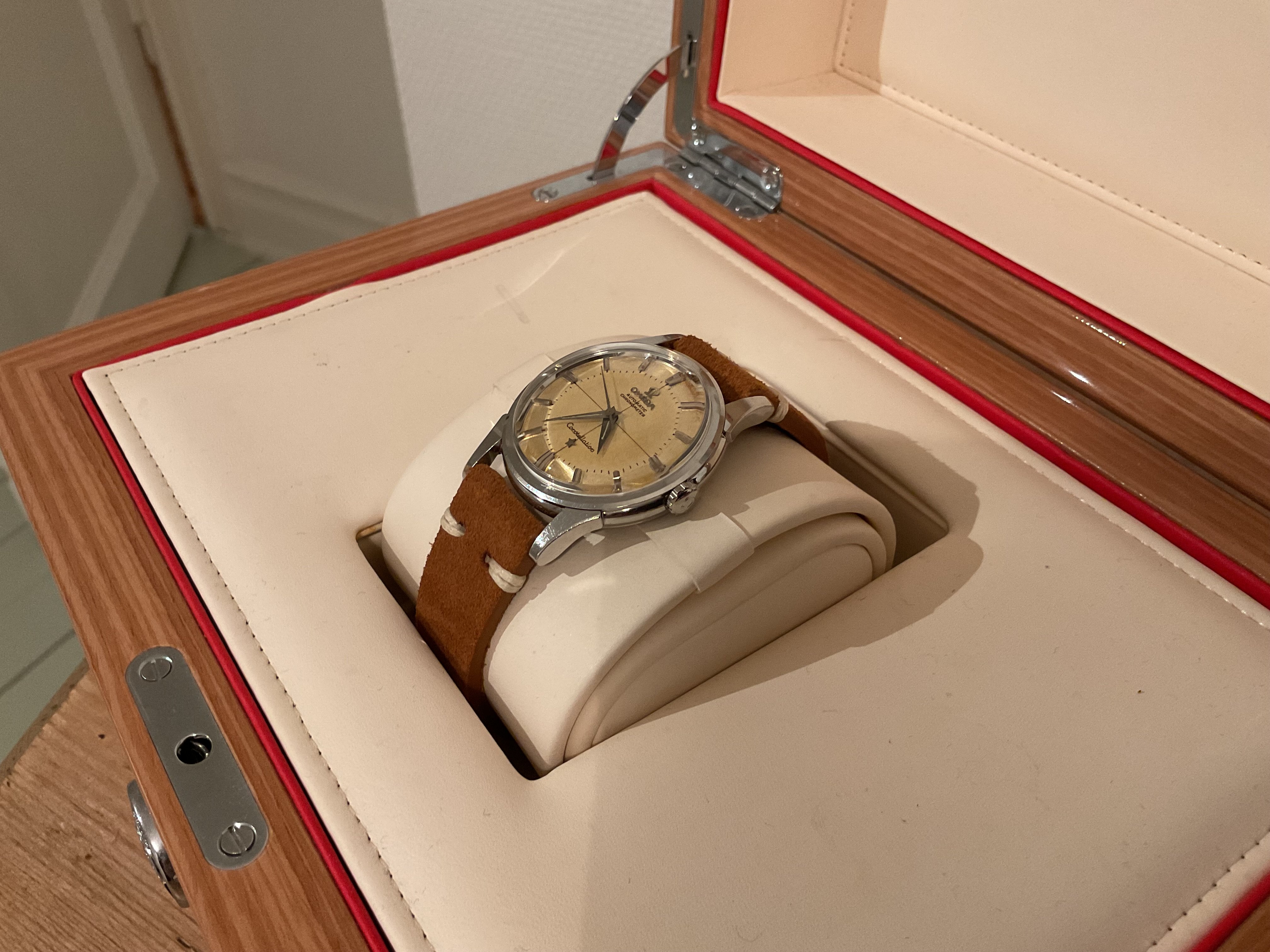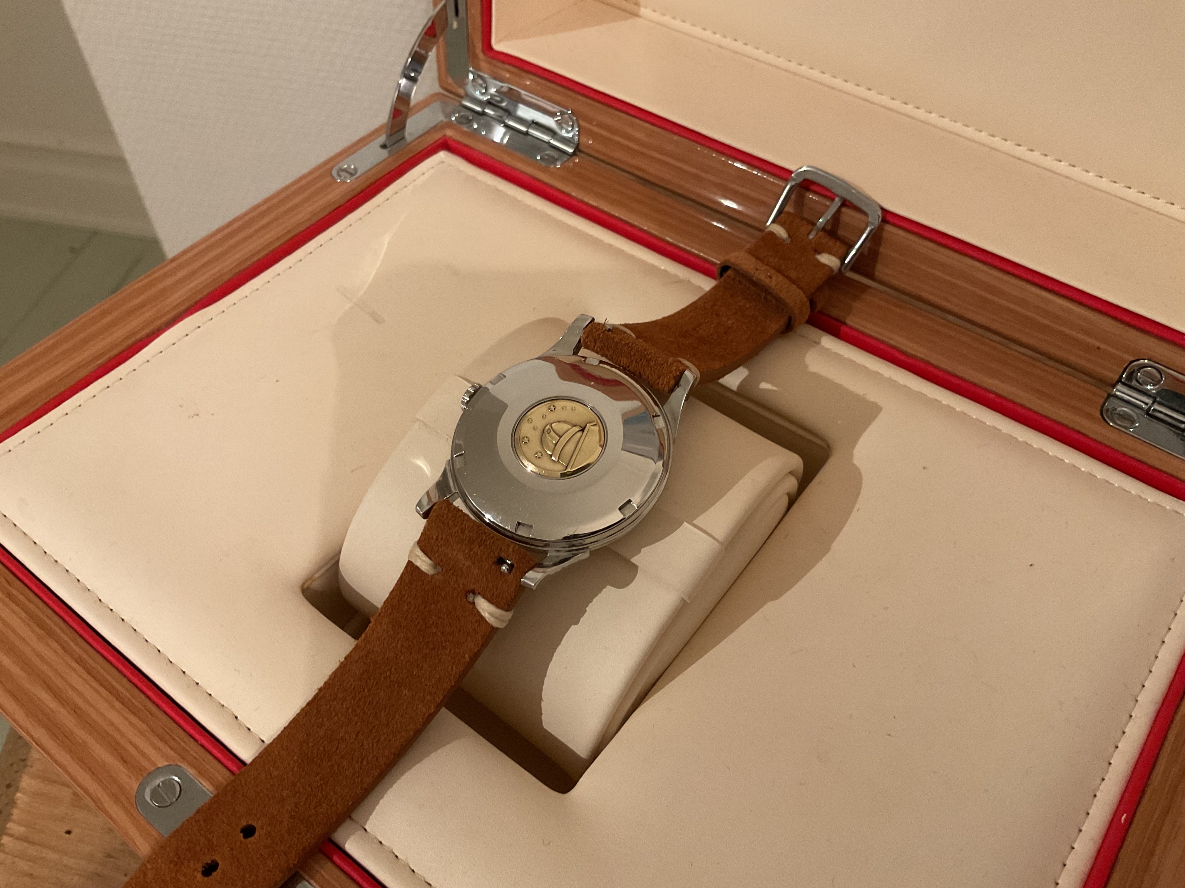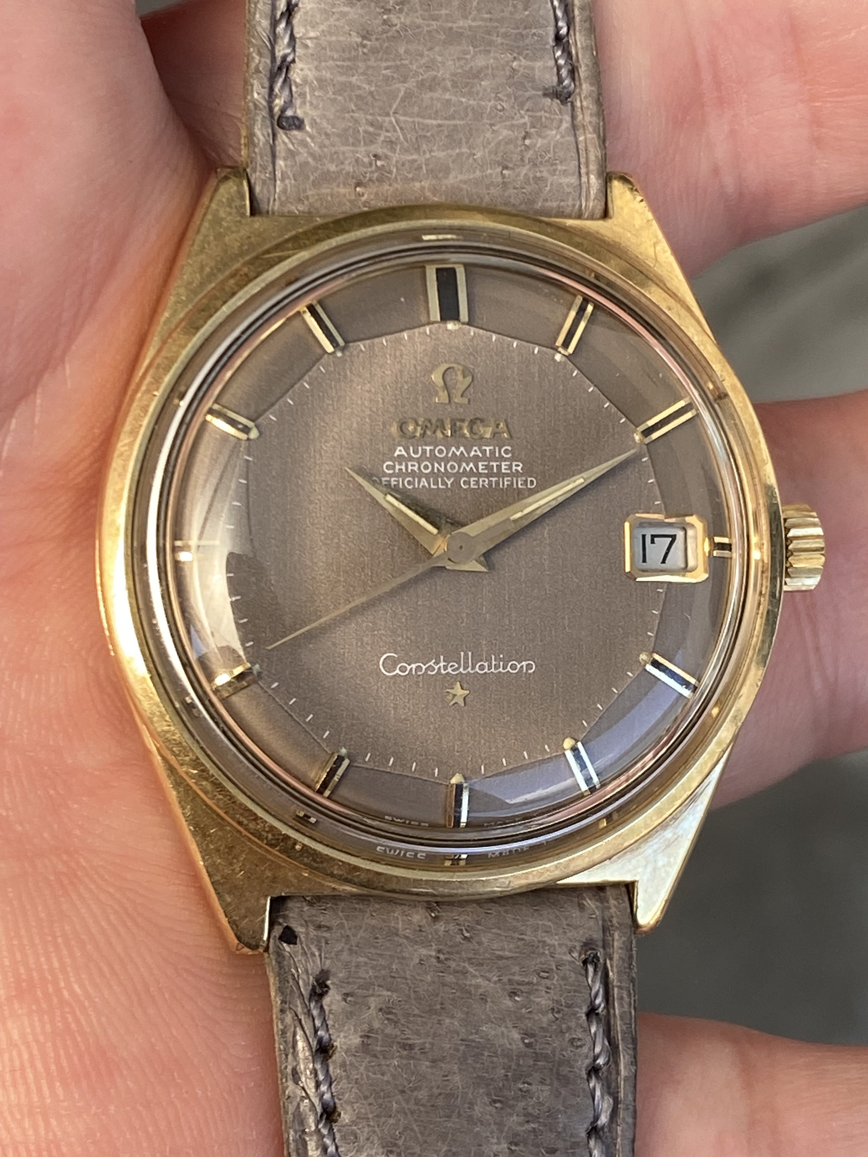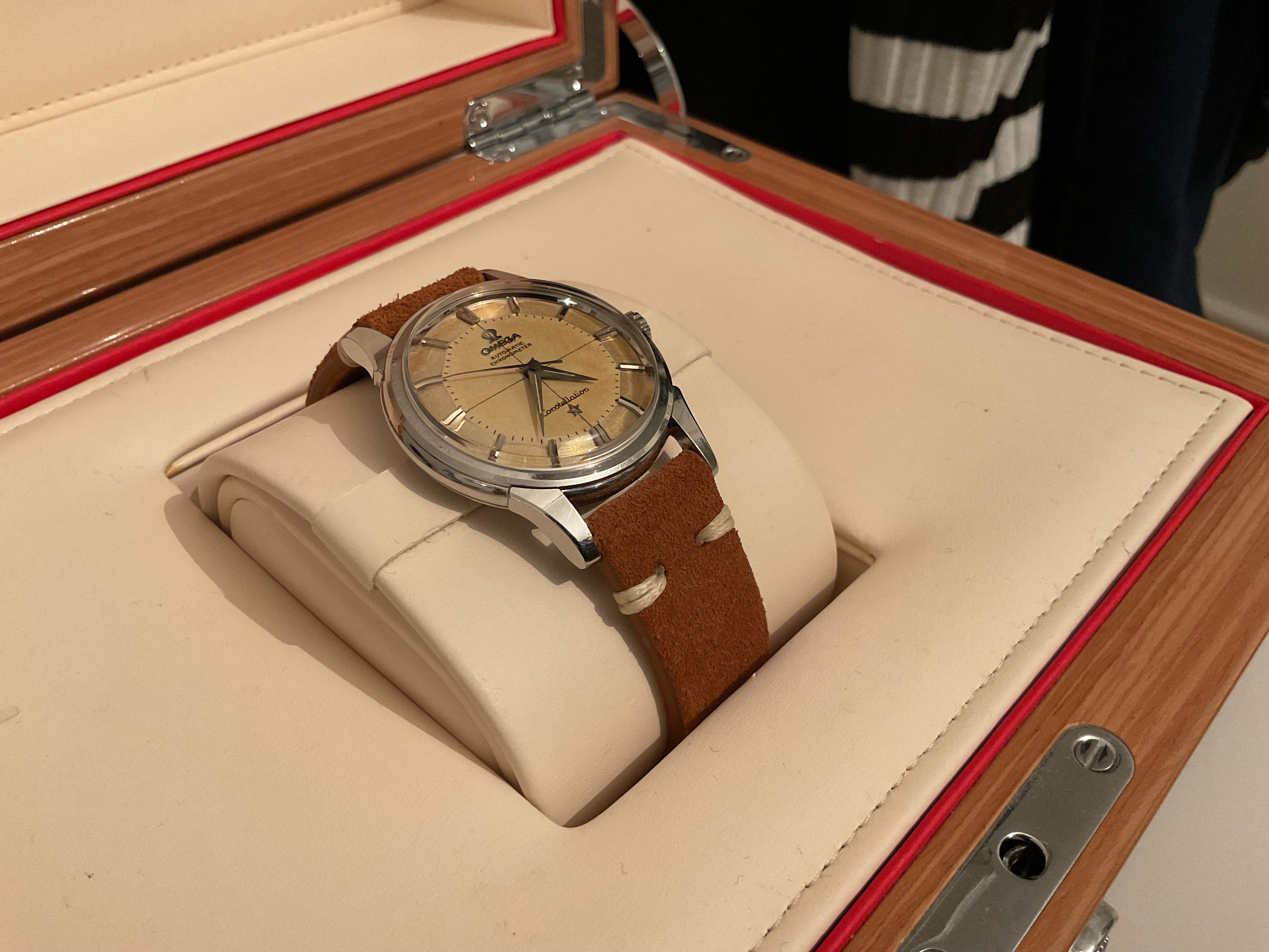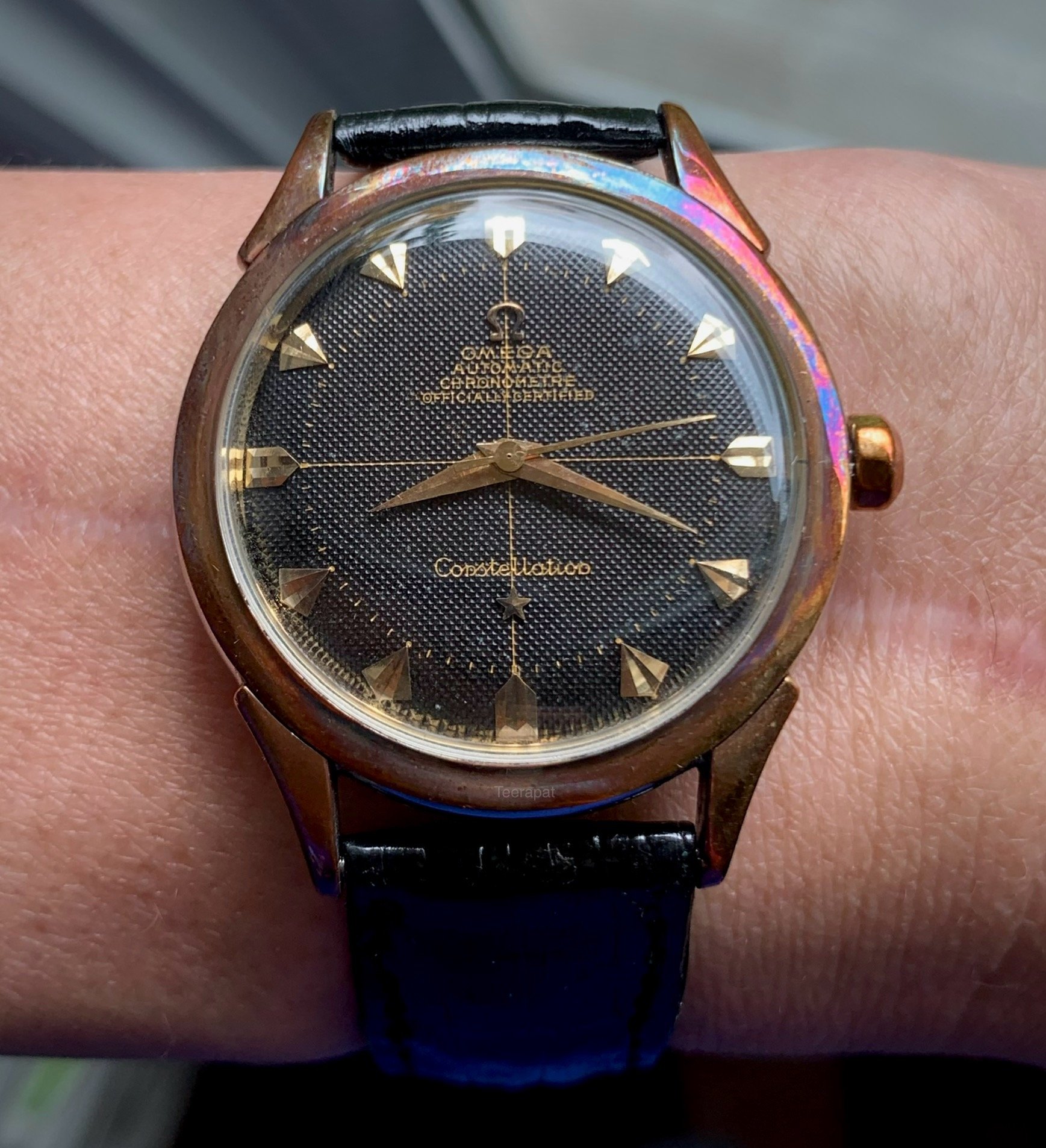 (The pie pan dial first appeared in lyre lug cases in the 50s)