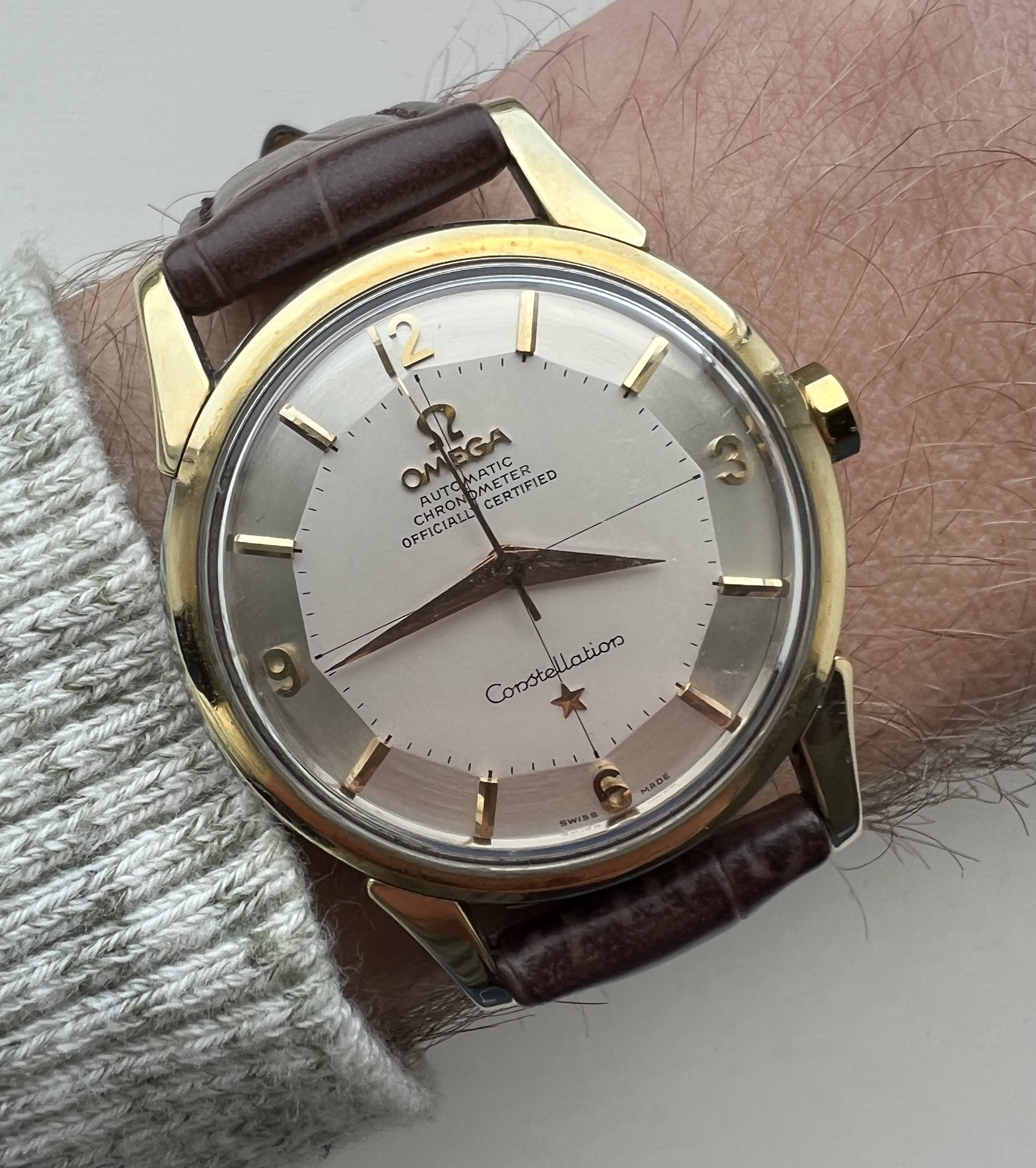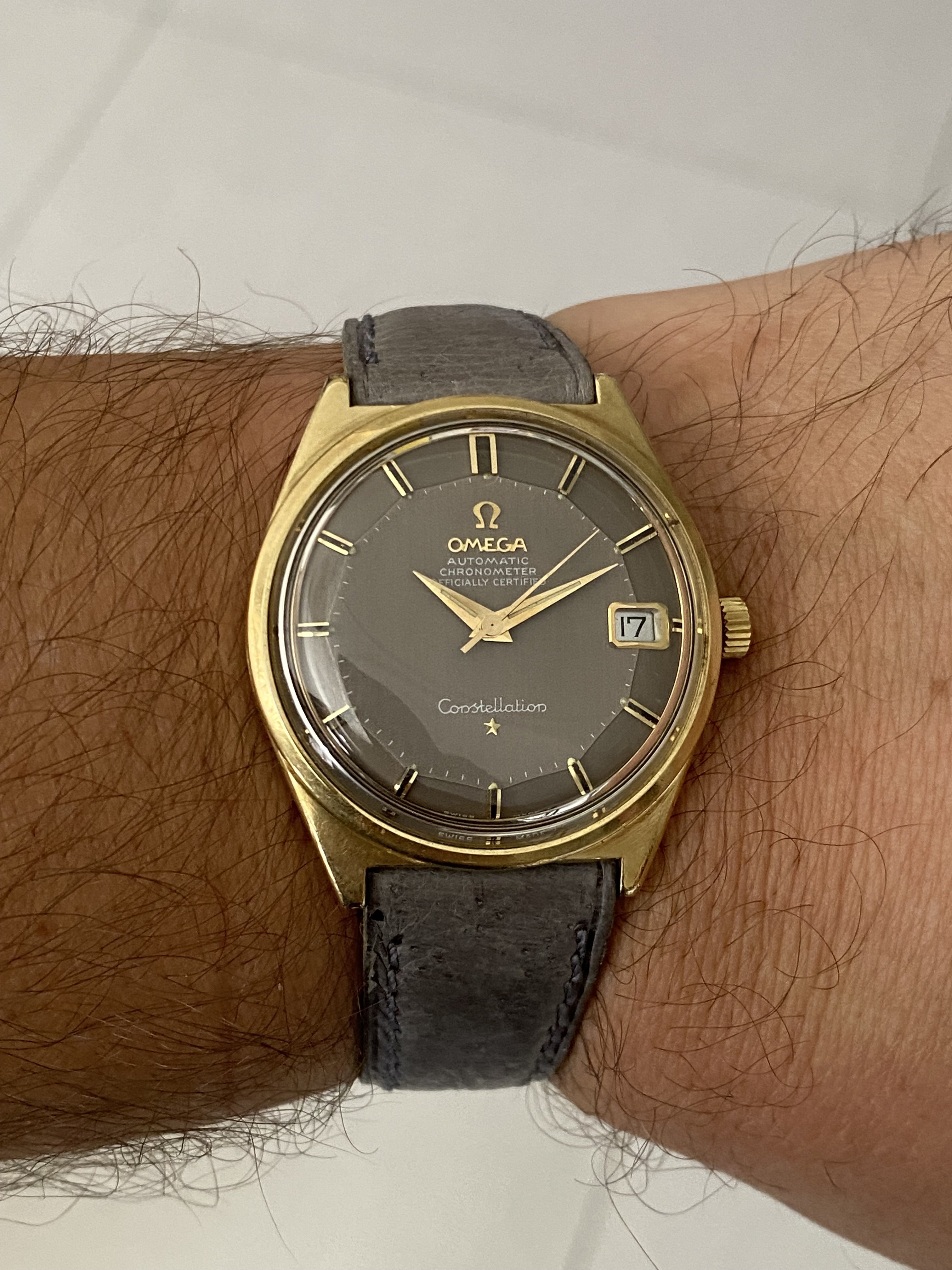 If you like this style, you could also try the very similar 168.010, which due to the wider lug spacing wears slightly larger than even the .004 (and they also come with pie pan dials)