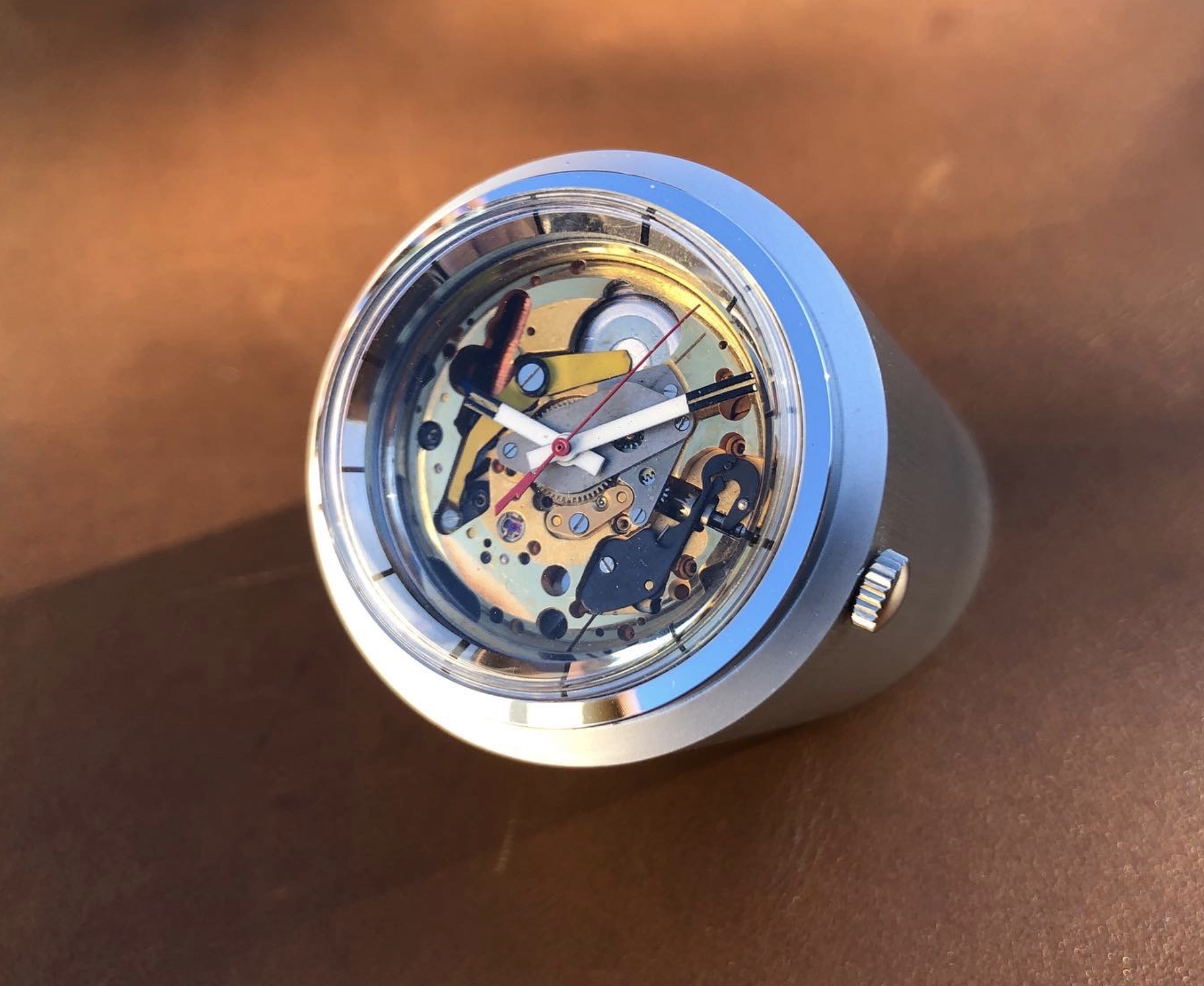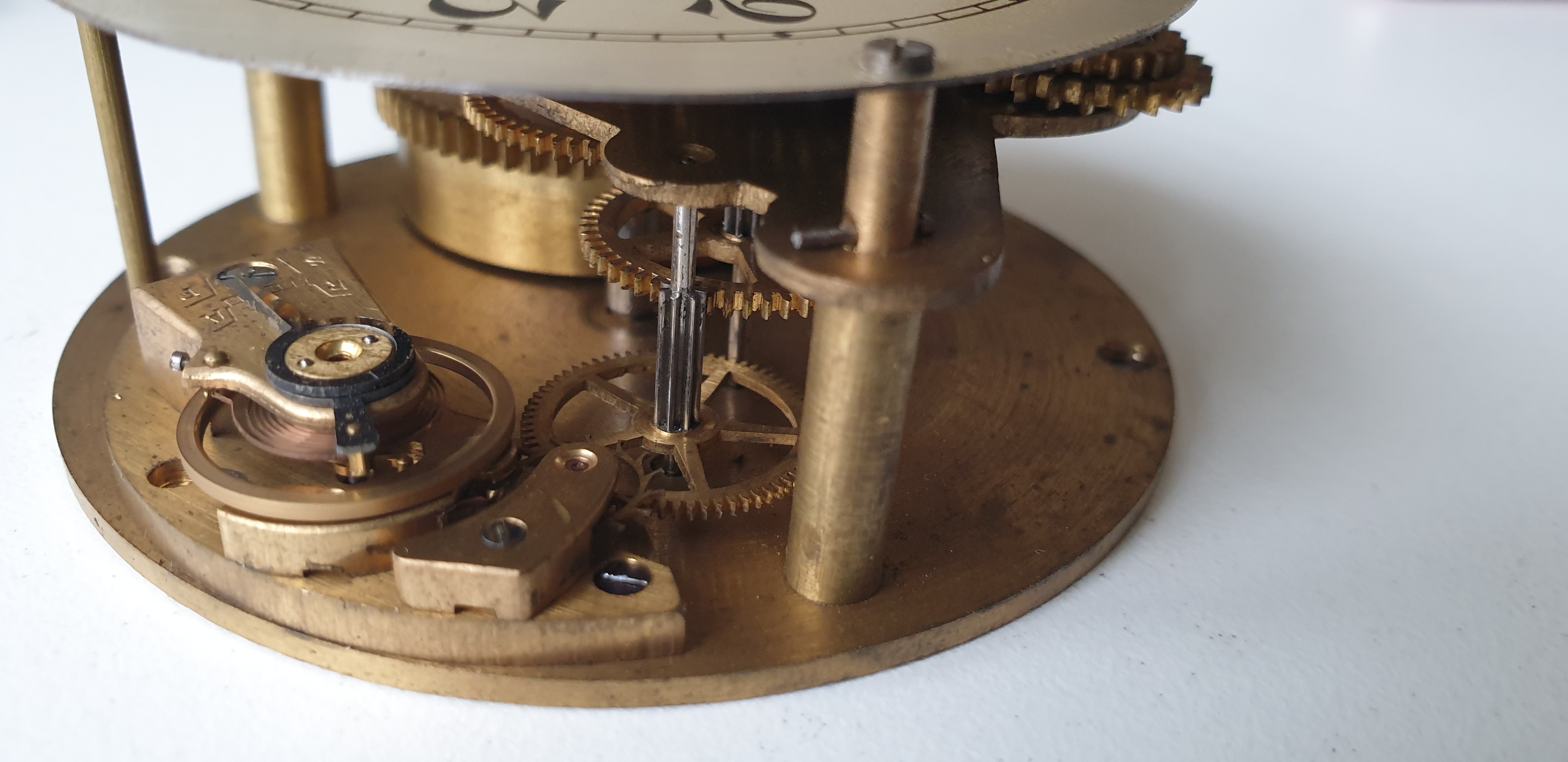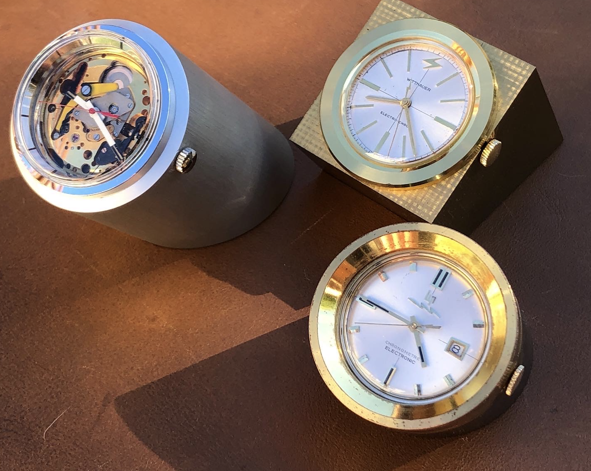 The bodies are donors from other miniature vintage desk clocks that get modified with some machining and/or movement rings.