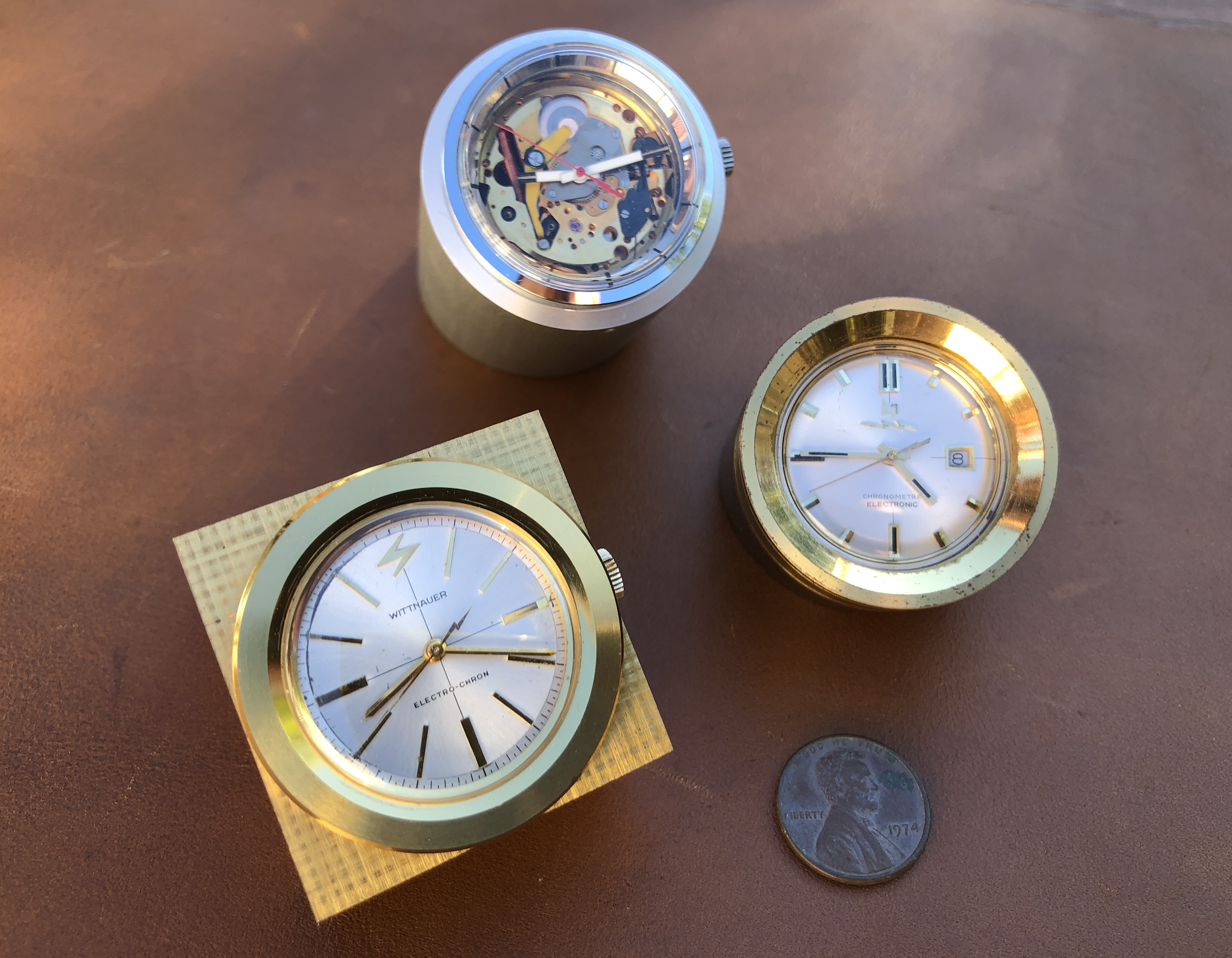 The most recent one is the green dialed Jump Hour. Had a custom sticker made to replicate the original dial design since it didn't have a dial. Movement caliber number on the dial was typical for the ESA prototypes, so felt right to add it.