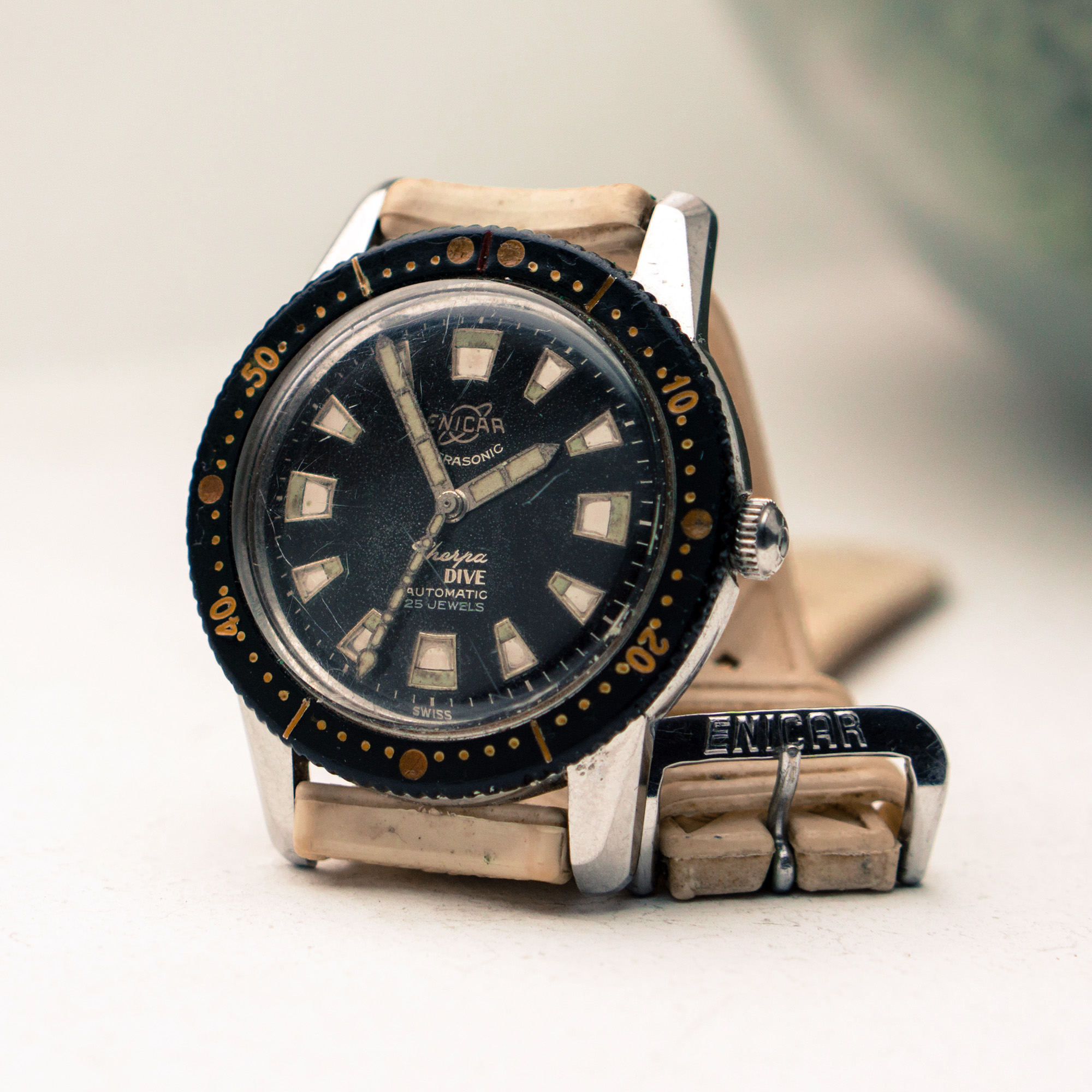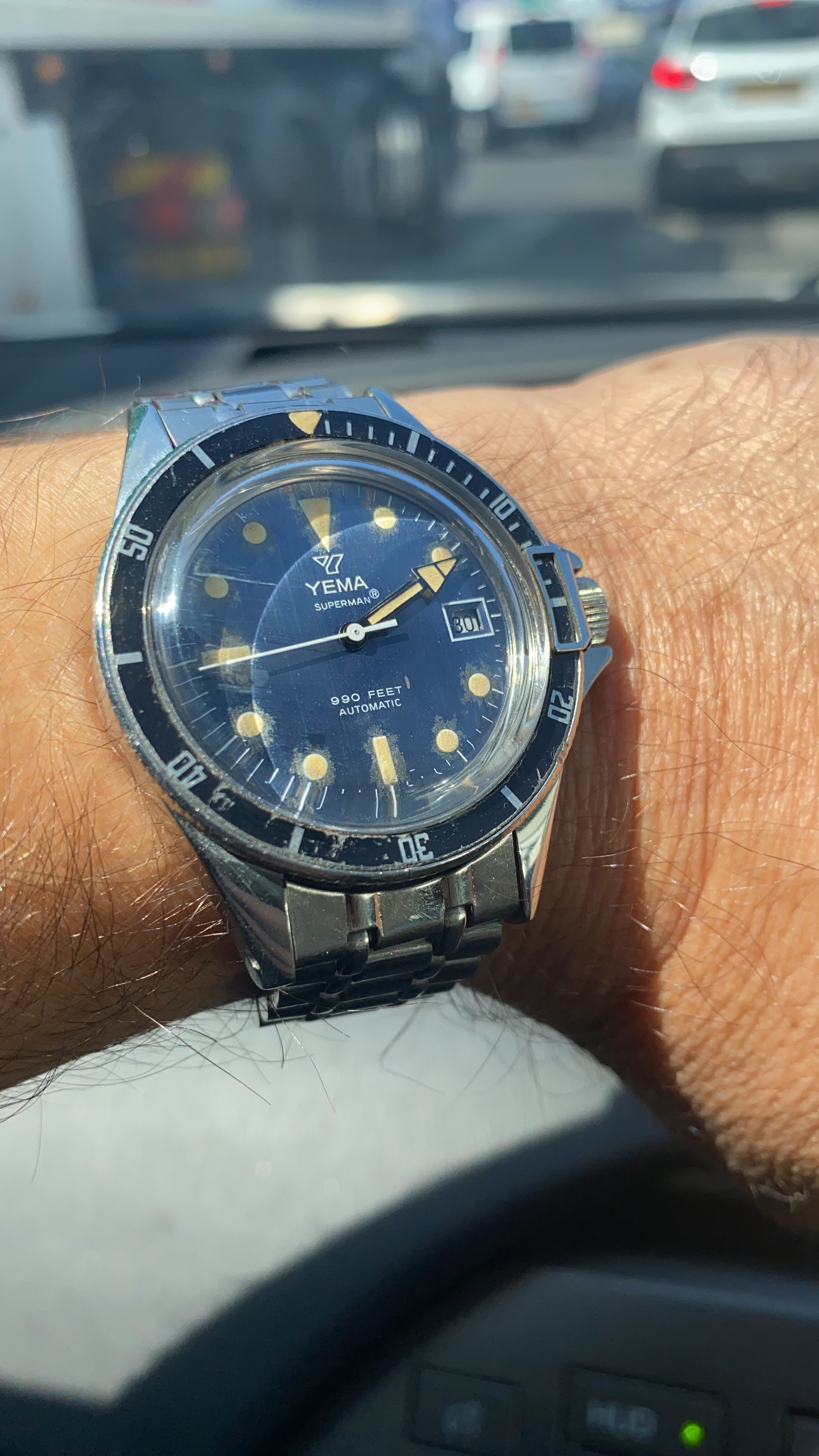 Over 20 years of collecting dive watches and other types of vintage watches. Always liked vintage divers there are four I let go I wish I did not a Omega SHOM with real cool patina lume, Benthos 500, a Depollier first watch with a screw down crown even had cork gaskets to make it water proof the forerunner of dive watches a French issued Auricoste Spirotechnique those four watches have went up in price since I let them go.