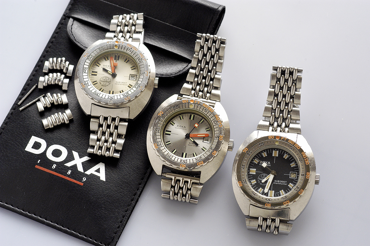 Went back into archive photos on another computer and came up with this image from 2017. These 3 Doxas were serviced at the same time by Doxa in Switzerland around 2000."