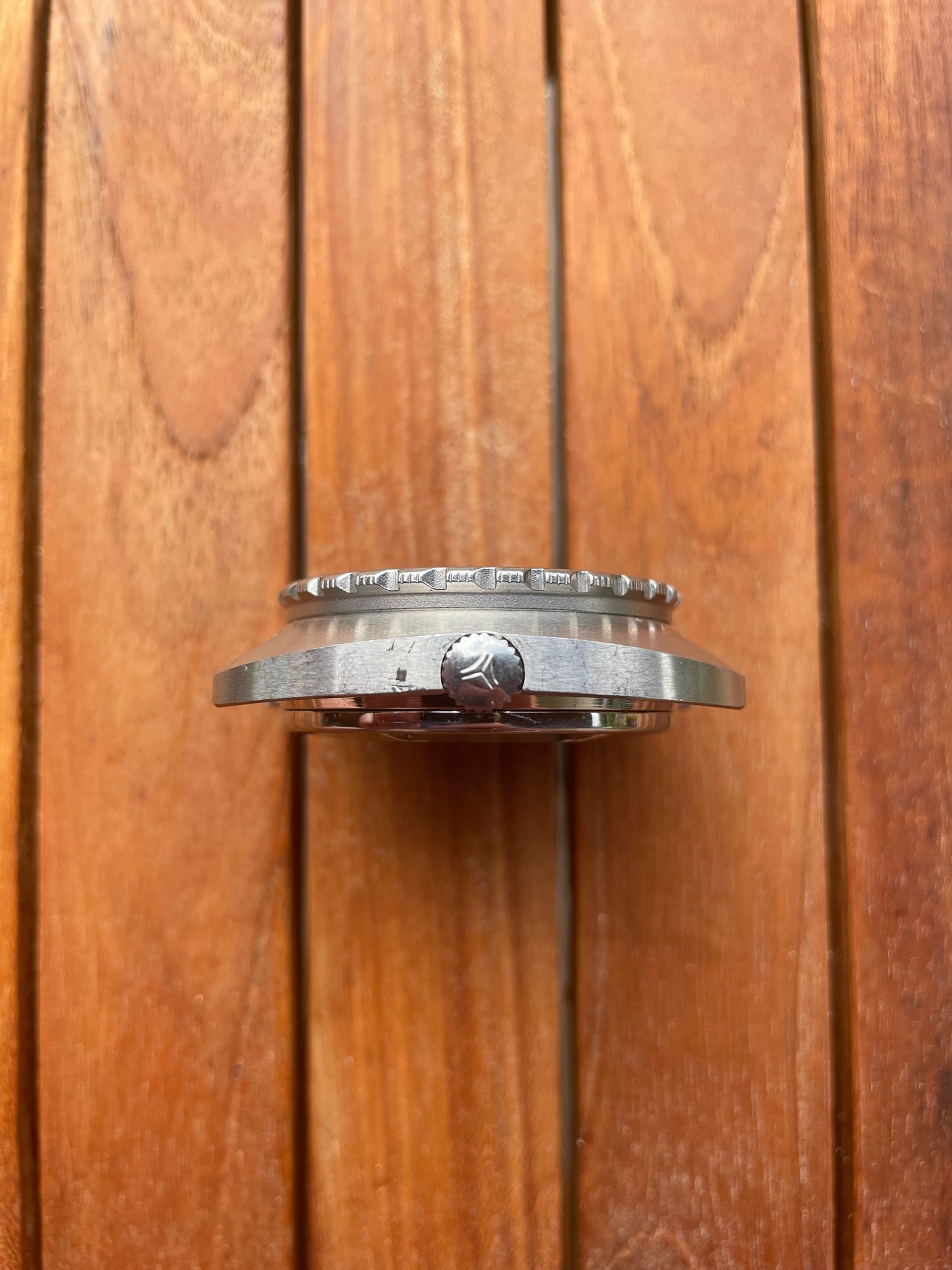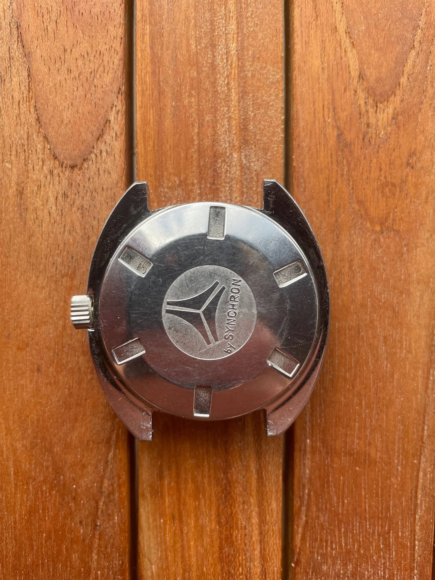 This Doxa is the so-called second generation Synchron 300T - that means a thick case, a non-screw crown and the Synchron logo on the back. Especially the original crown is quite rare with vintage Doxa Subs today.