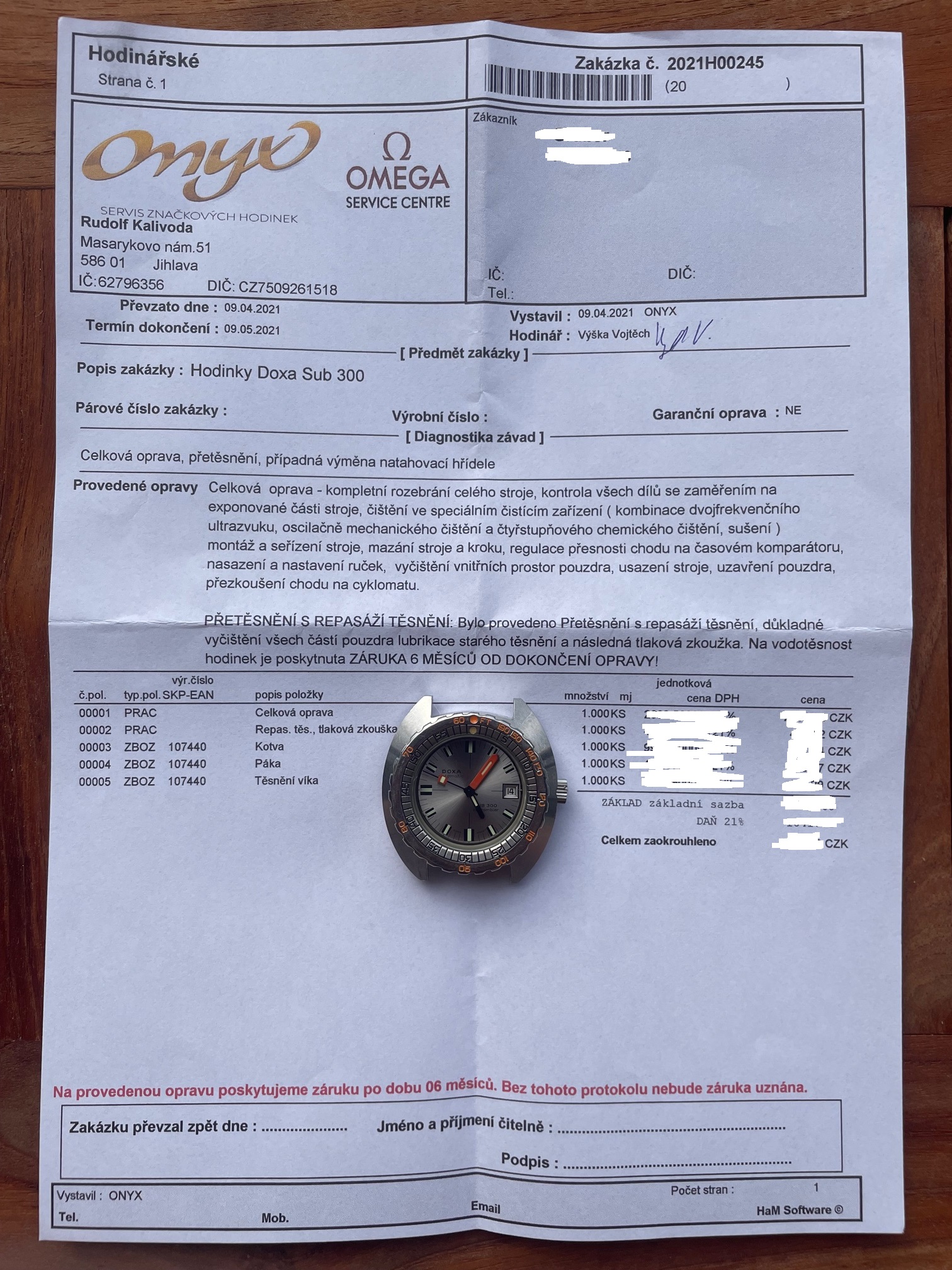 The watch is after full service in May 2021. (full disassembly, cleaning of the movement, seals,...). The First picture is the protocol from the service from the Czech republic.
