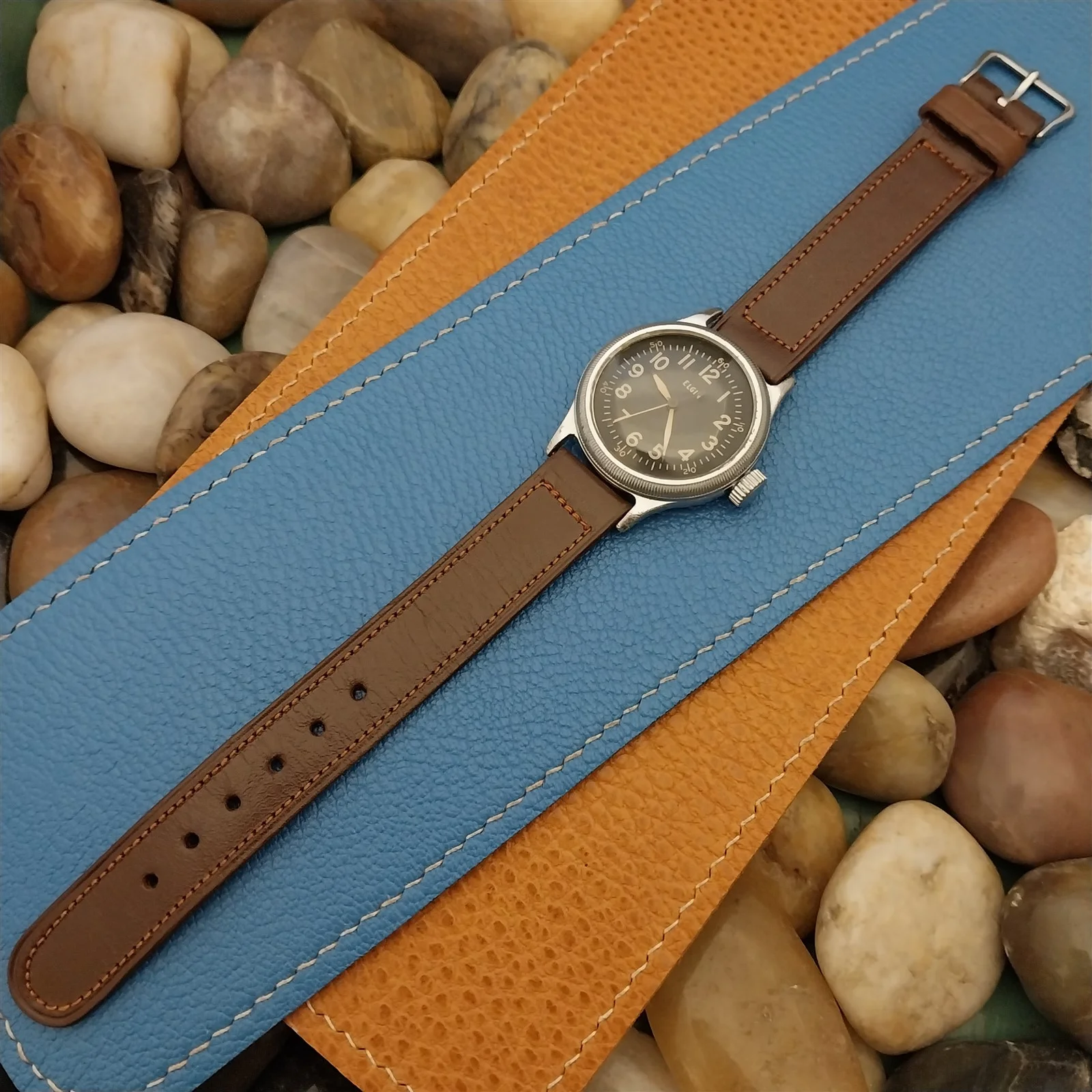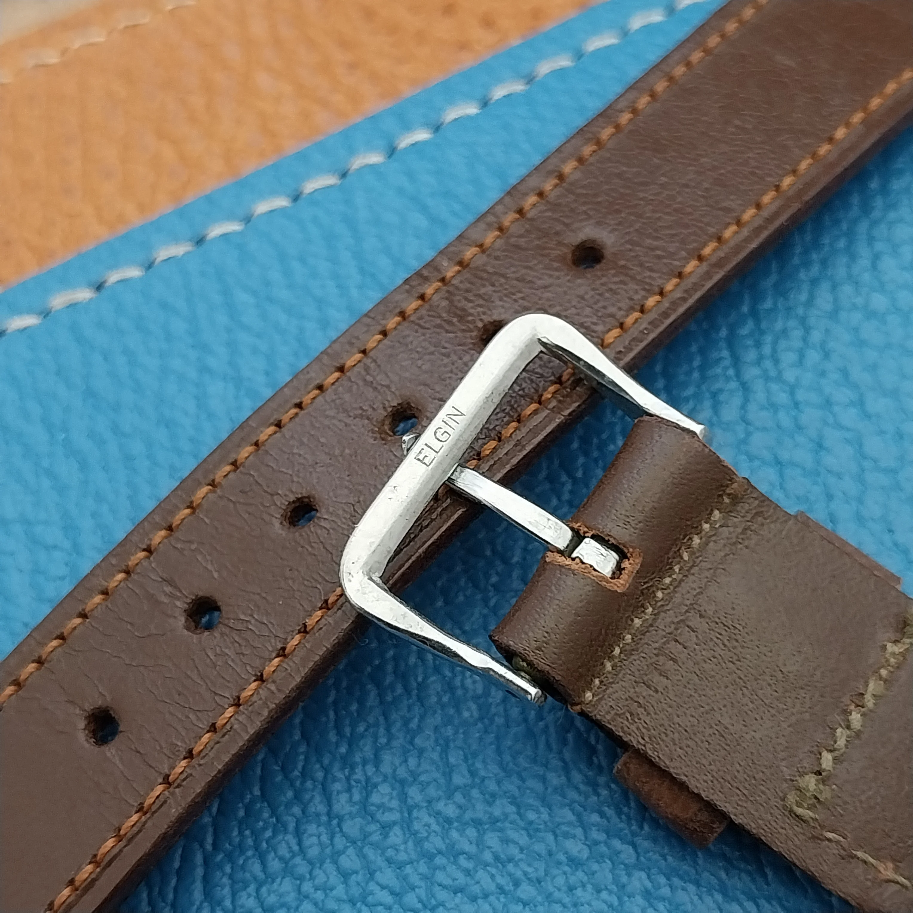 ·NOS unused 1950s old-stock Elgin brown saddle leather watch strap.