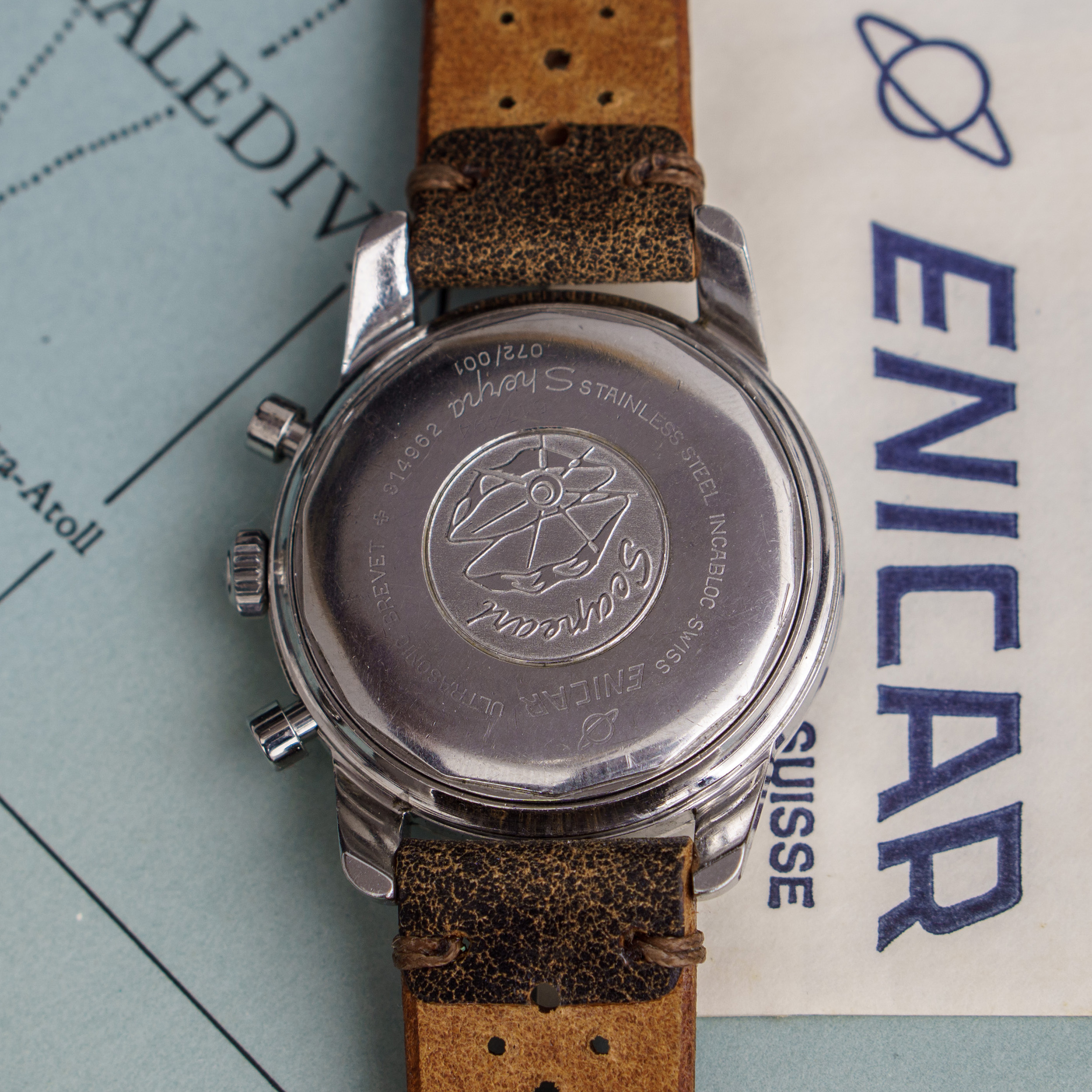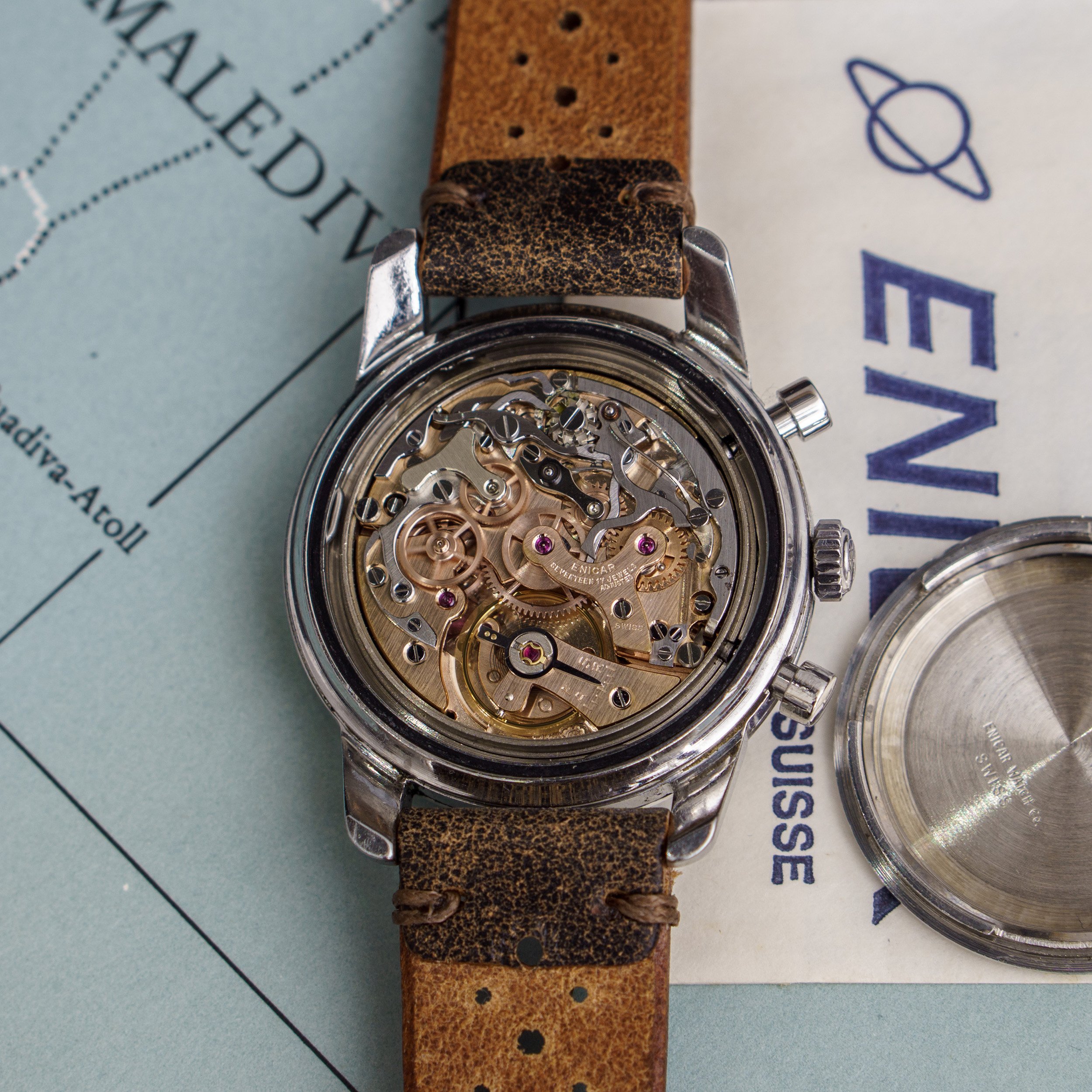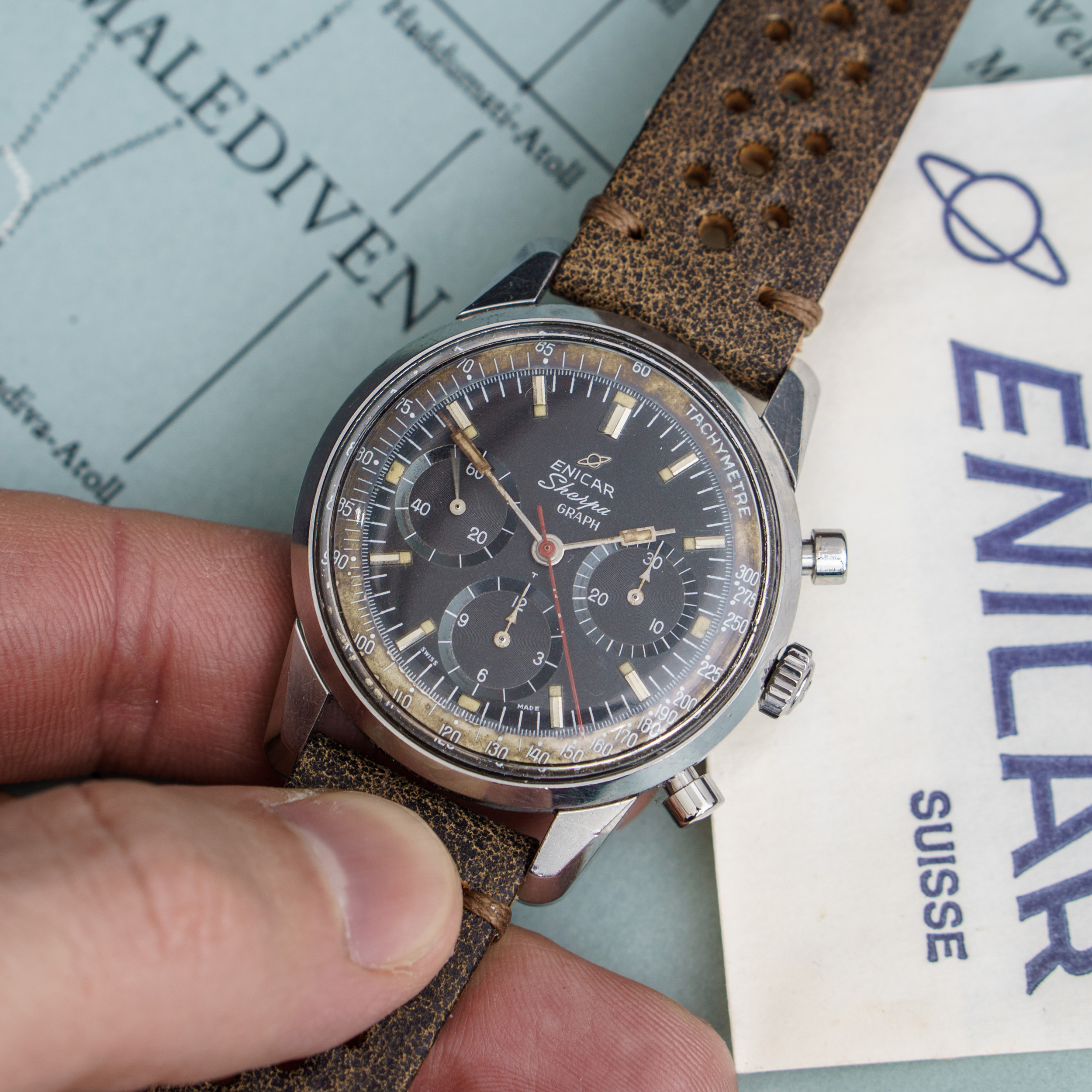 from my collection I am selling this unique Enicar Sherpa Graph MK IIa from around 1963. The Sherpa Graph is the non - bezel version of the famous Graph chronograph line of Enicar in the 60s and mostly connected to racing drivers like Jim Clark and Stirling Moss. Established in the early sixites, this is an early MK IIa model. (more info on that model you can find at https://enicar101.com/sherpa-graph-mkii/)