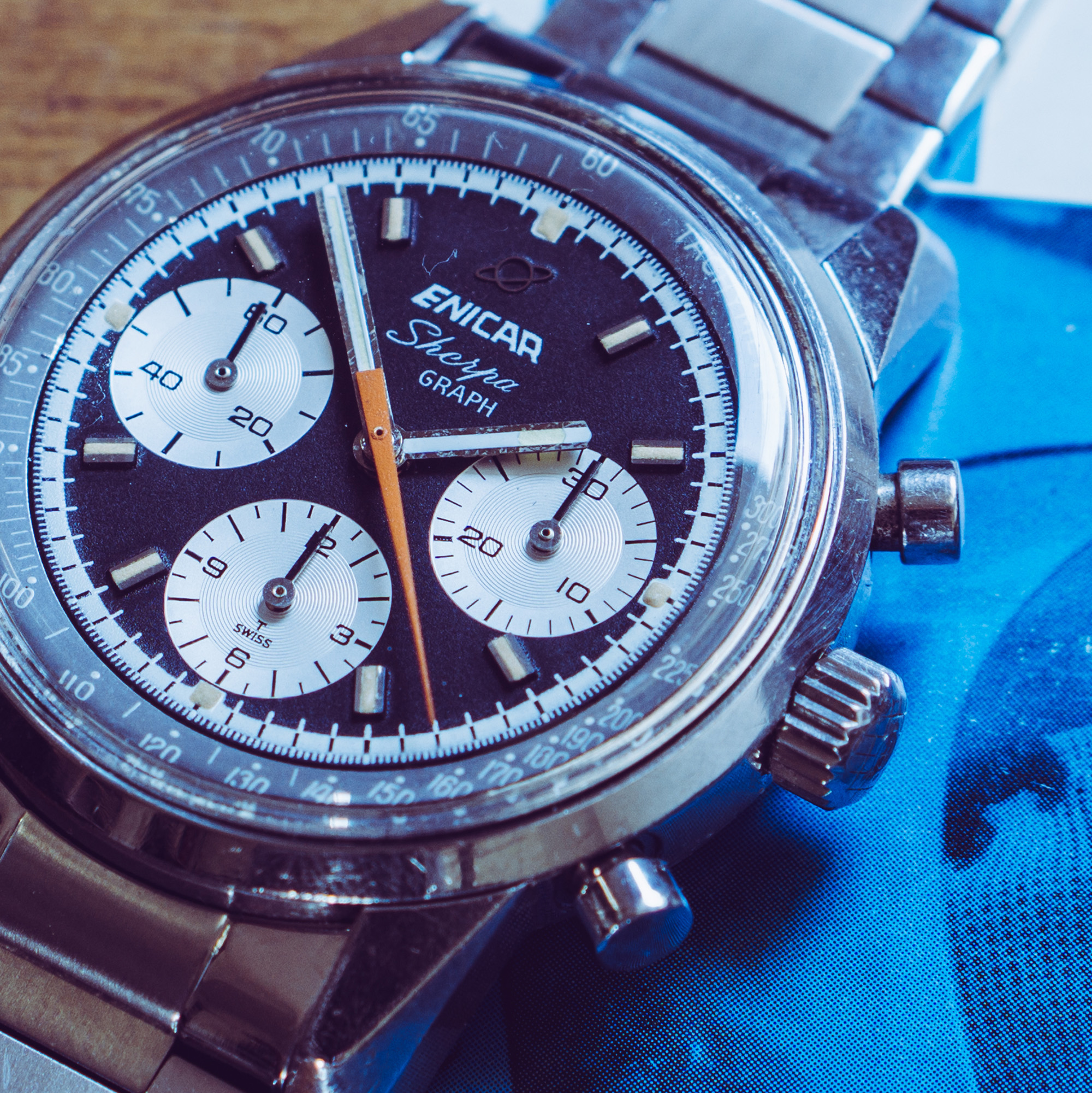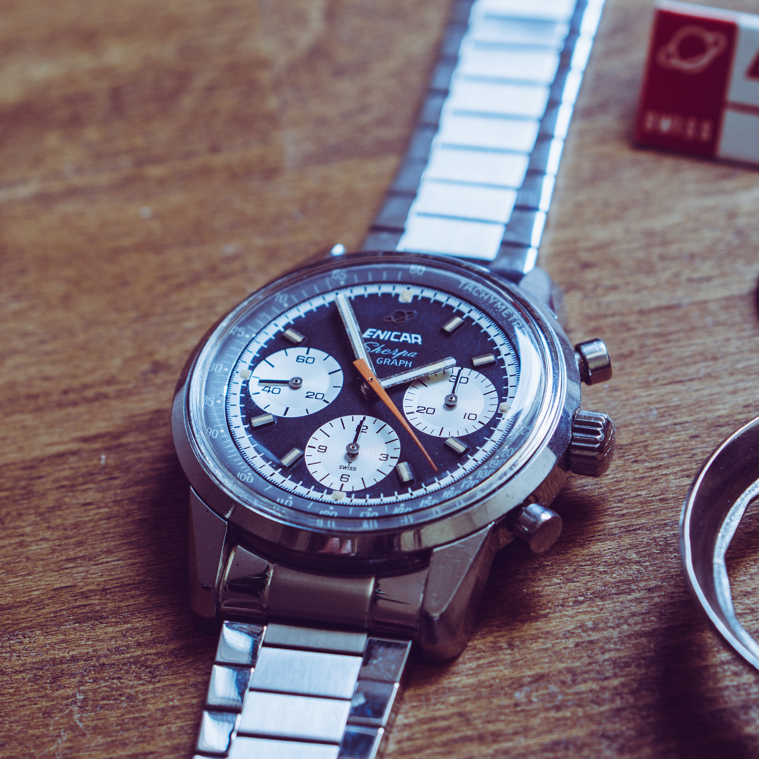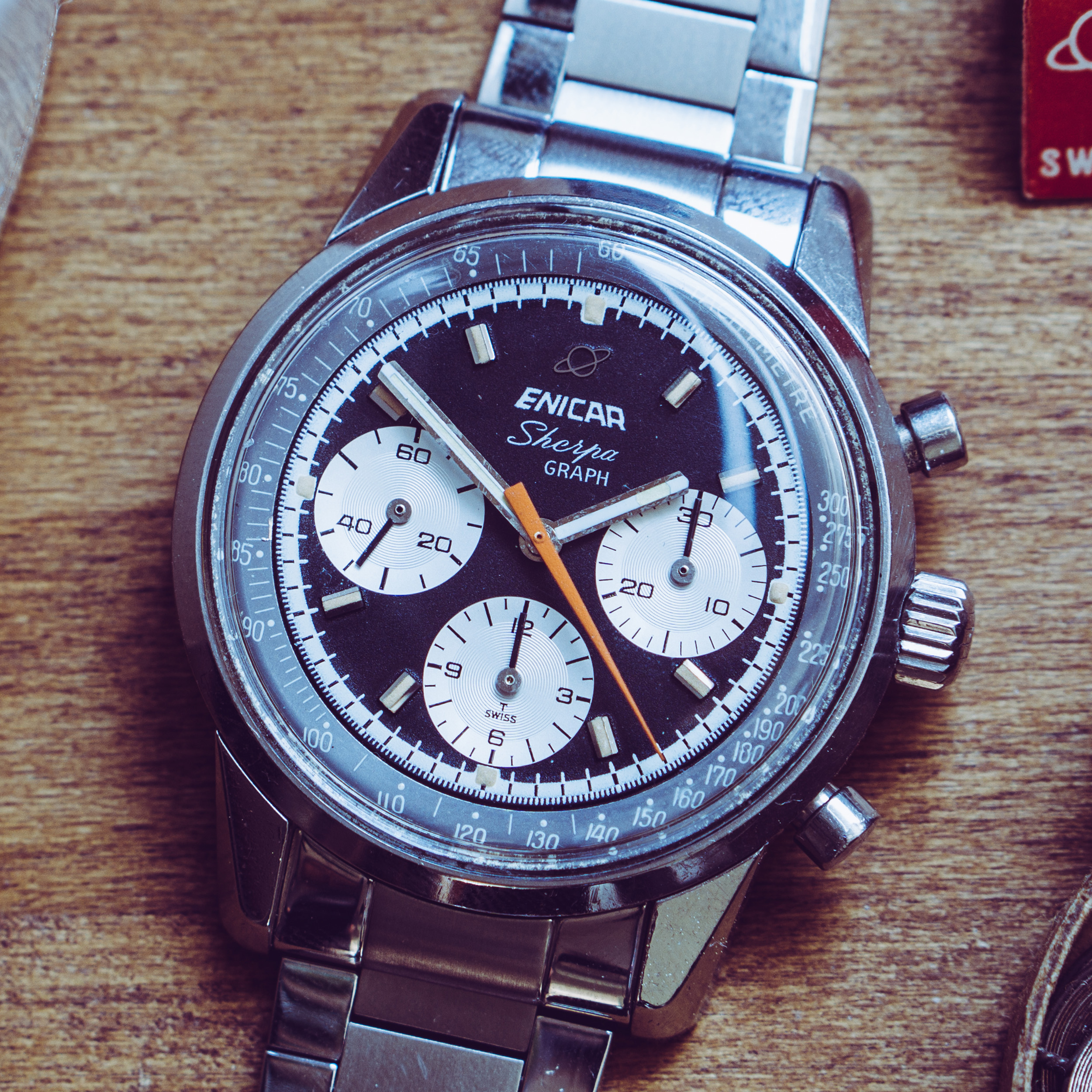 from my collection I am selling this nice Enicar Sherpa Graph MK IV from around 1967. The Sherpa Graph is the non - bezel version of the famous Graph chronograph line of Enicar in the 60s and mostly connected to racing drivers like Jim Clark and Stirling Moss. Established in the early sixites, this is a later MK IV model. (more info on that model you can find at enicar101.com )