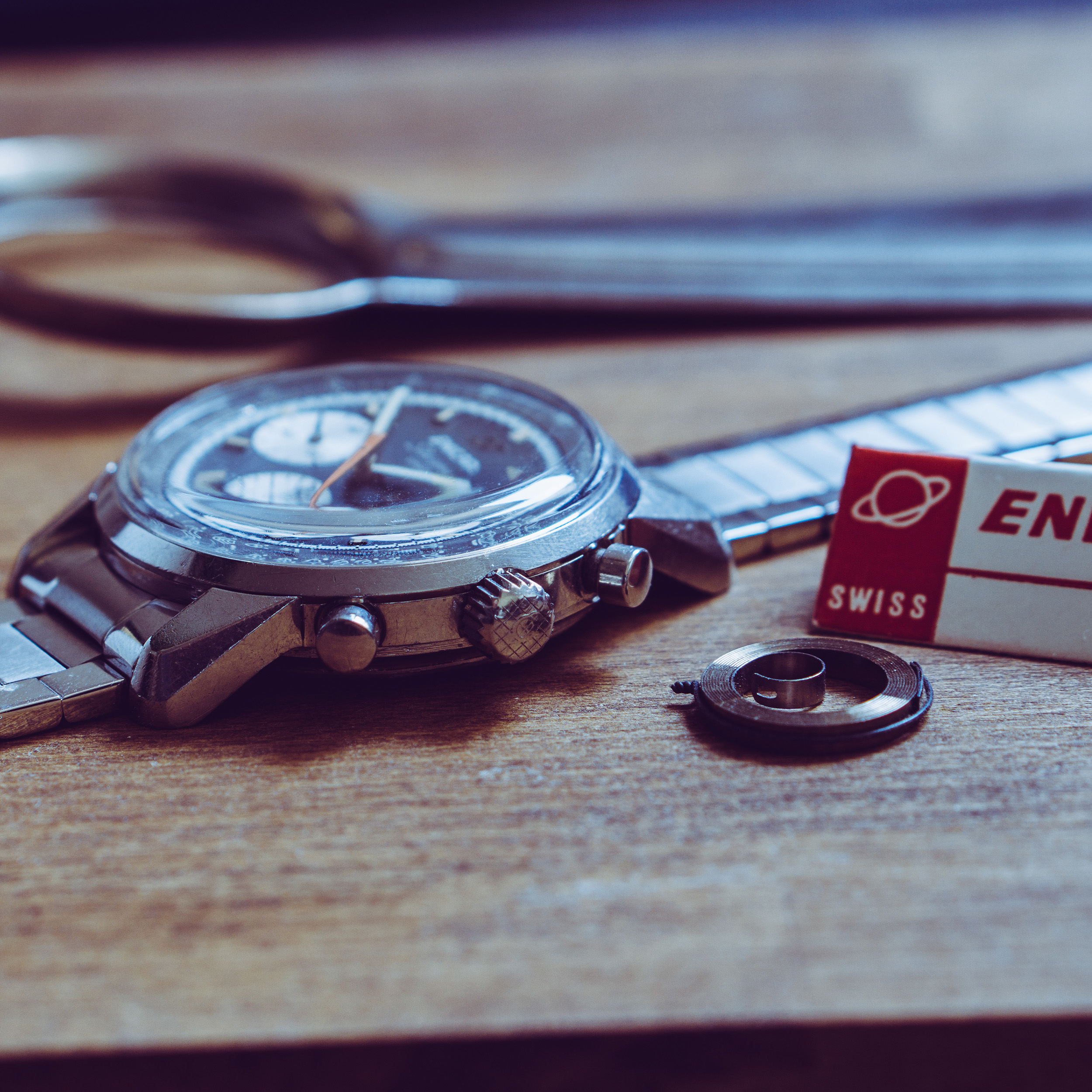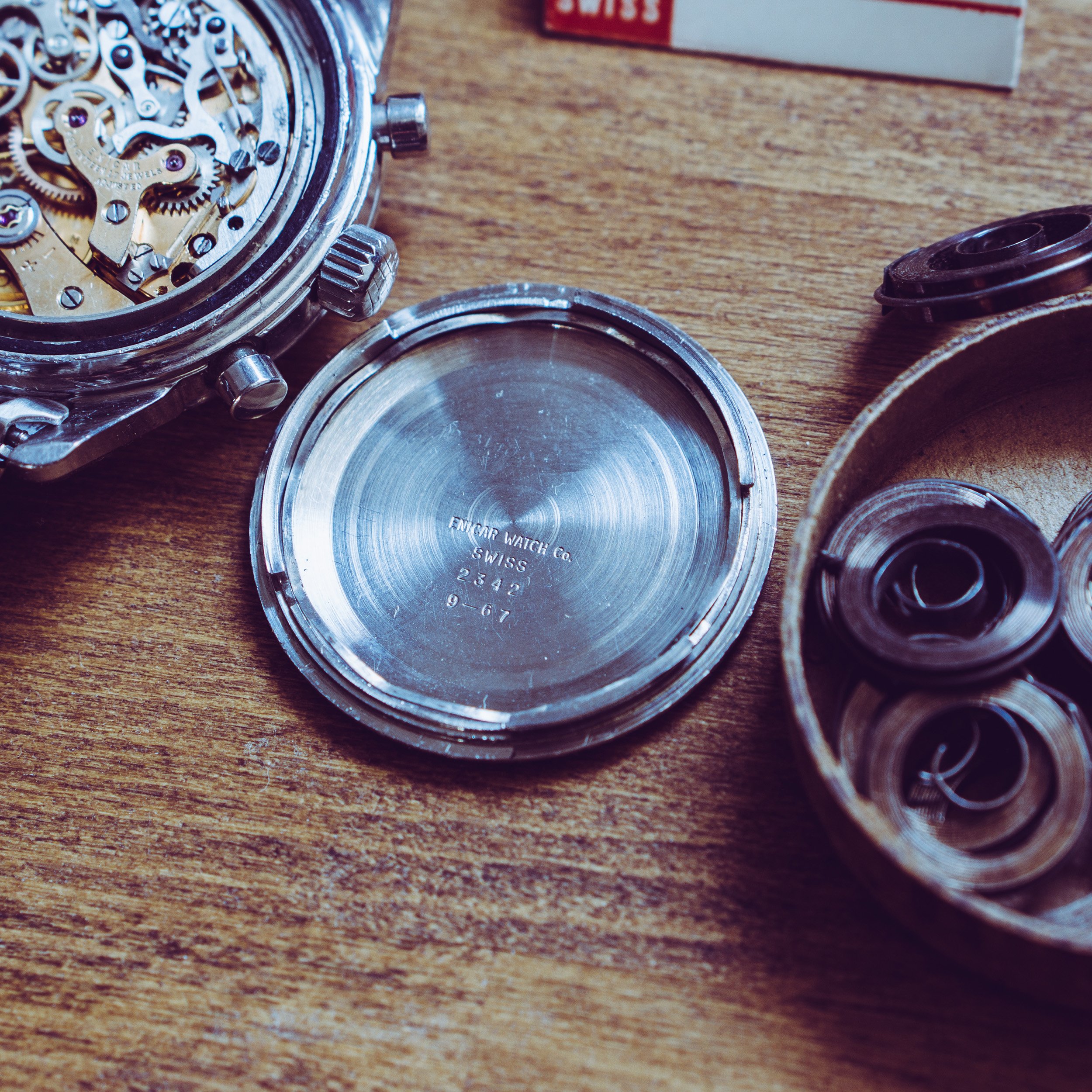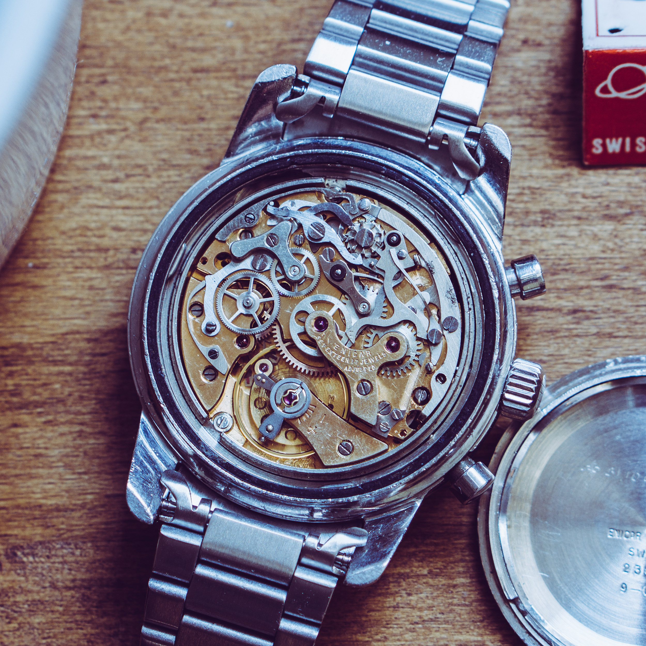 Movement: Freshly serviced Valjoux 72 column wheel movement, marked Enicar. All functions given. It runs with +3 sec / day and 250° amplitude. The reset pusher is a bit stiff, you need some pressure to reset it to zero.