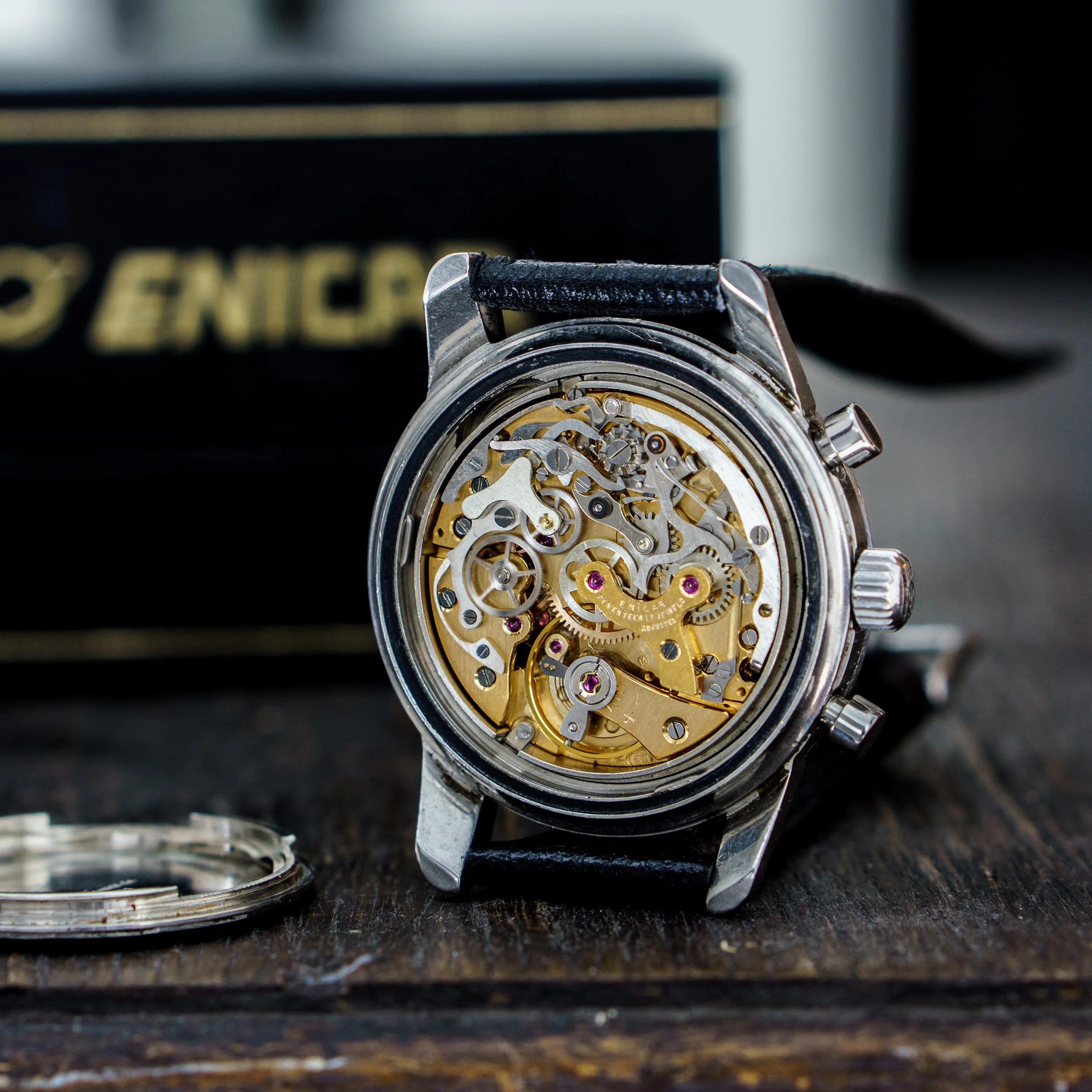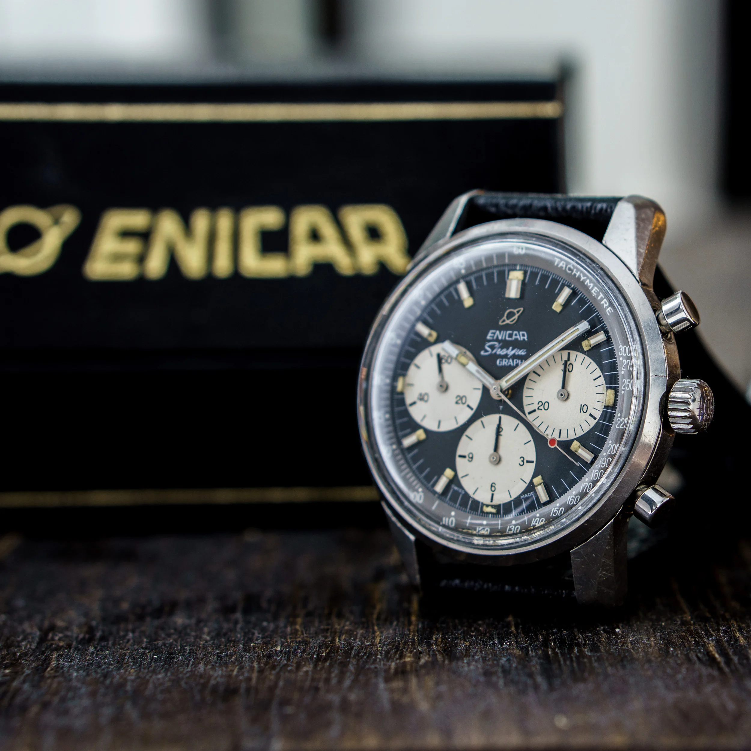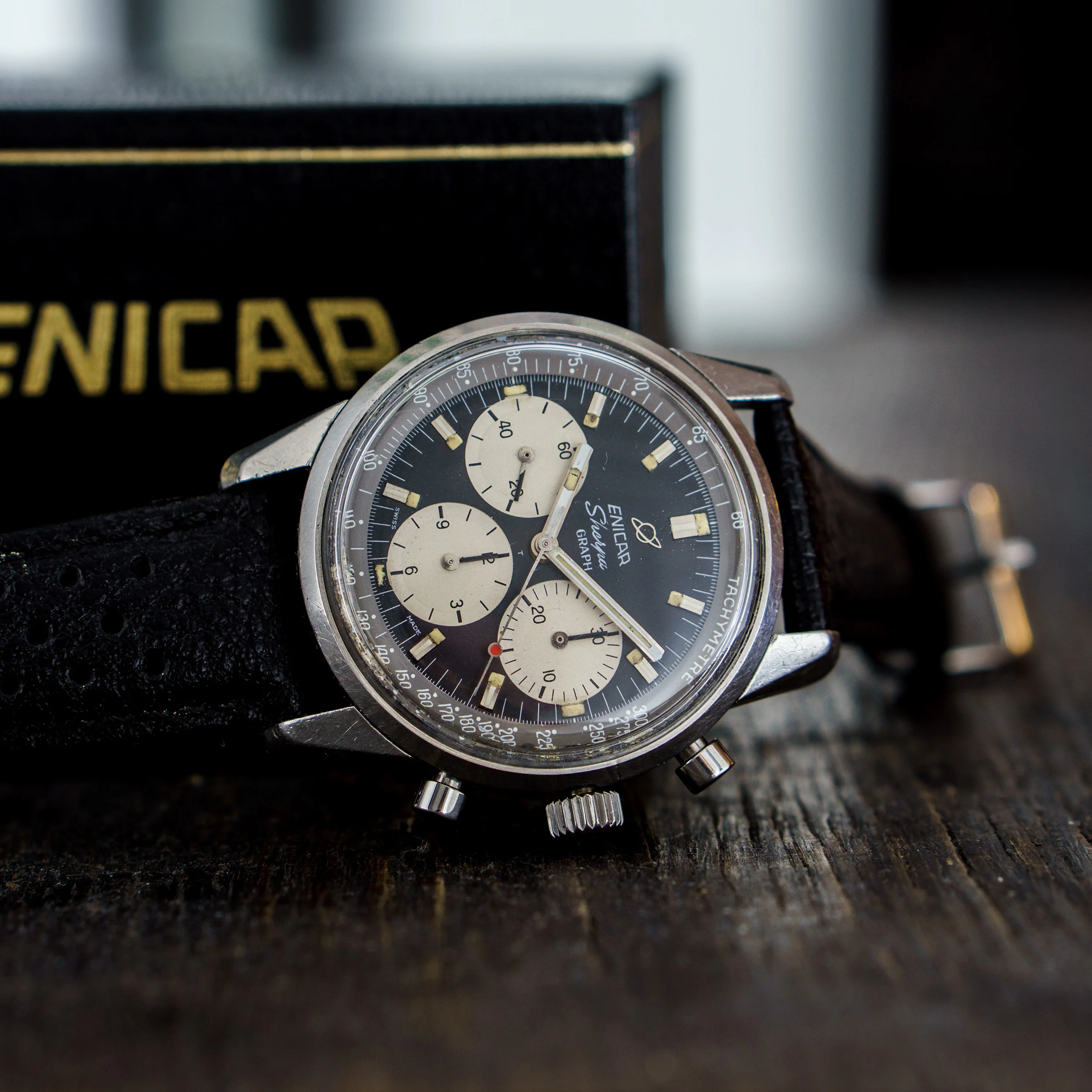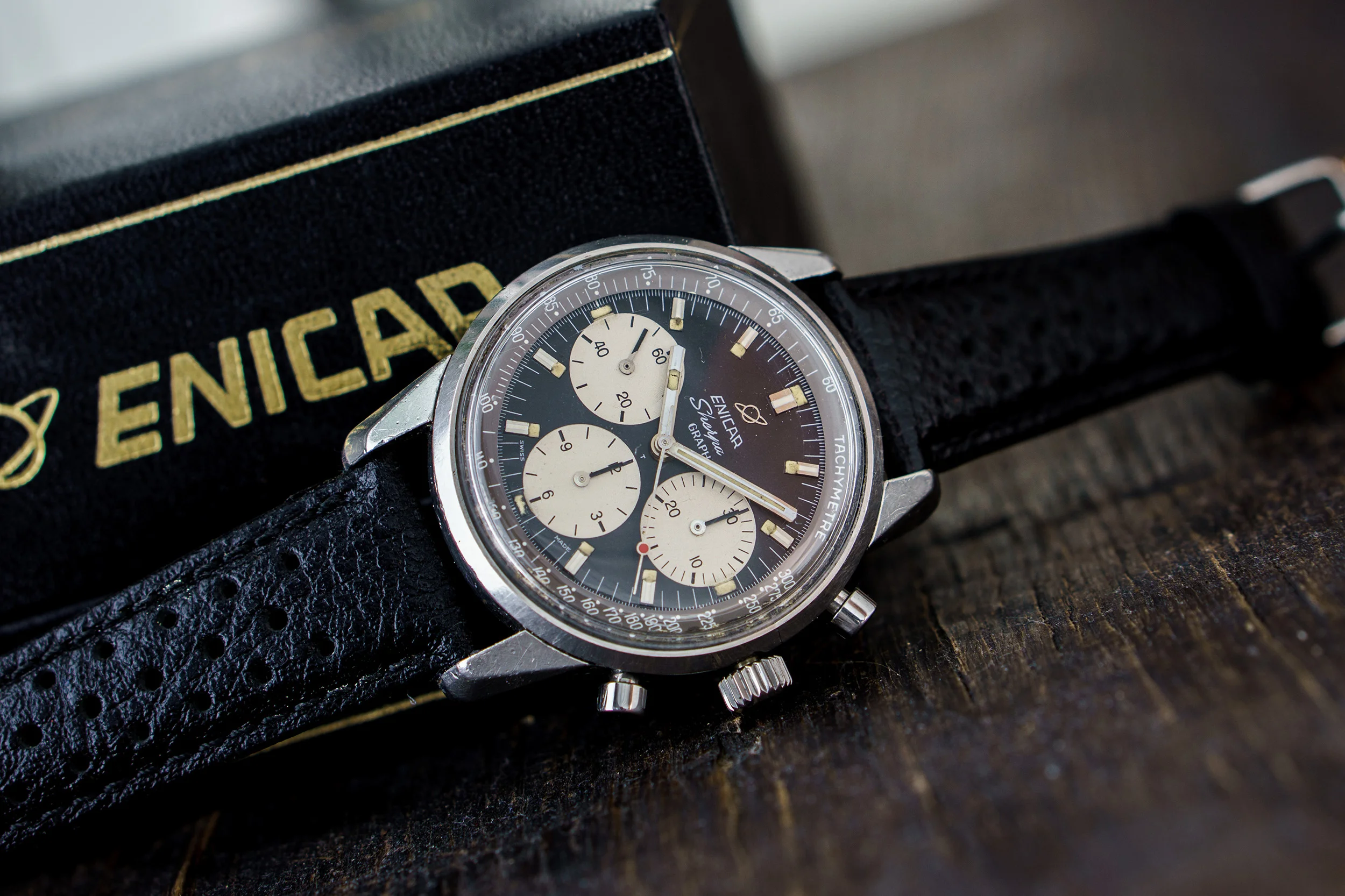 Movement: Freshly serviced Valjoux 72 column wheel movement, marked Enicar. All functions given.