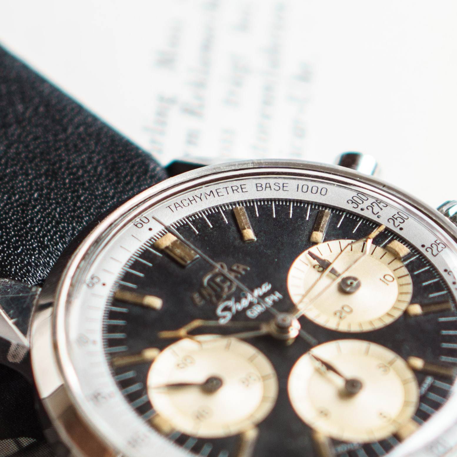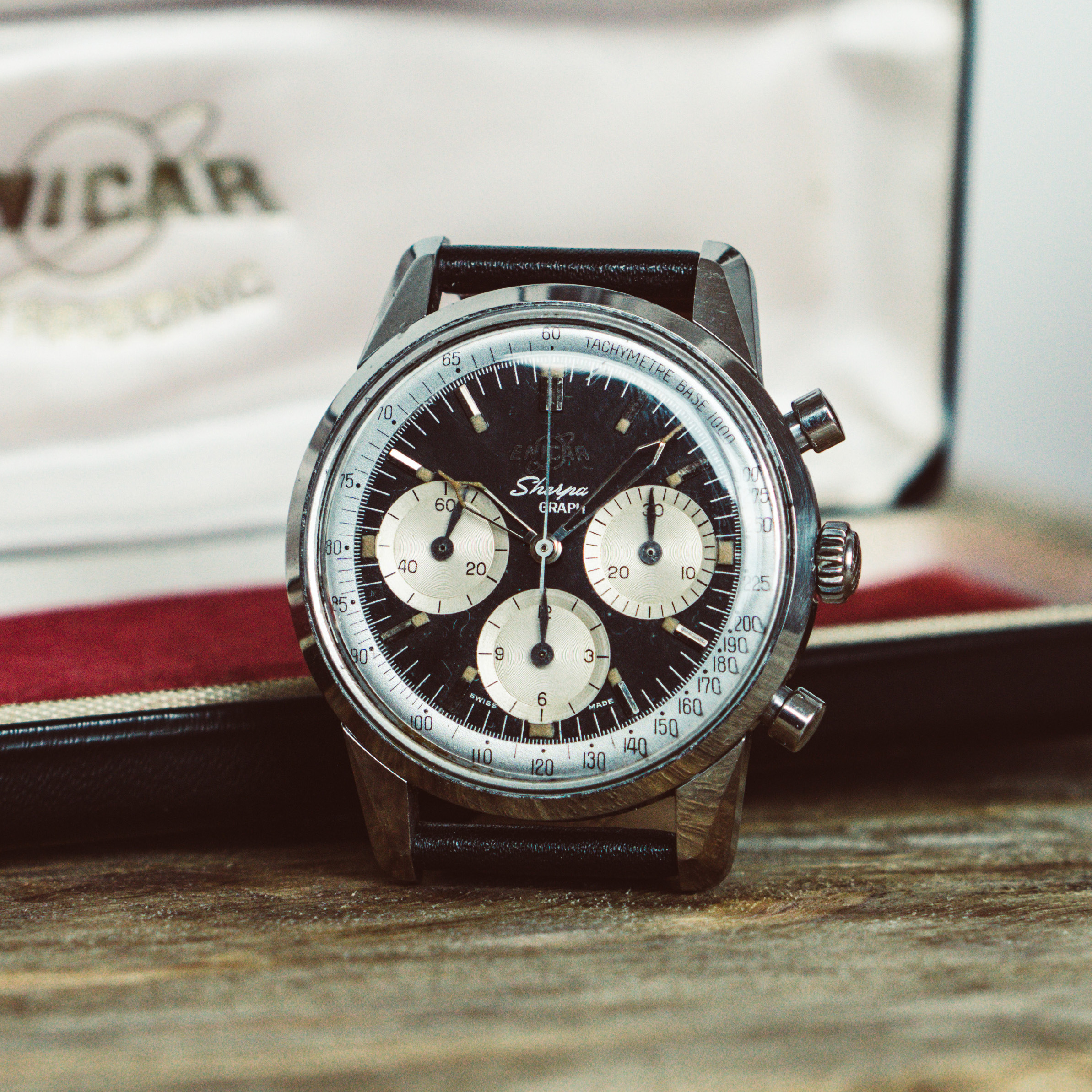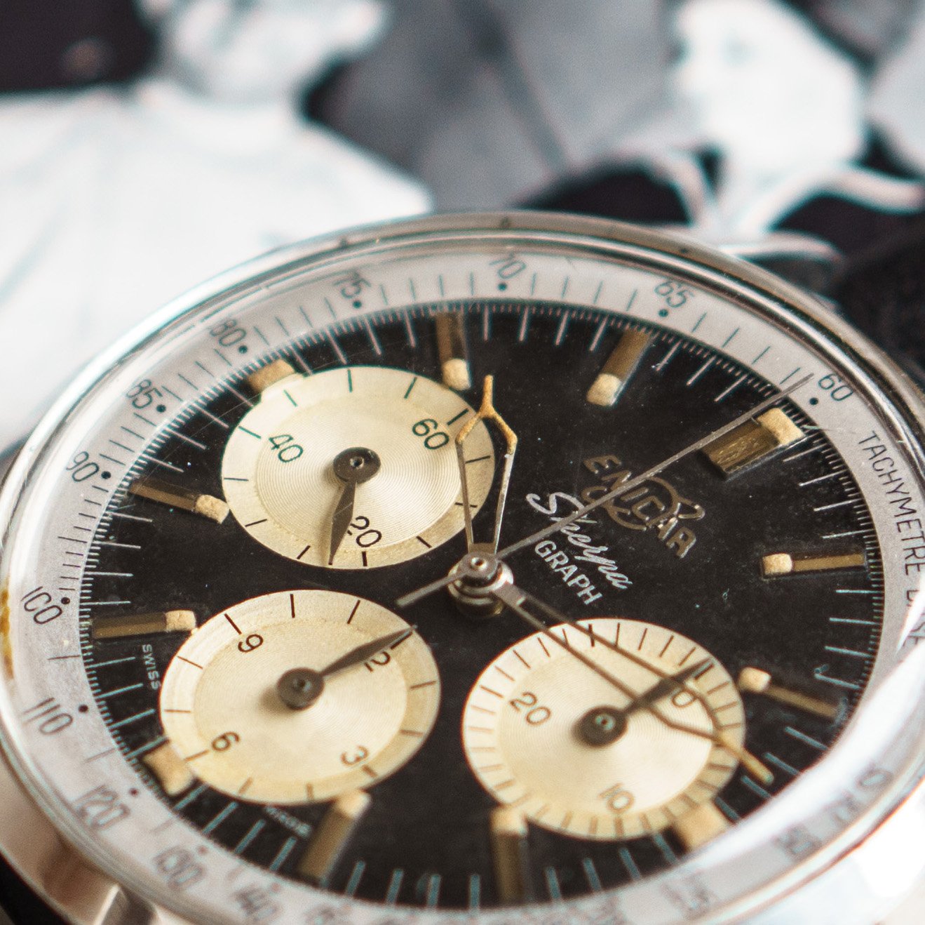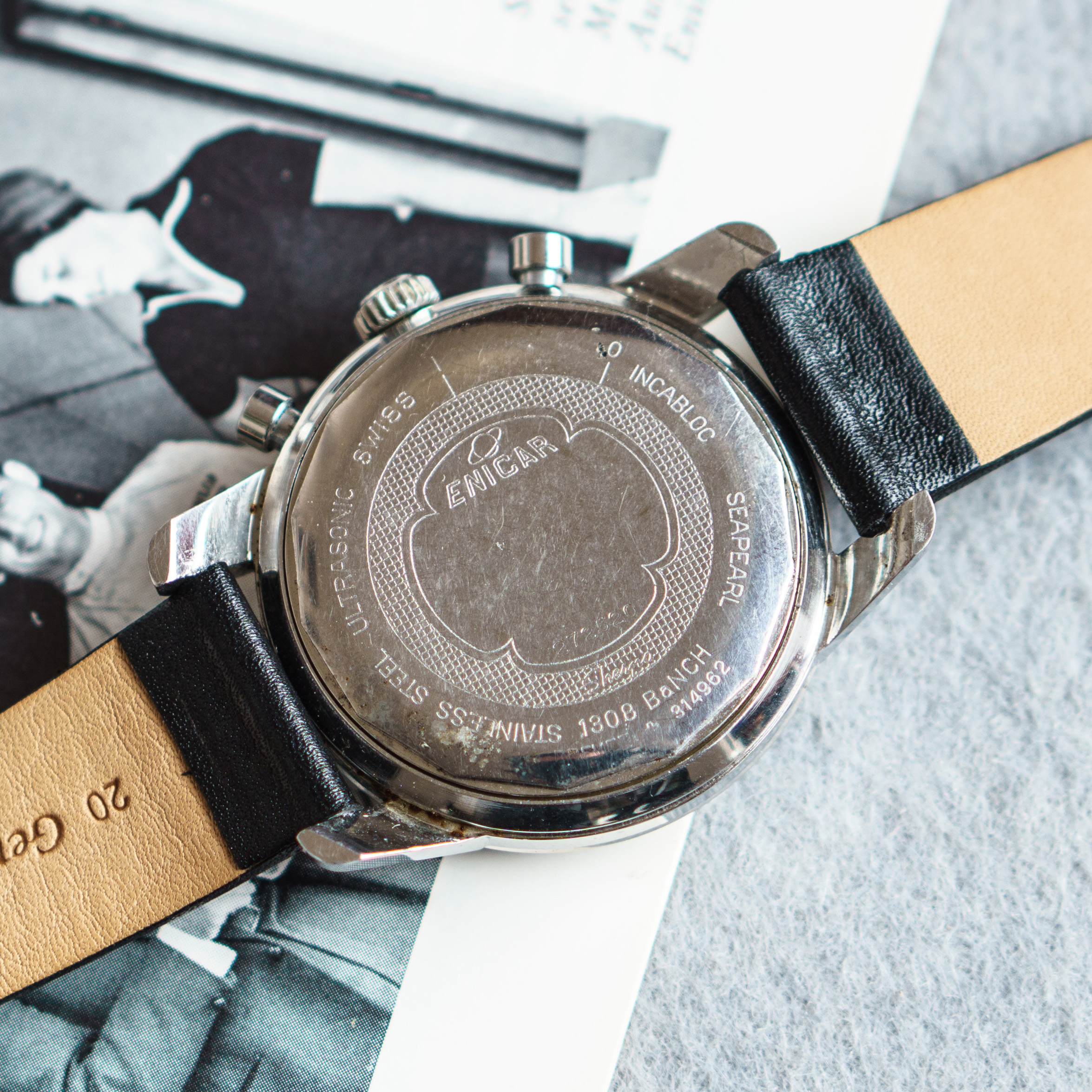 Thanks to @la_lusigne I was again bitten by the Zenith A386 virus. The Zenith is one of the watches I allways wanted to have but allways missed the opportunity. So this is my shot in the dark, maybe some of you have 5 of them and wants to build up an Enicar collection or your focus is in racing watches. Than this is your chance to trade your nice Zenith for one of just 500 build Enicar Sherpa Graph MK1a's, the first of the line, introduced in 1960. Back than Formula 1 Racer Stirling Moss was testimonial for Enicar and of course he got one of his examples as well.
