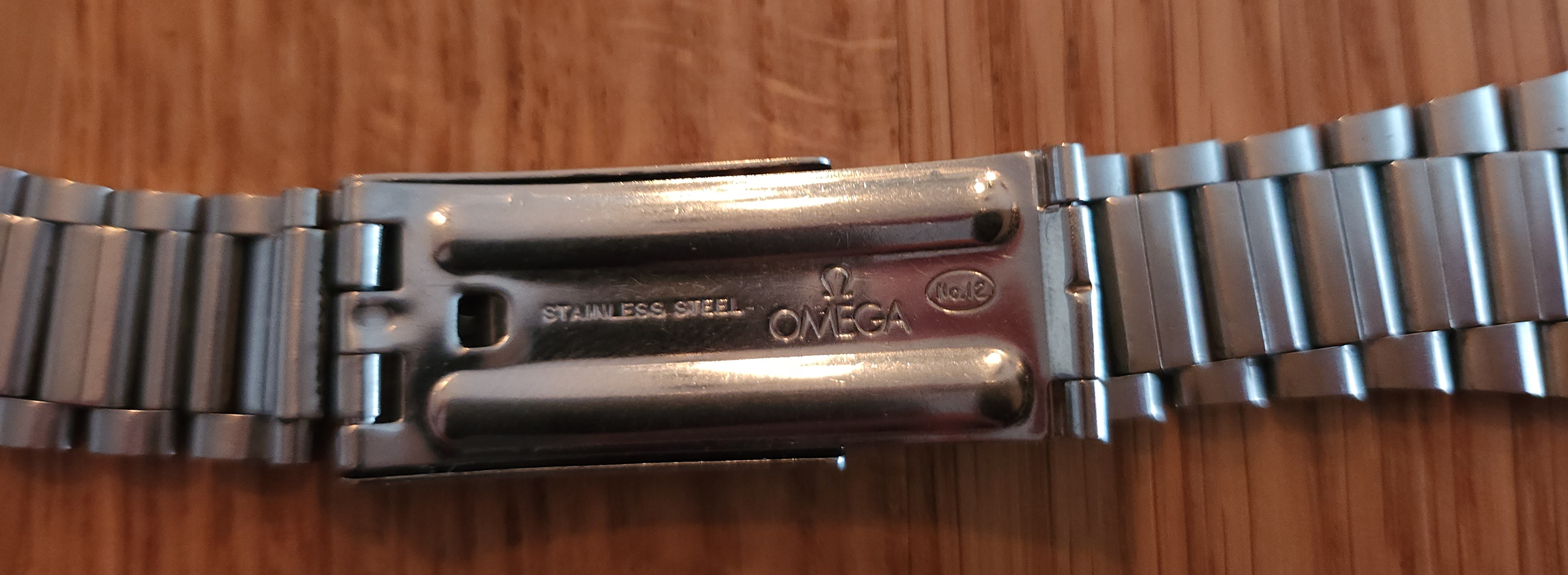 I recently bought a nice Omega Flighmaster ref. 145.036 at auction (first auction purchase I ever made!). The watch came naked with only what I assume is the original bracelet, no specific reference number on it other than No.12 as you can see from the picture here.