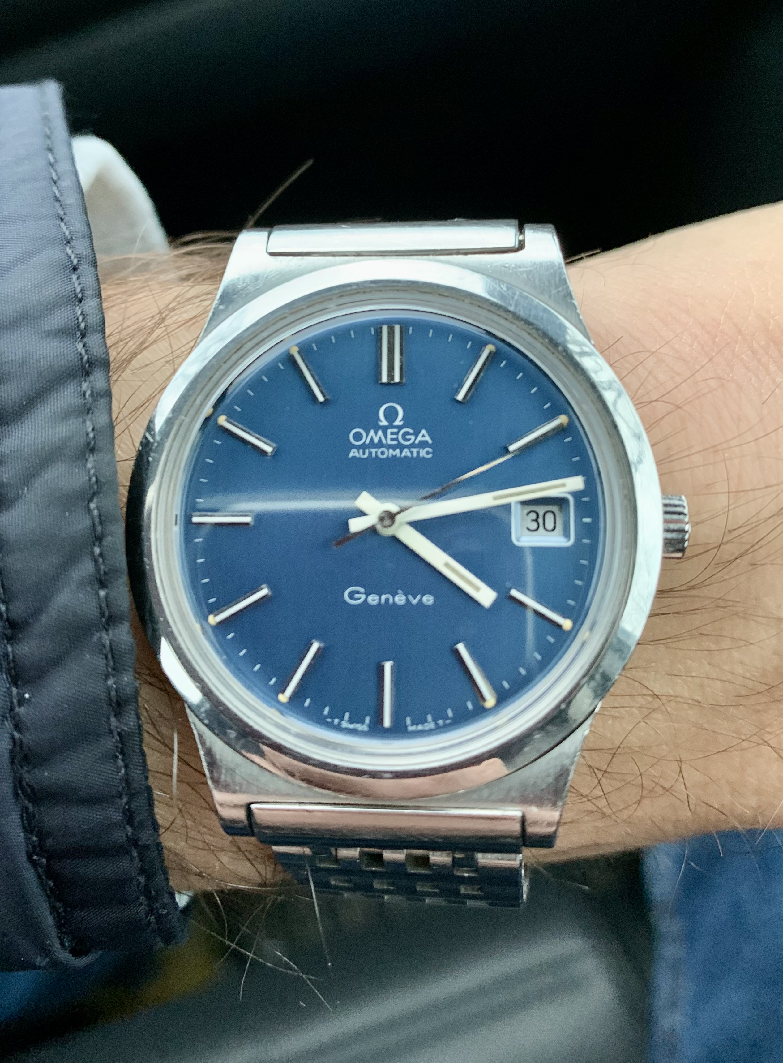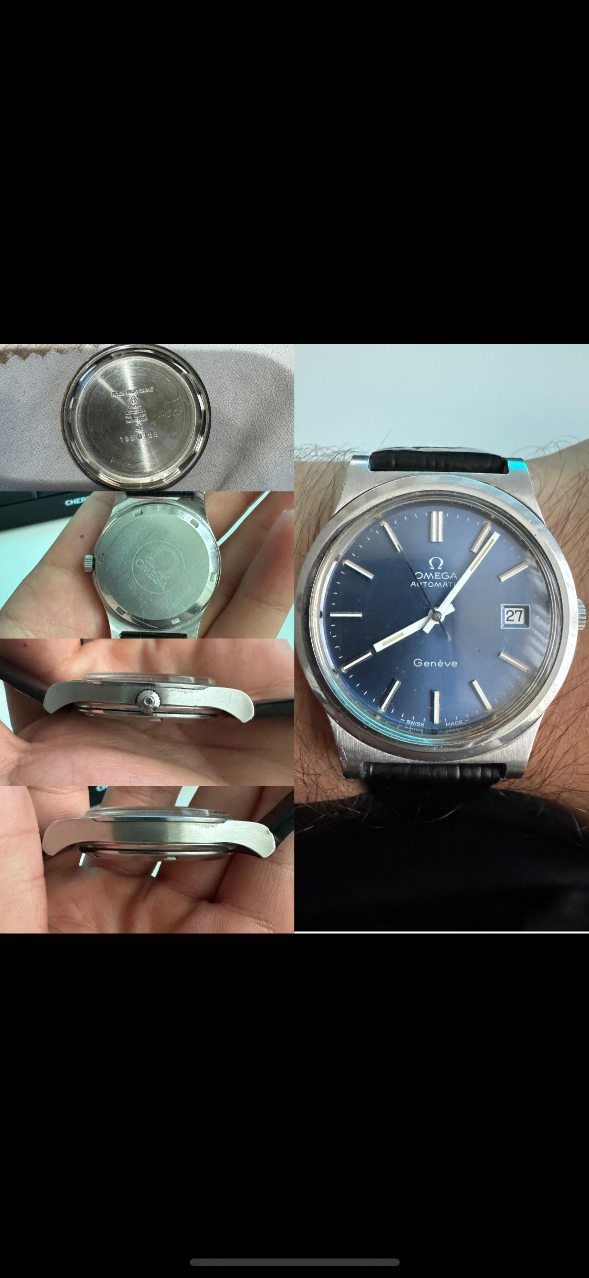 ·Hi guys, I'll give you a bit of a backstory here. My uncle recently went to a second-hand shop and bought this vintage Omega Genève Automatic. He asked me to check whether its real and if it is, he told me I can keep it. I believe the reference number is 166.0168 and it should be from the early 70s. I've seen similar models with the blue dial ranging between EUR 500 - EUR 2.000 on Chrono24. I already had the glass polished and put on an aftermarket leather strap because both the glass and the strap were messed up.I've included some pictures below. I basically have two questions: