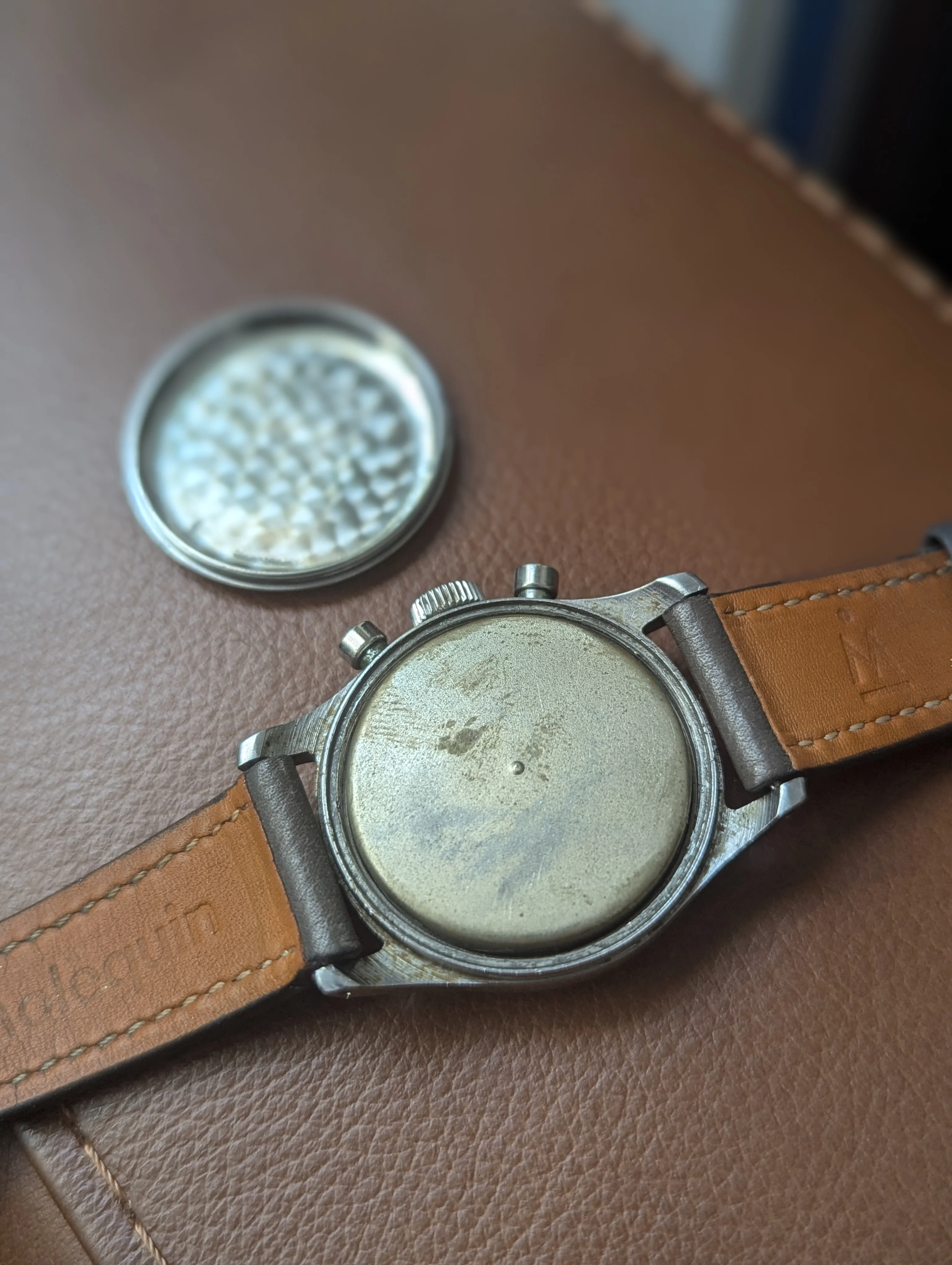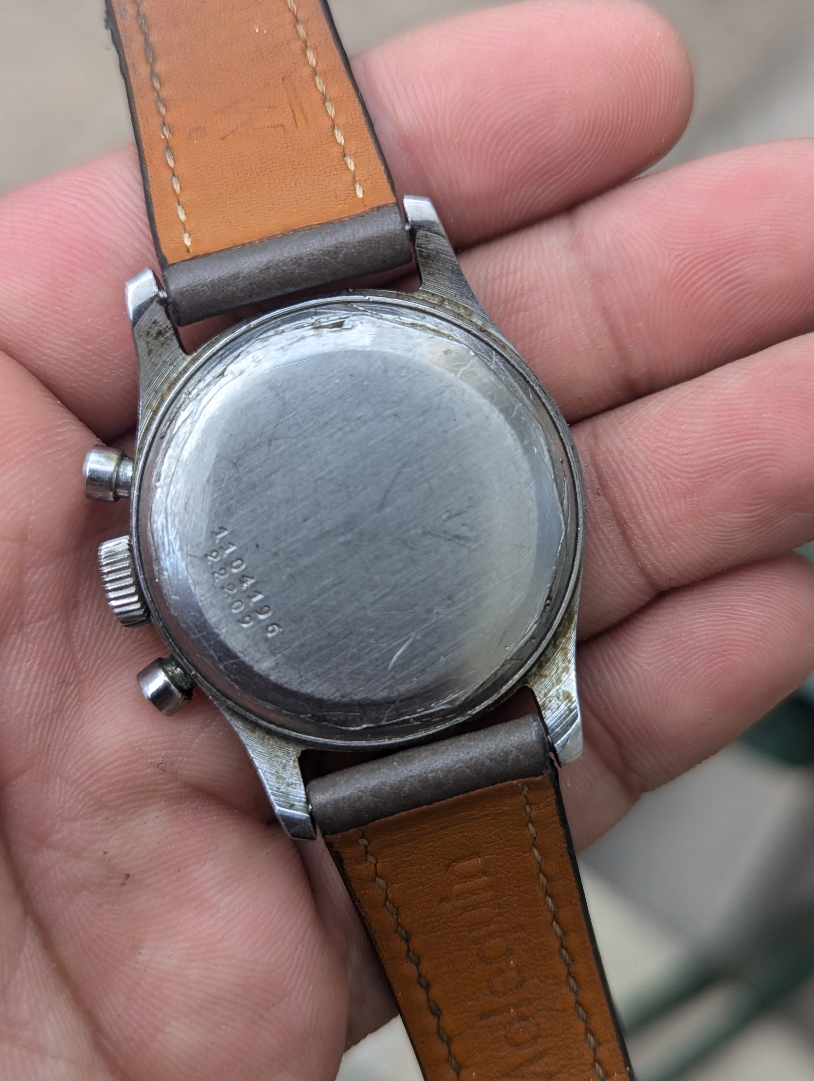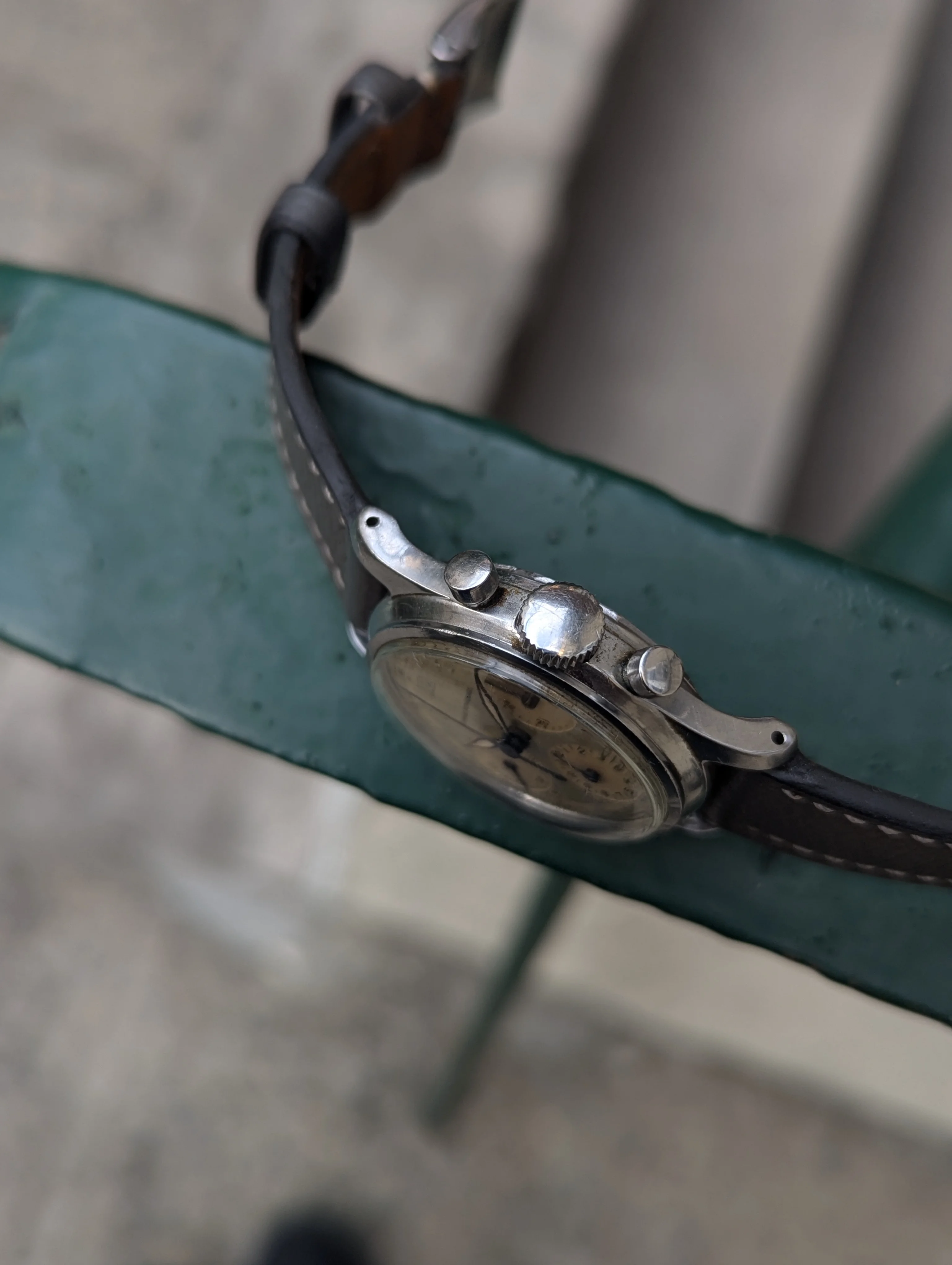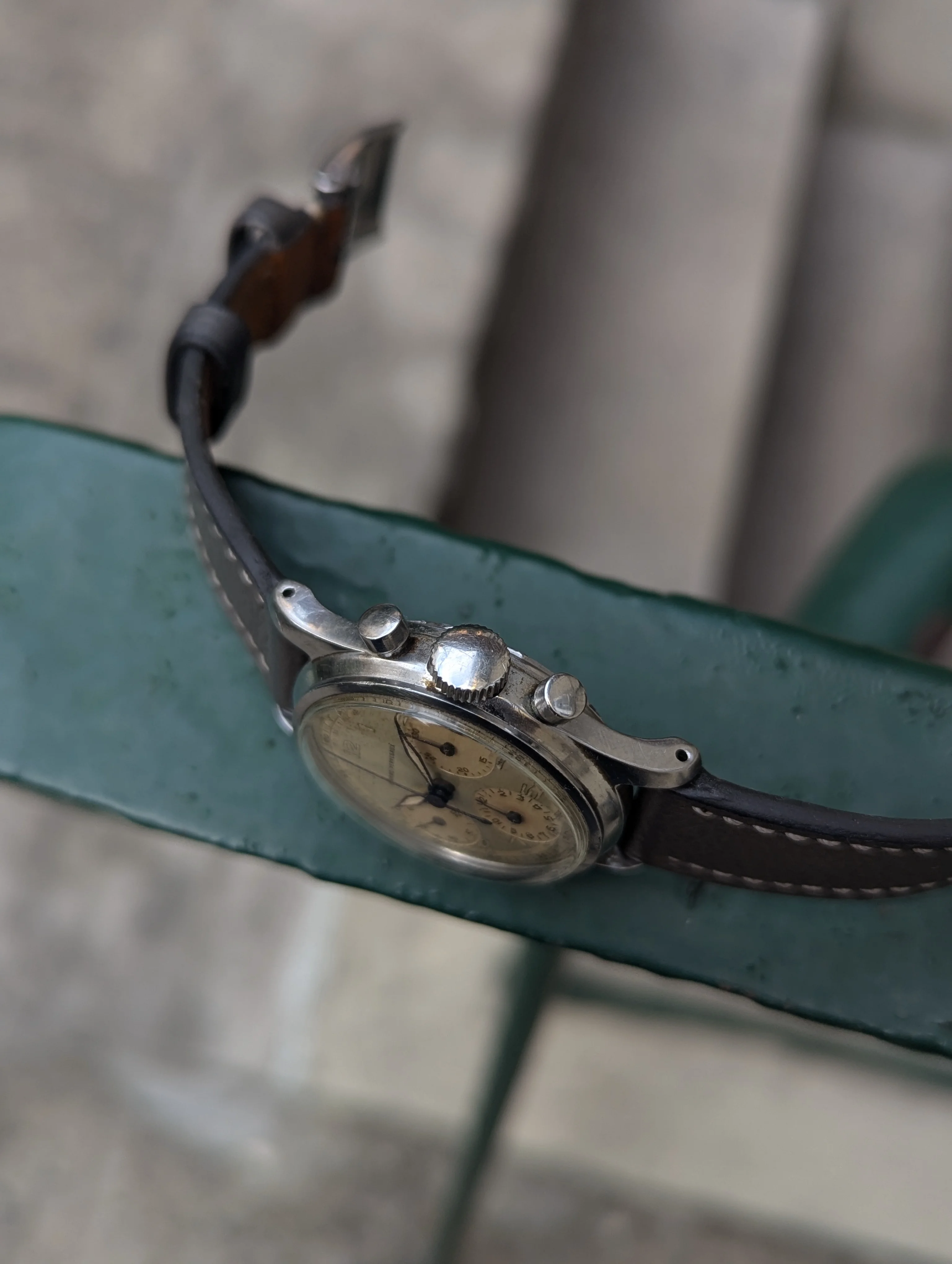 Up for sale is a Girard Perregaux 22209 Cal. 281 that's been in my collection for many years. The case measures about 34mm in diameter without the crown, and takes a 17-18mm strap. Dial and hands are original, and the dial has slight age and is a silver/light robin egg blue color in some light. Case is in decent condition, the caseback shows some marks where it looks like the incorrect opener was used. Chronograph works well, watch has not been serviced for many years and runs about -10 to -30 sec slow, so I would eventually recommend a service. Watch will come on a different strap from the one as shown. If you have any questions please send me a dm, and I'm also open to trades for other chronographs/vintage watches. Thanks!